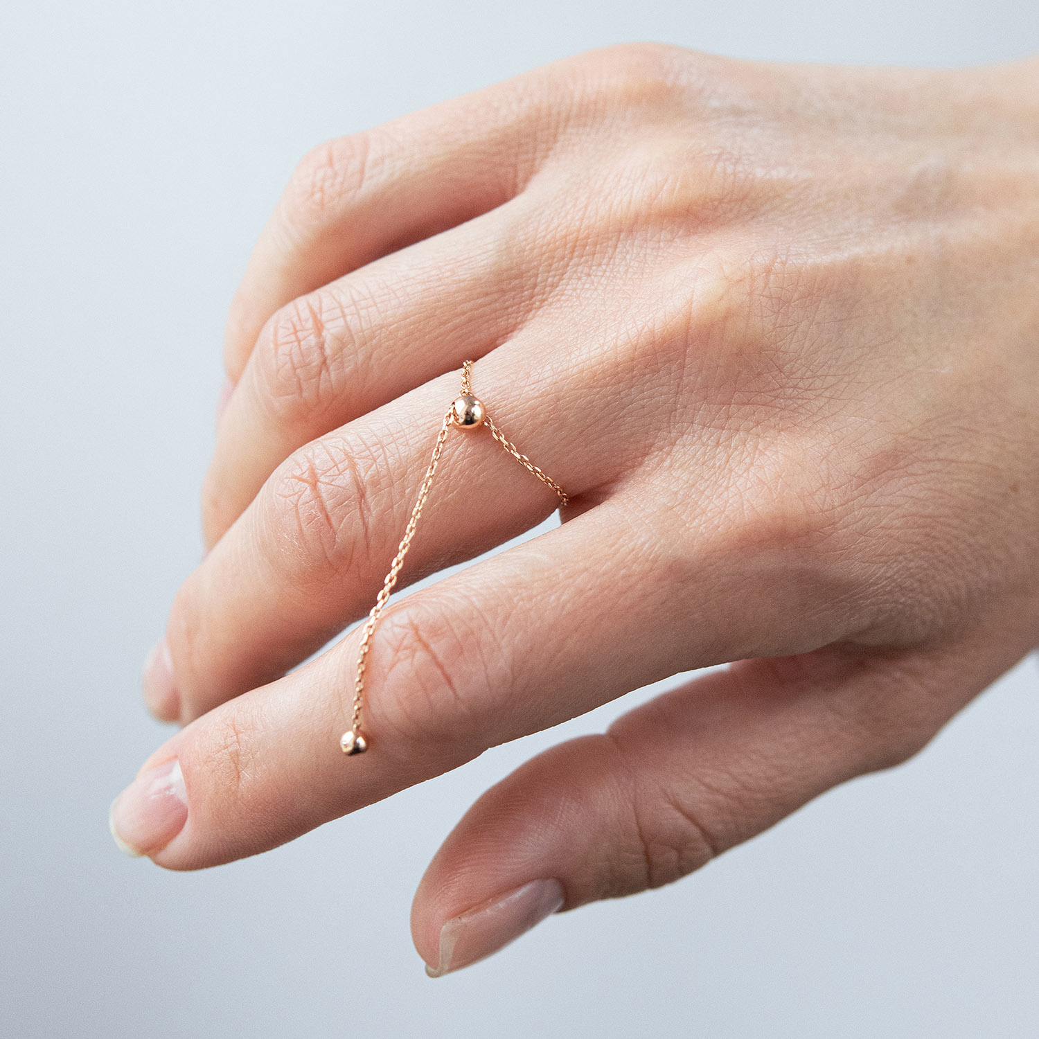 Кольцо "Шарик на цепочке" в красном золоте к08110