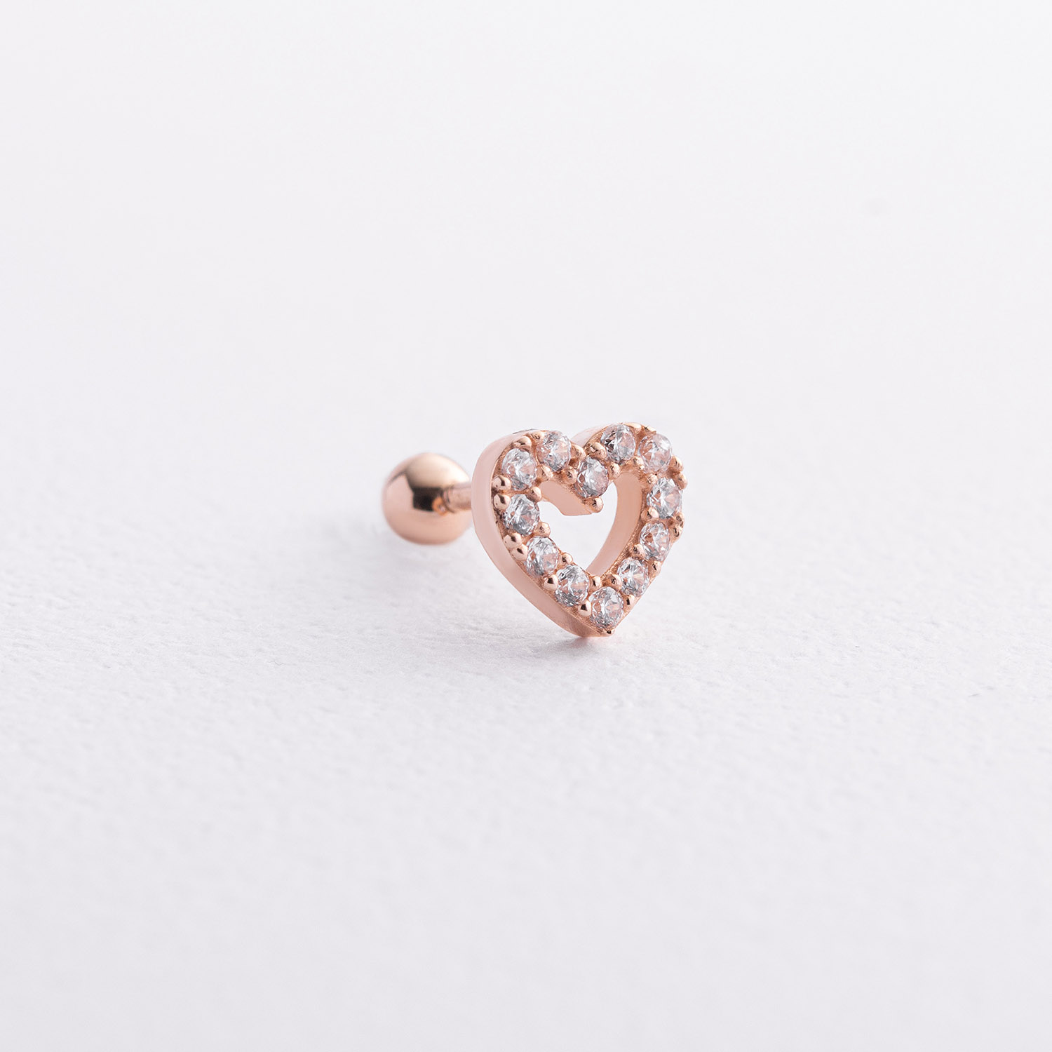 Одиночная золотая серьга для хеликса "Сердечко" (фианиты) з40104ч