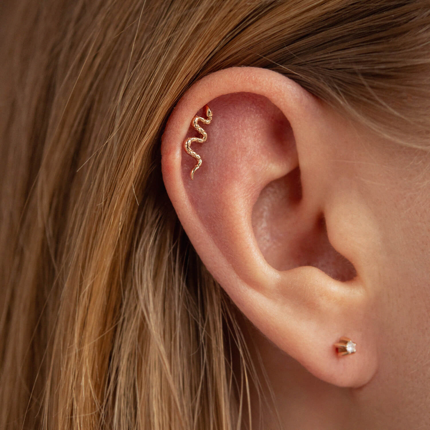 Одиночная золотая серьга для хеликса "Змея" з40075к