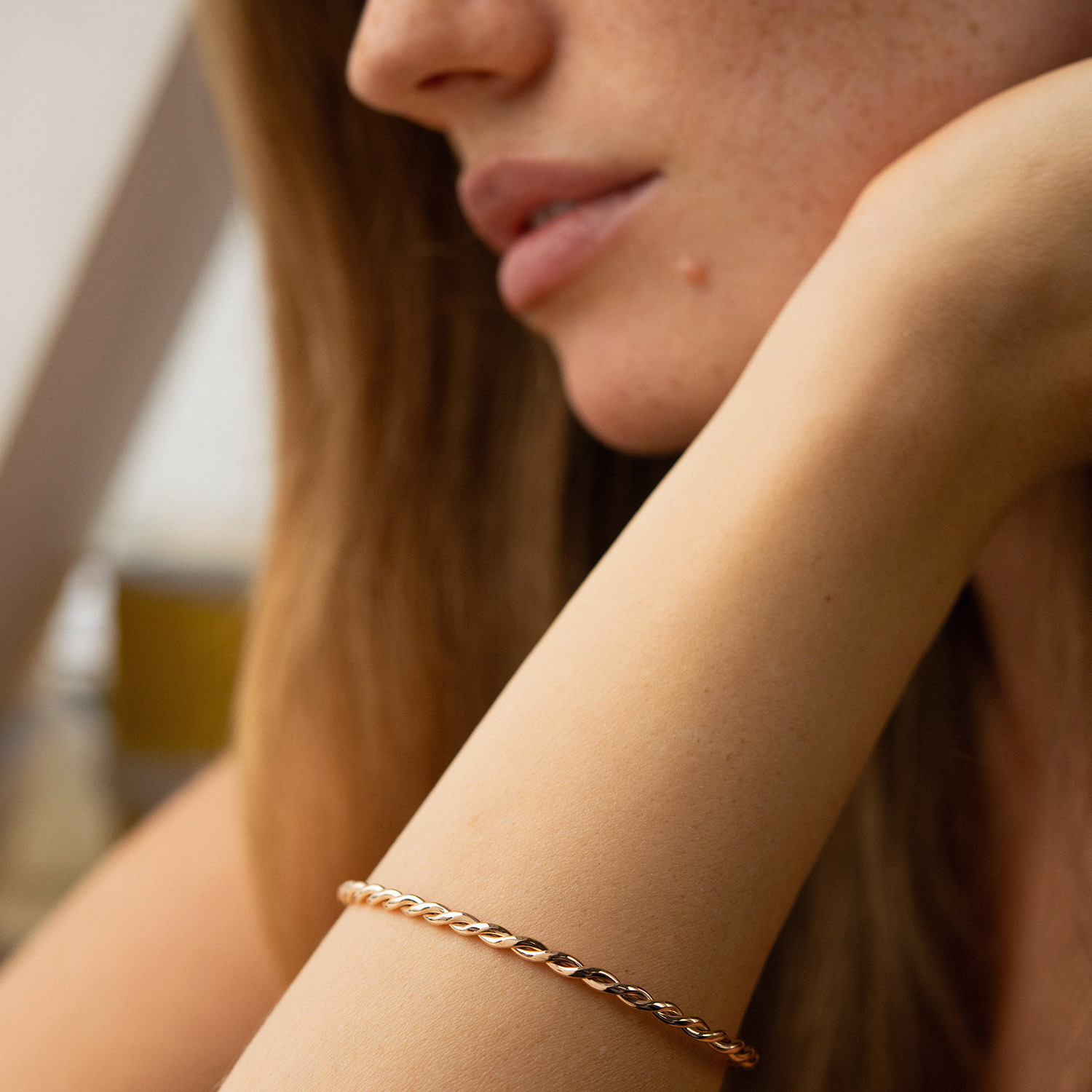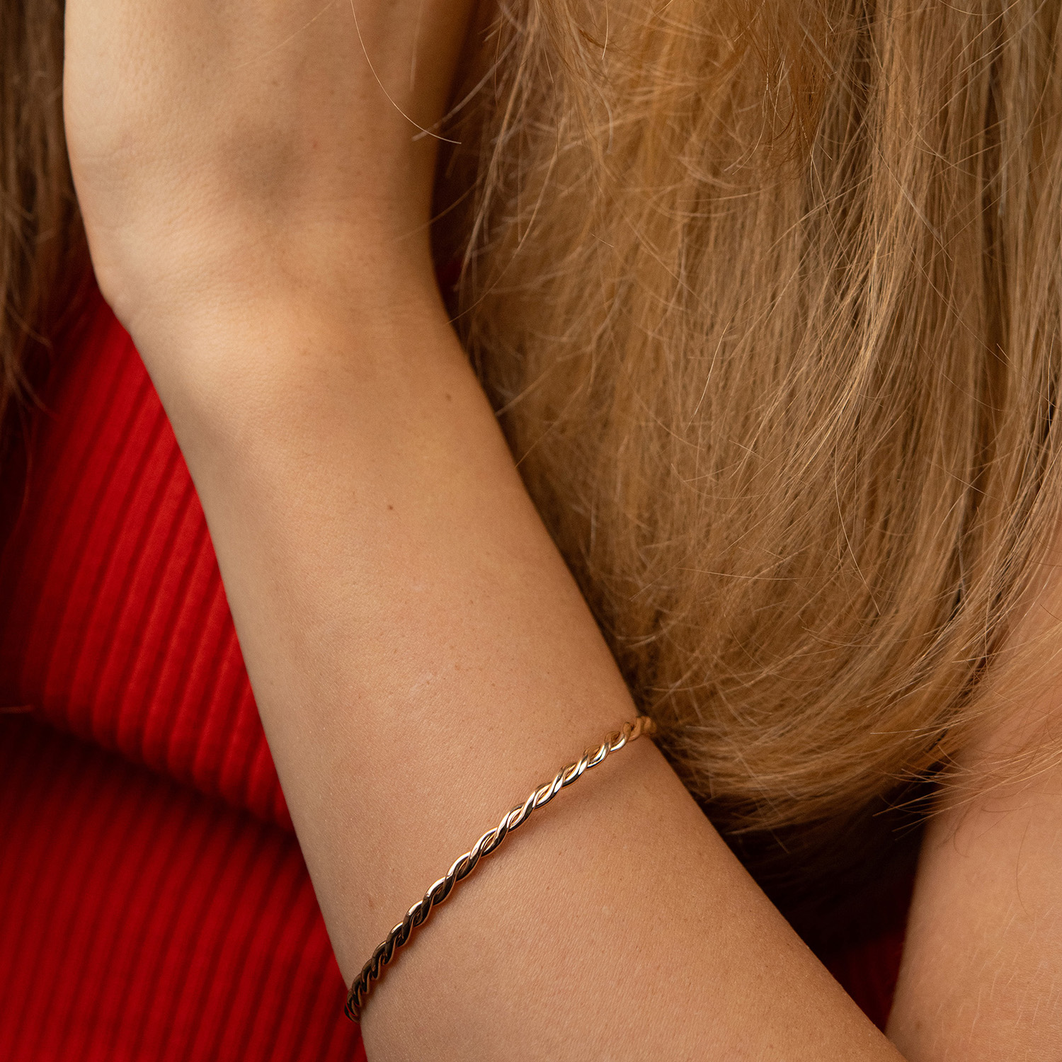 Жесткий золотой браслет "Переплетение" б05531