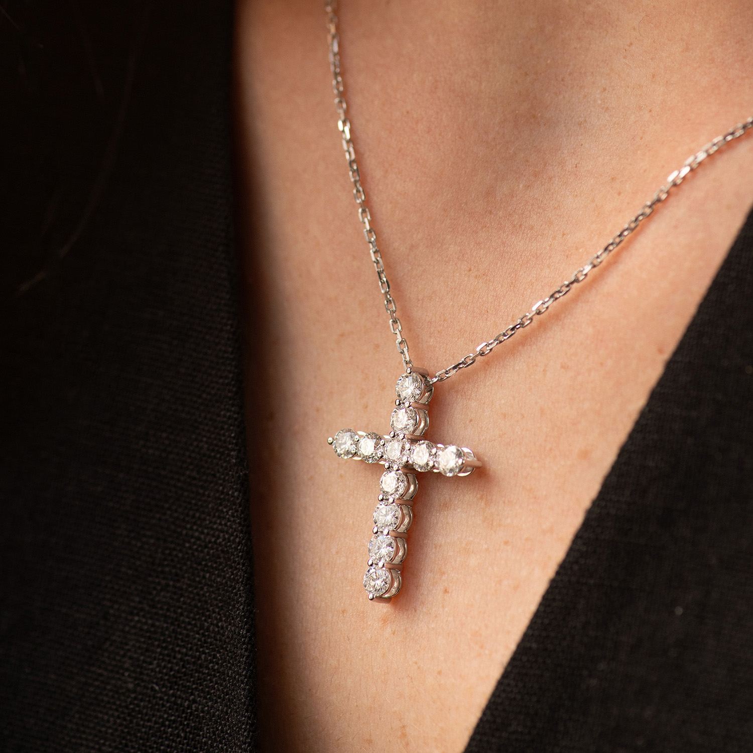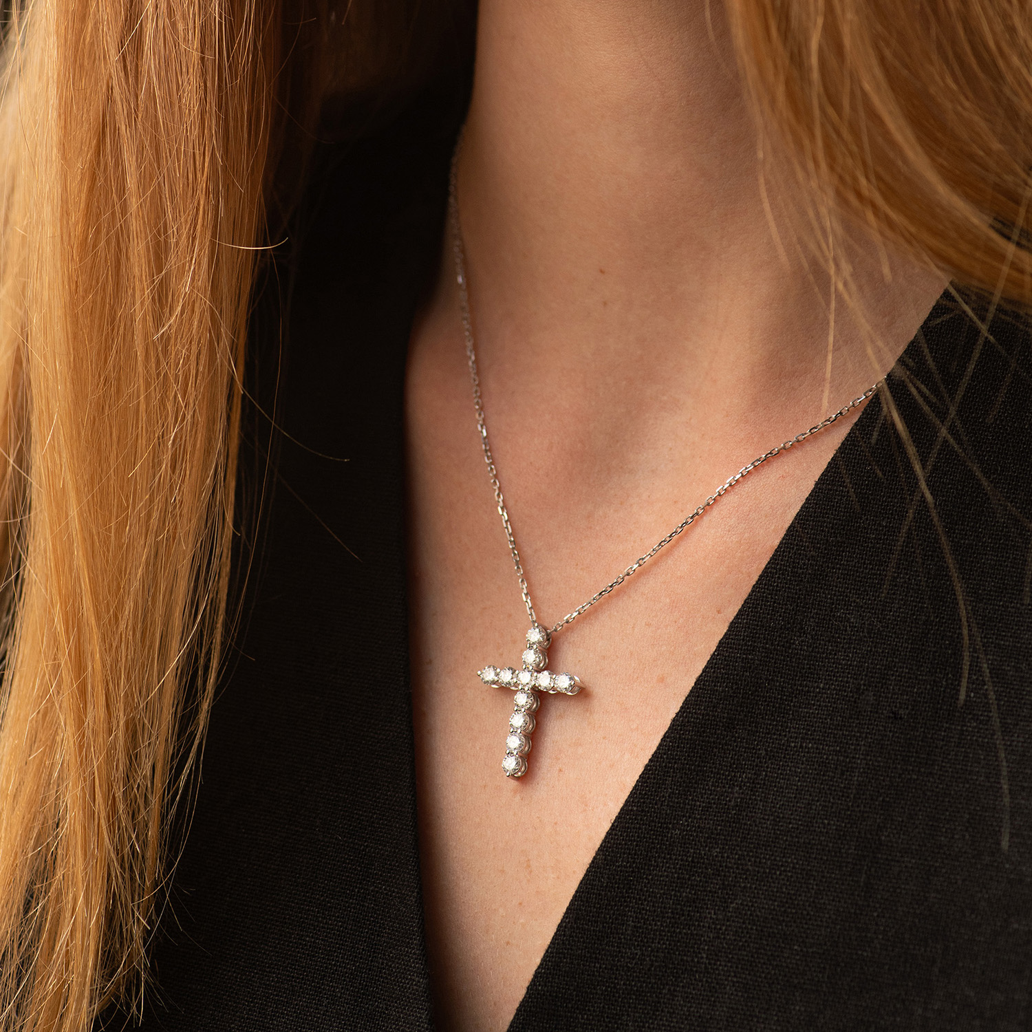 Золотое колье "Крестик" с бриллиантами 739511121