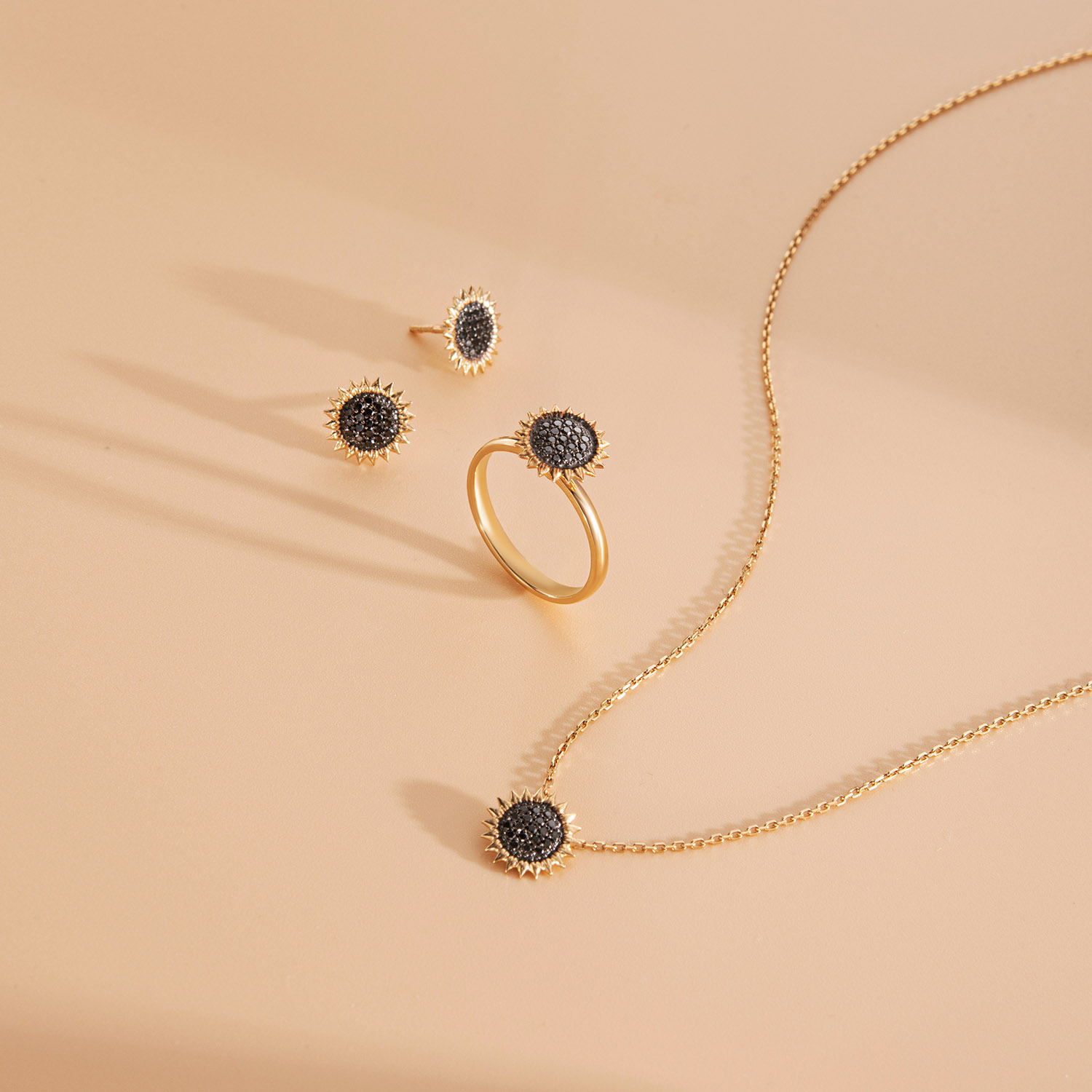 Золотое колье "Подсолнух" с черными бриллиантами 726133122