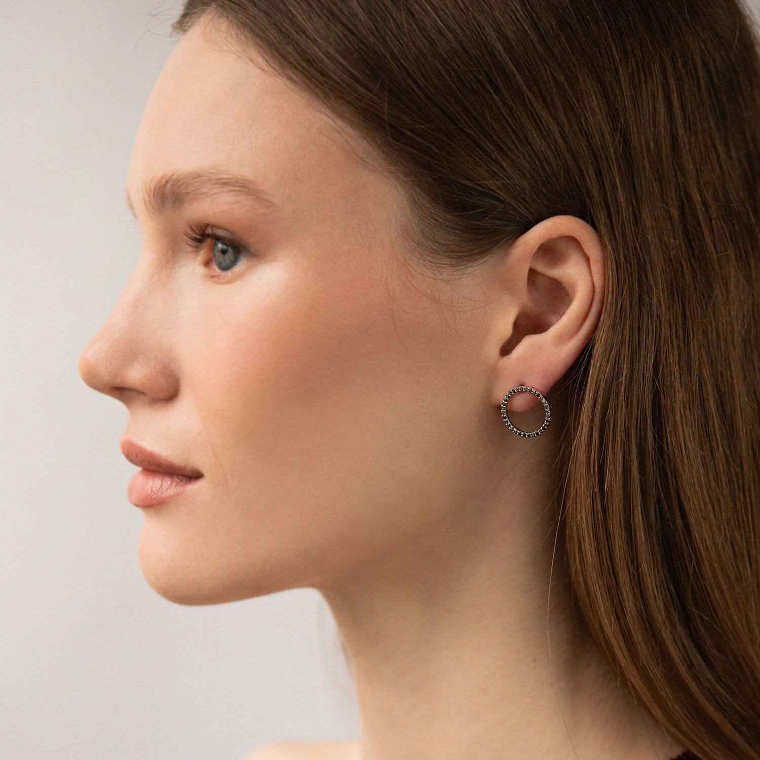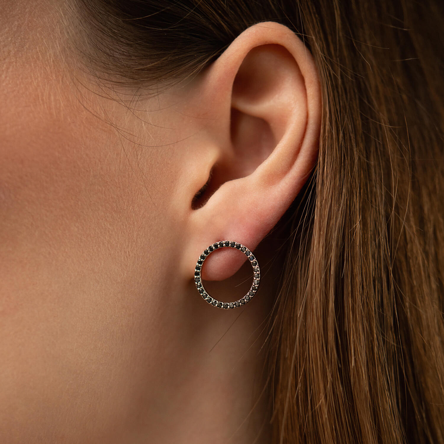 Золотые серьги - пусеты "Круговорот" (черные бриллианты) сб0485м