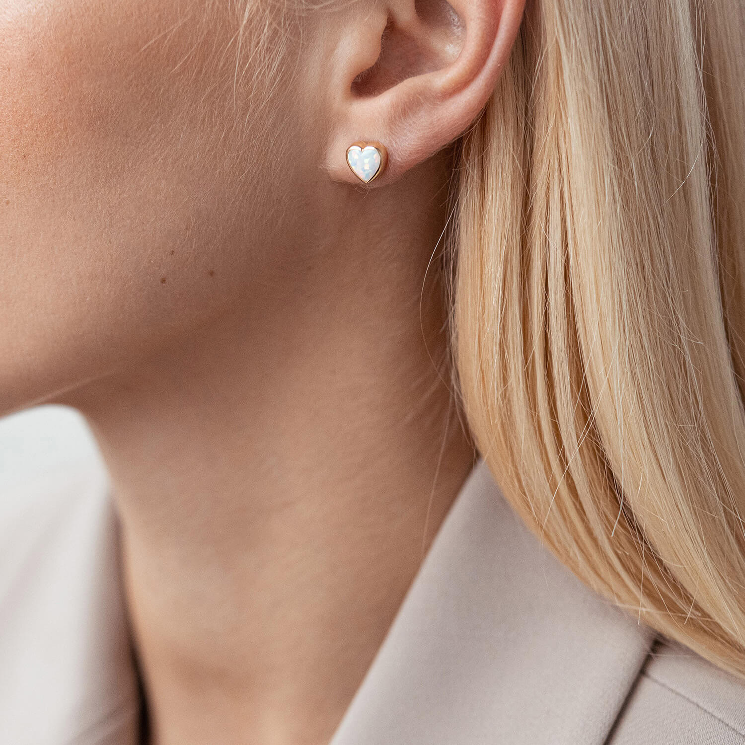 Золотые серьги - пусеты "Сердечки" с опалом с07747
