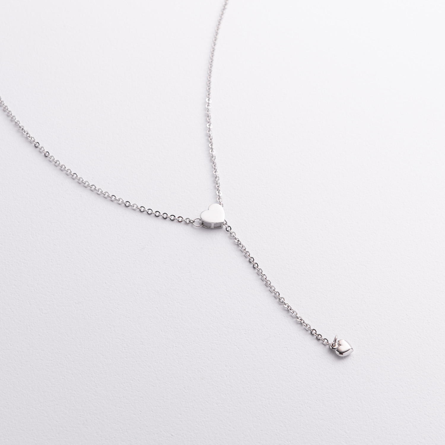 Кольє - краватка "Сердечко" у білому золоті (регульована довжина) кол02612