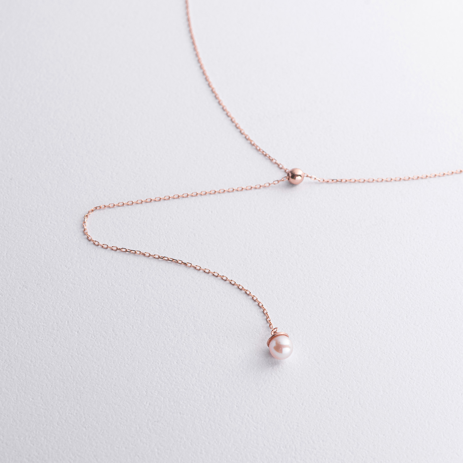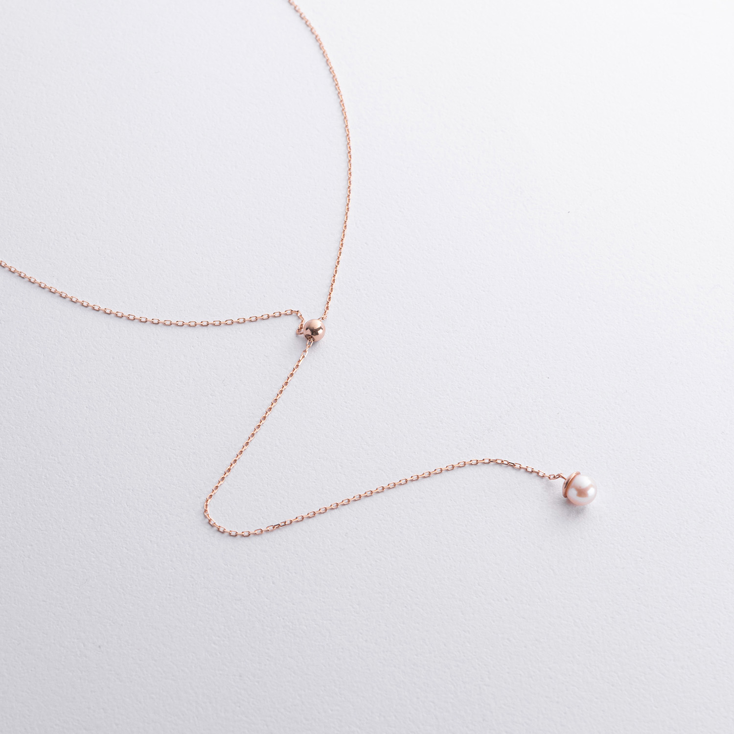 Кольє - краватка "Перлина на ланцюжку" в червоному золоті (регульована довжина) кол02634