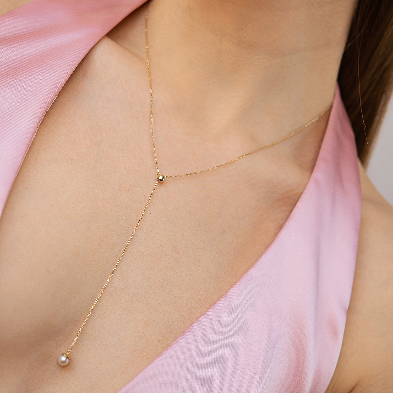 Кольє - краватка "Перлина на ланцюжку" в жовтому золоті (регульована довжина) кол02635