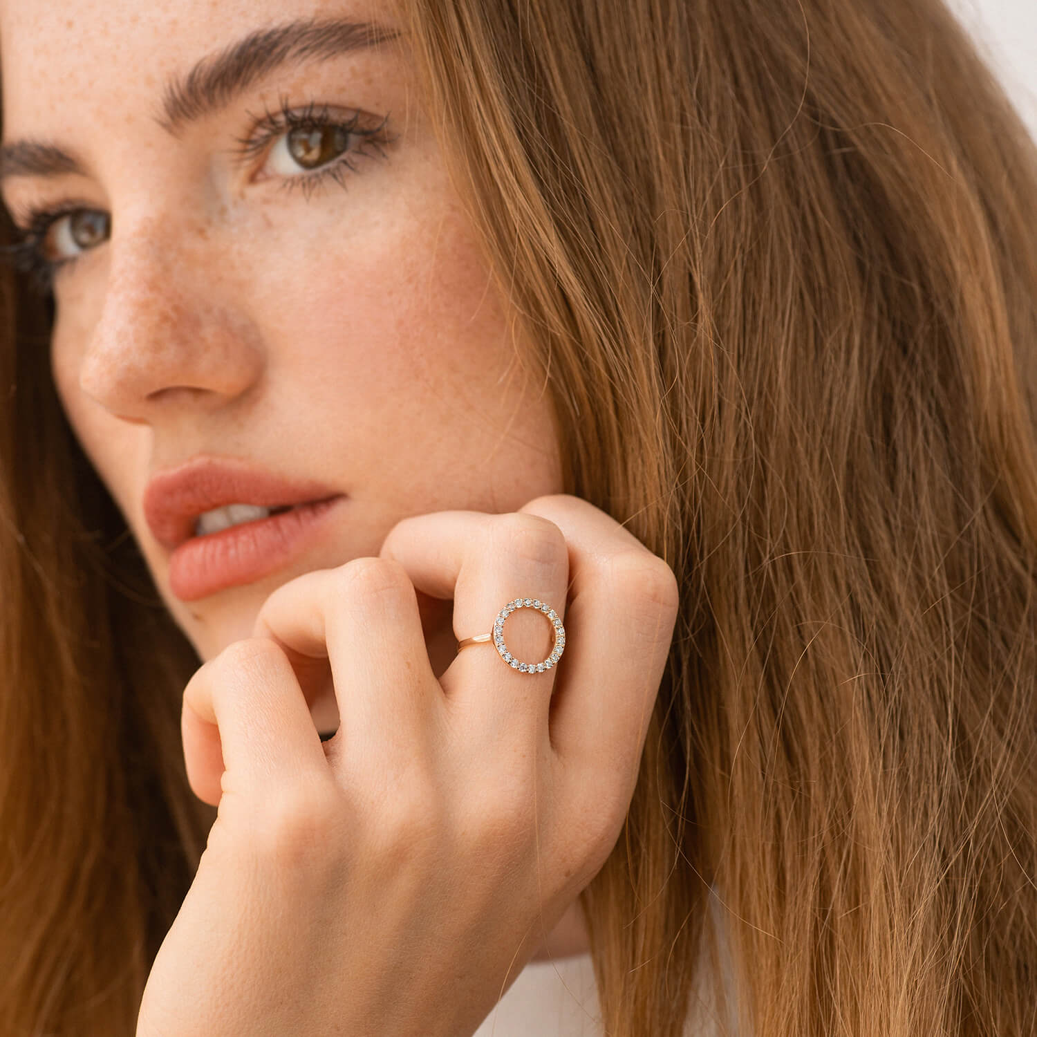 Каблучка "Кругообіг" в червоному золоті (фіаніти) к08150