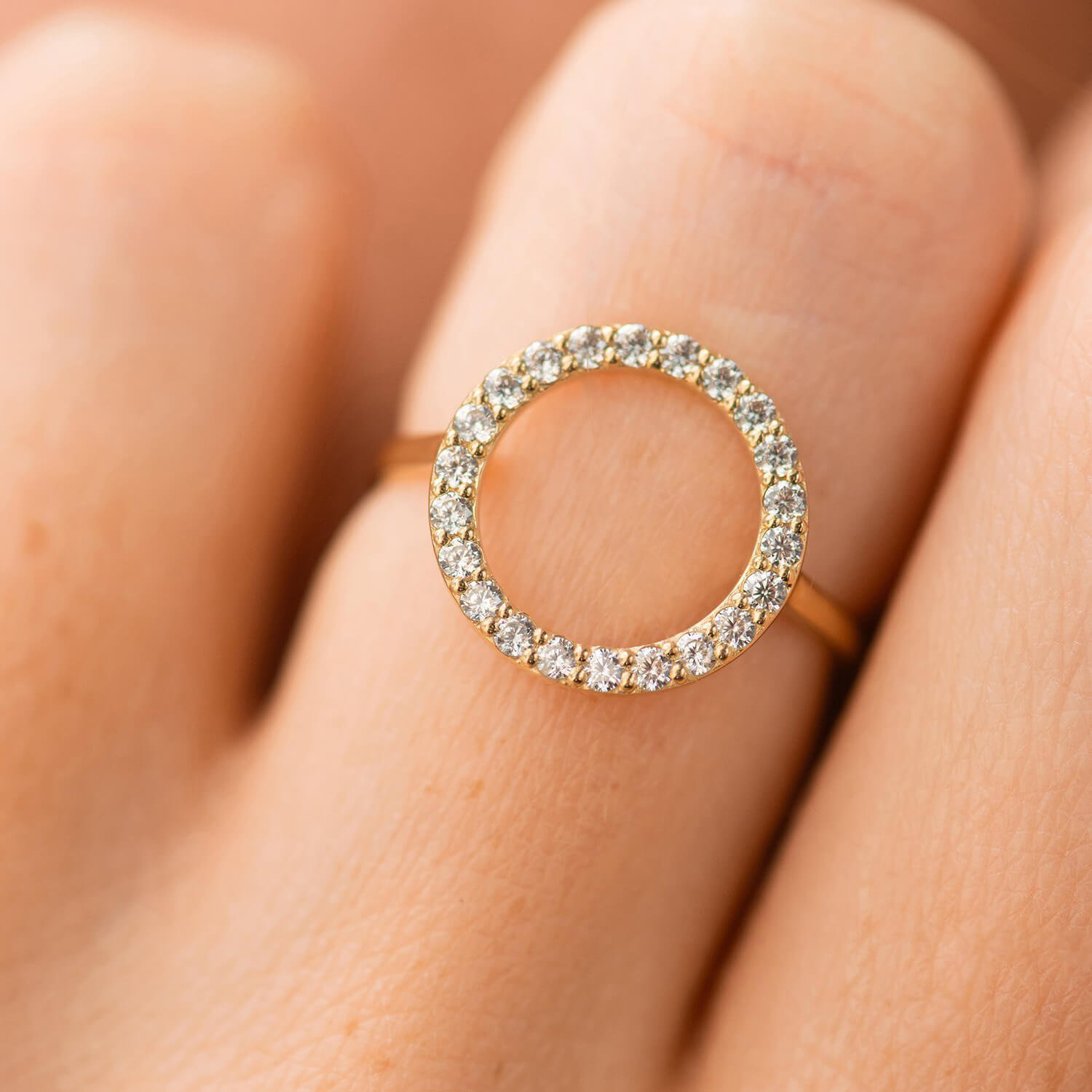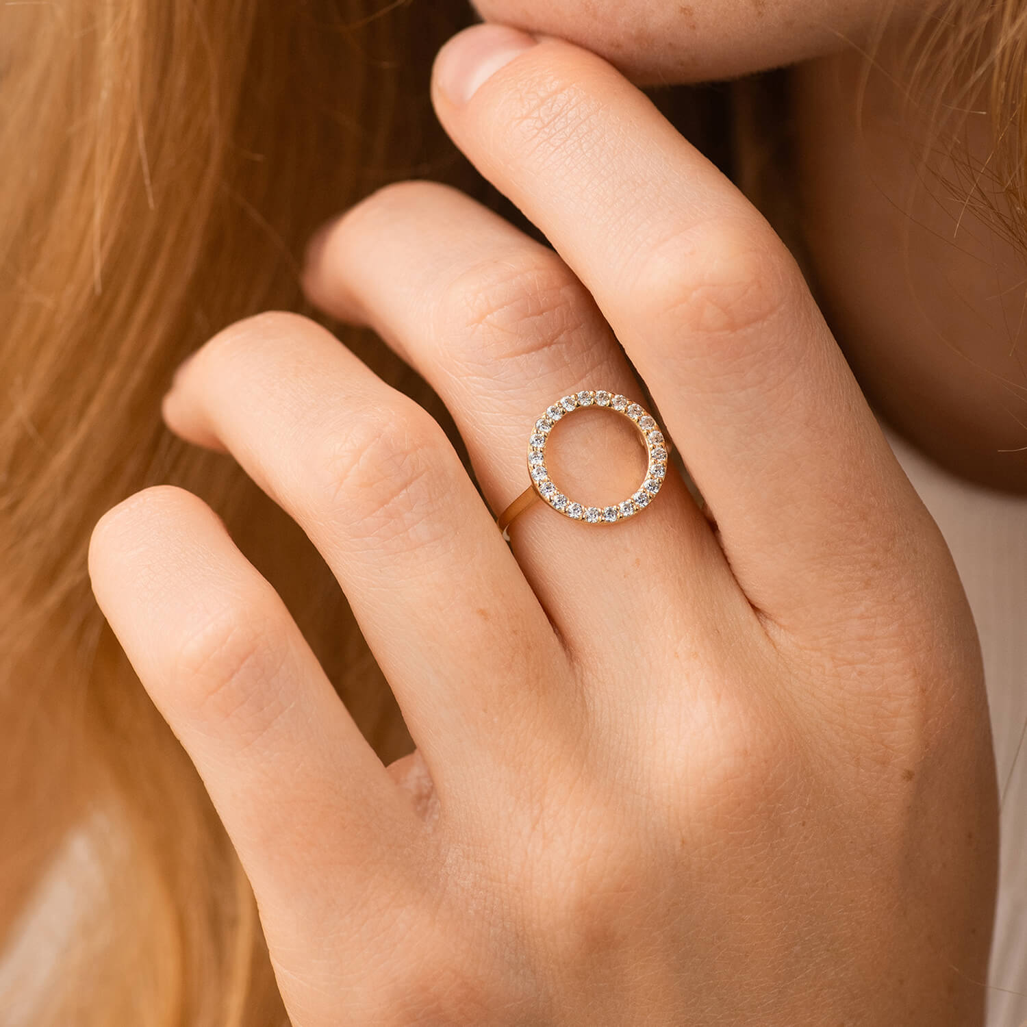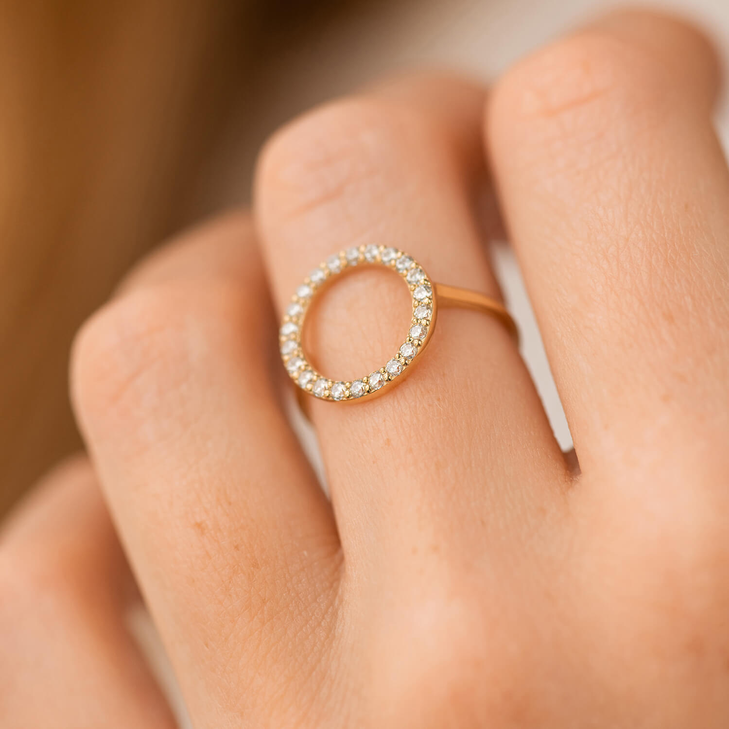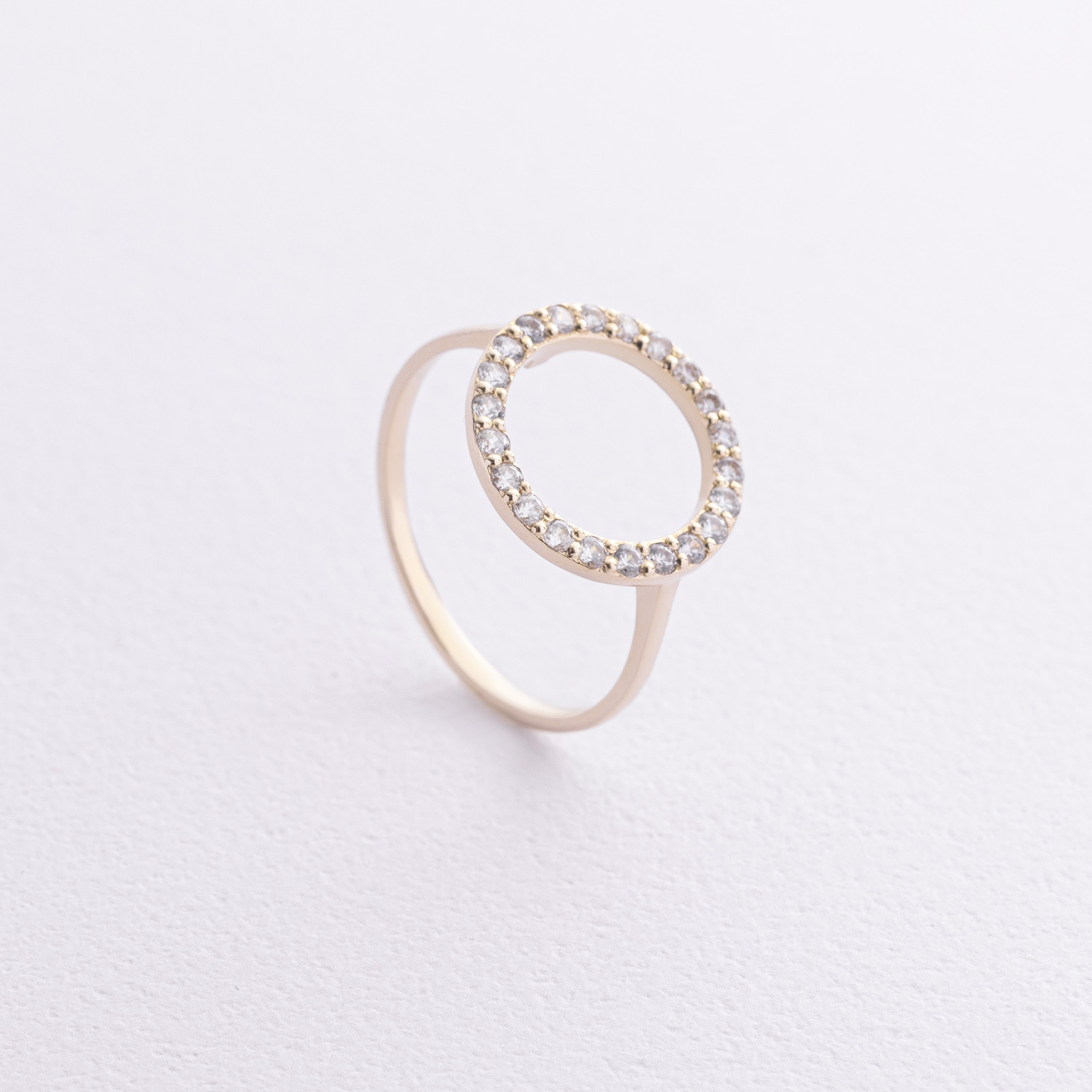 Каблучка "Кругообіг" в жовтому золоті (фіаніти) к08152