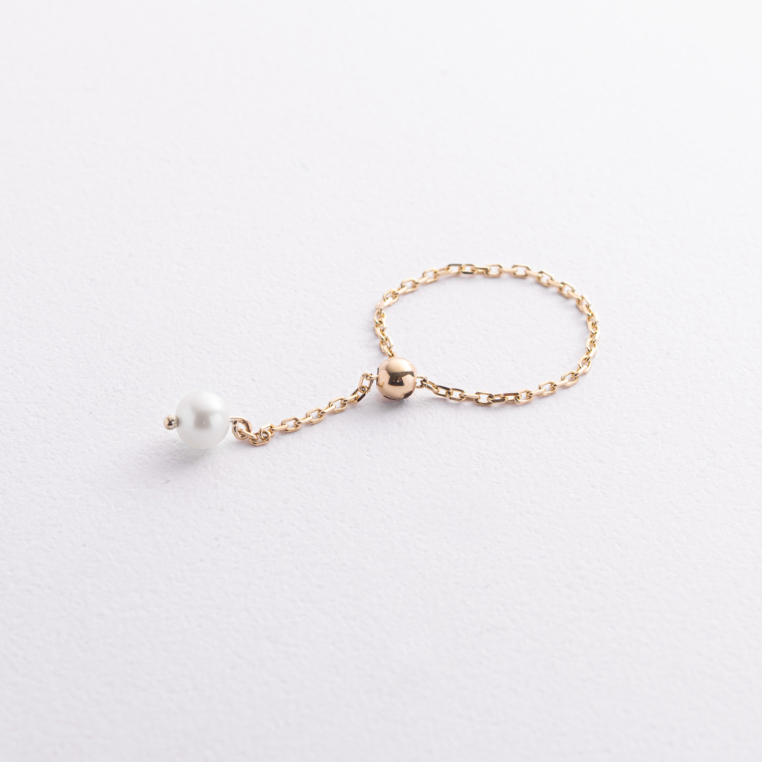 Каблучка "Перлина на ланцюжку" в жовтому золоті к08346