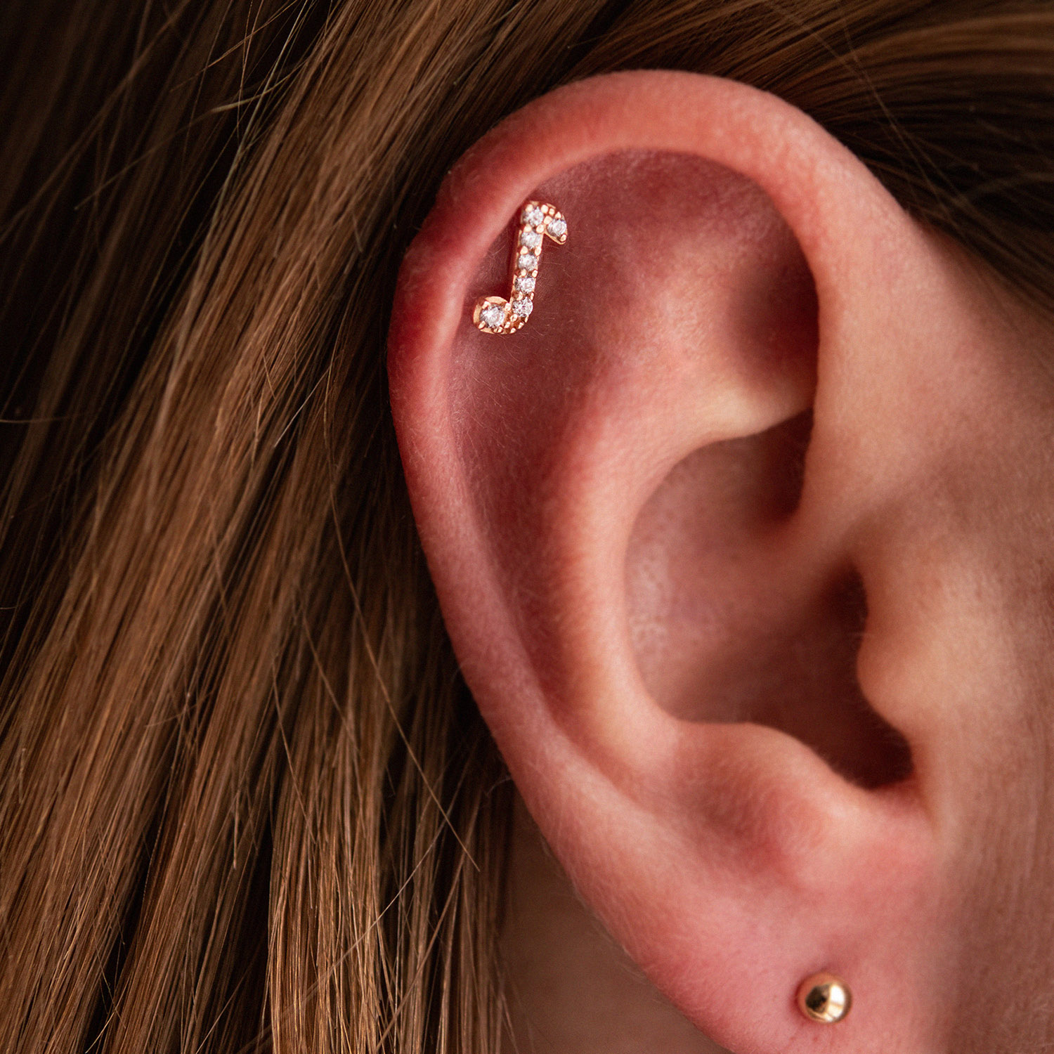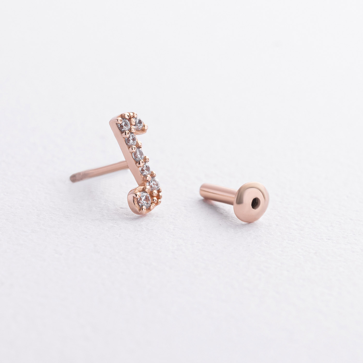 Одиночна золота сережка для хелікса "Нота" (фіаніти) 1710ч