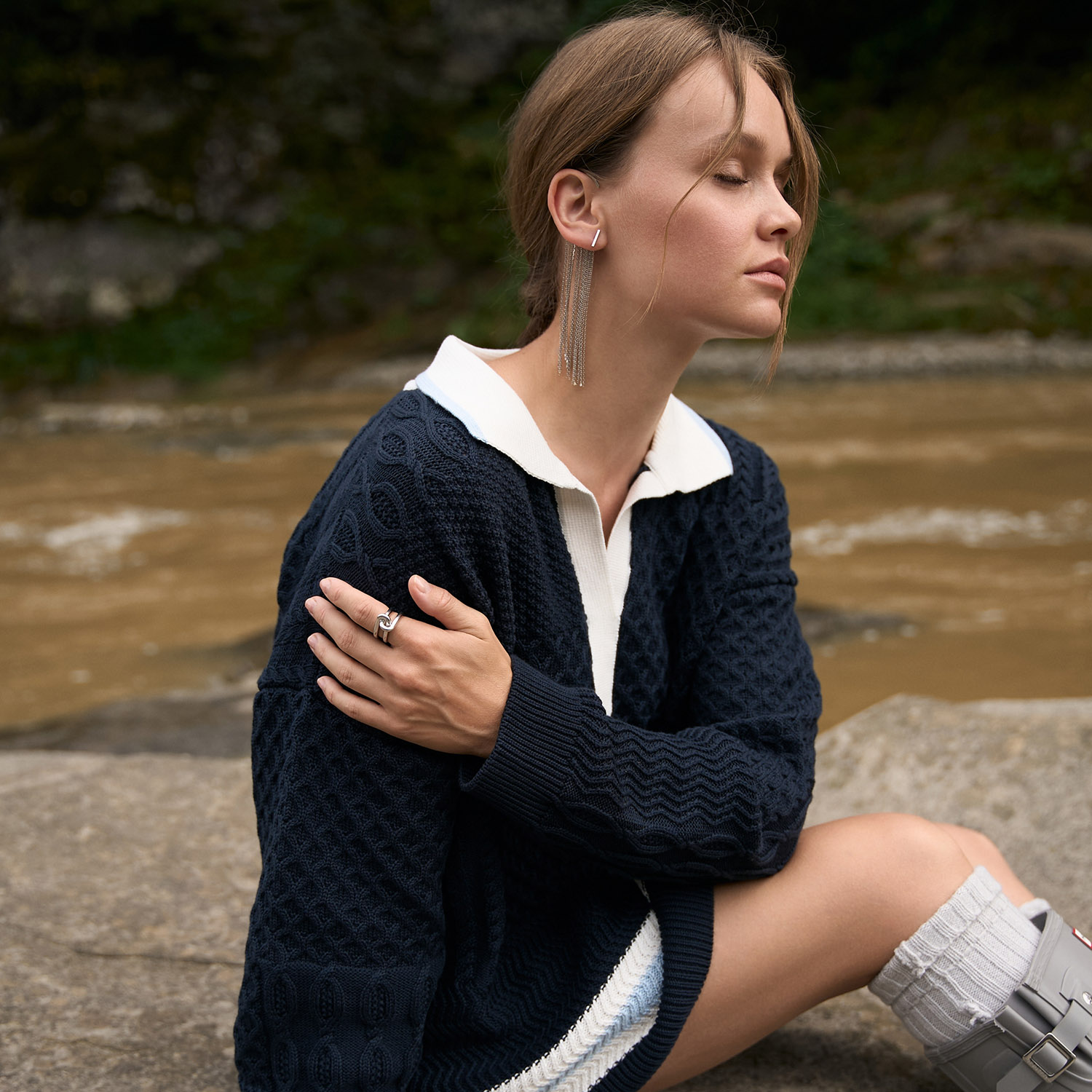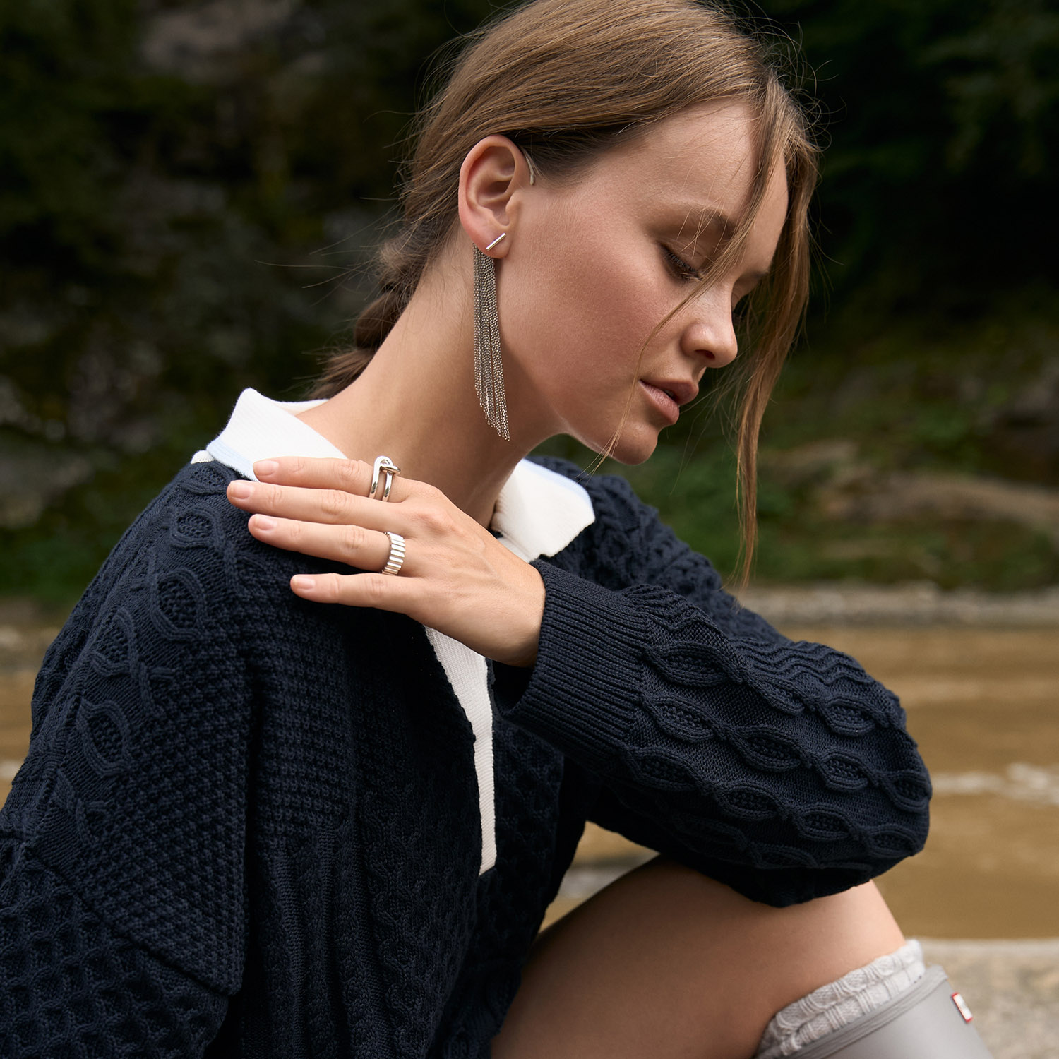 Серьга - каффа "Неповторність" в білому золоті с07589