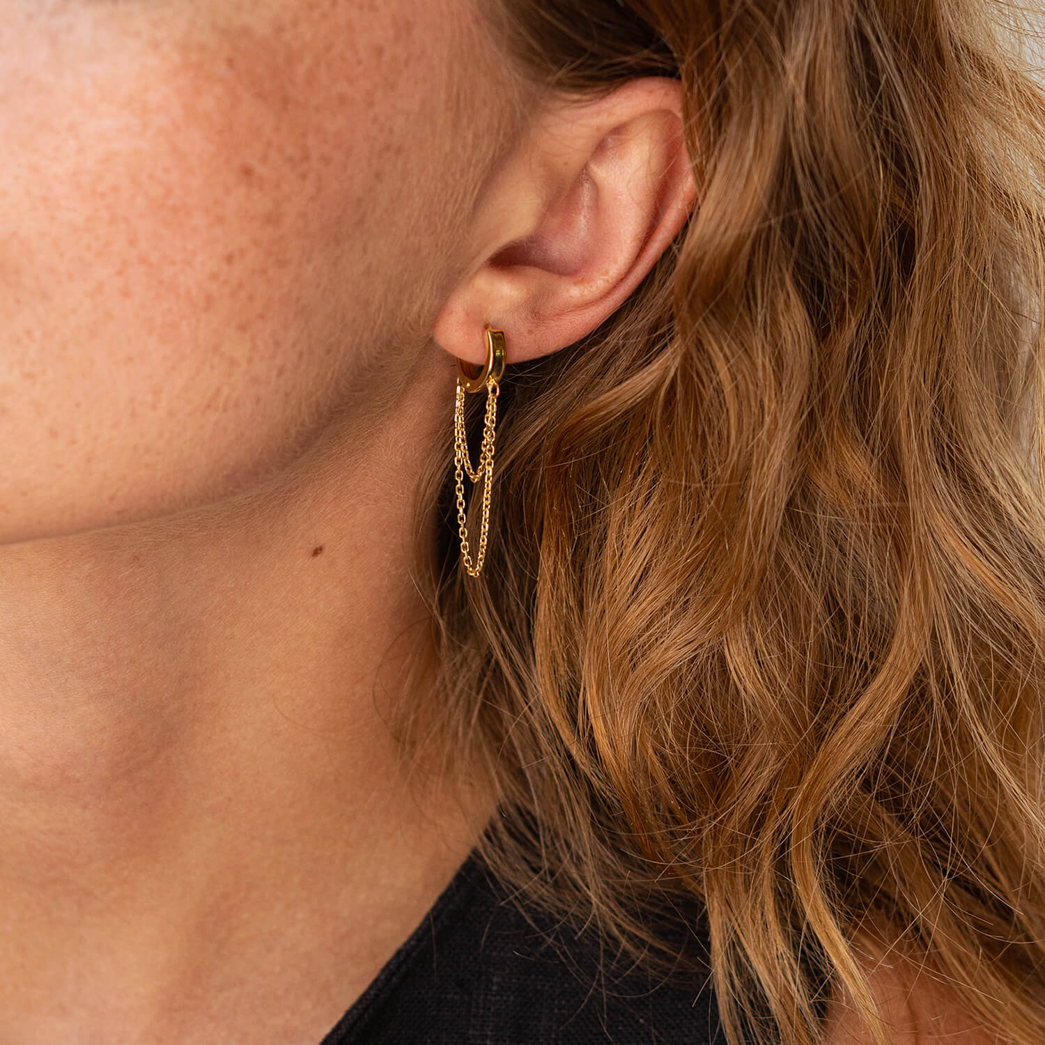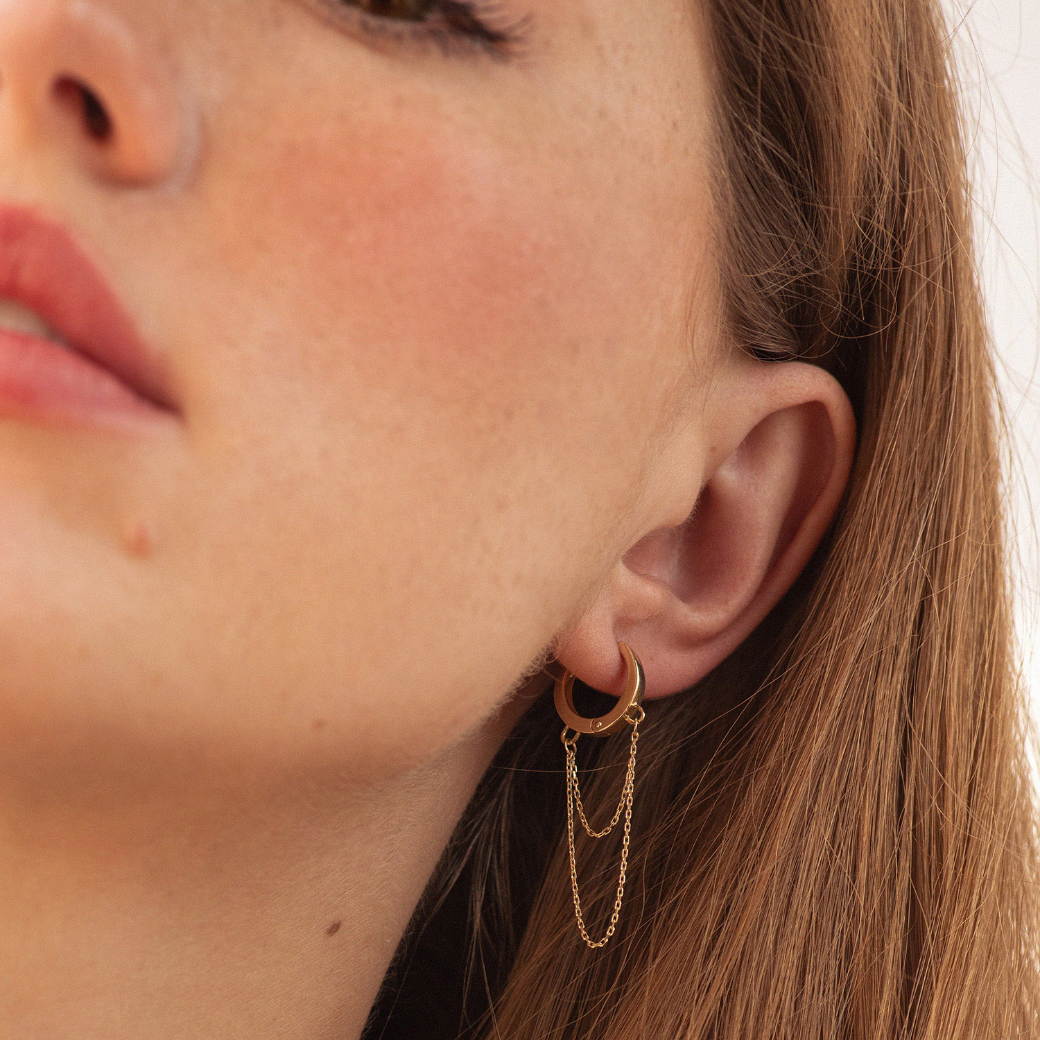 Сережки - кільця з ланцюжками в жовтому золоті с09021