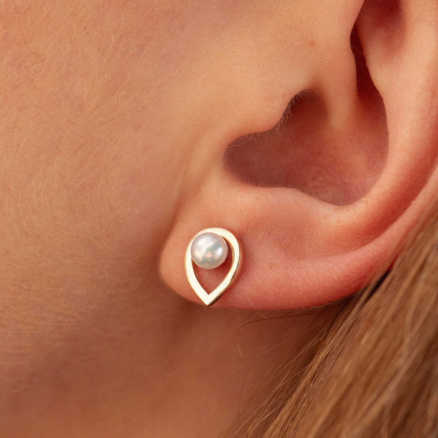 Сережки - пусети "Крапельки" з перлами (червоне золото) с09054