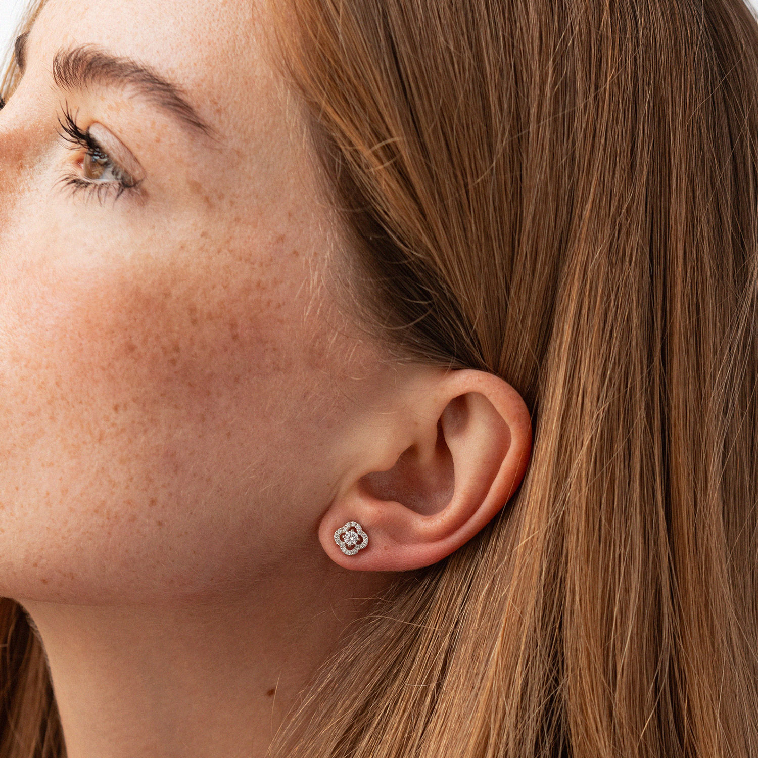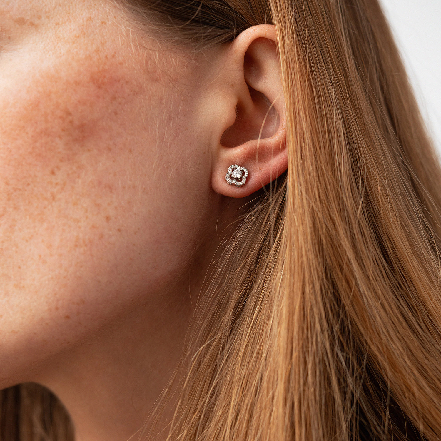 Сережки - пусети "Конюшина" з фіанітами (біле золото) с09175