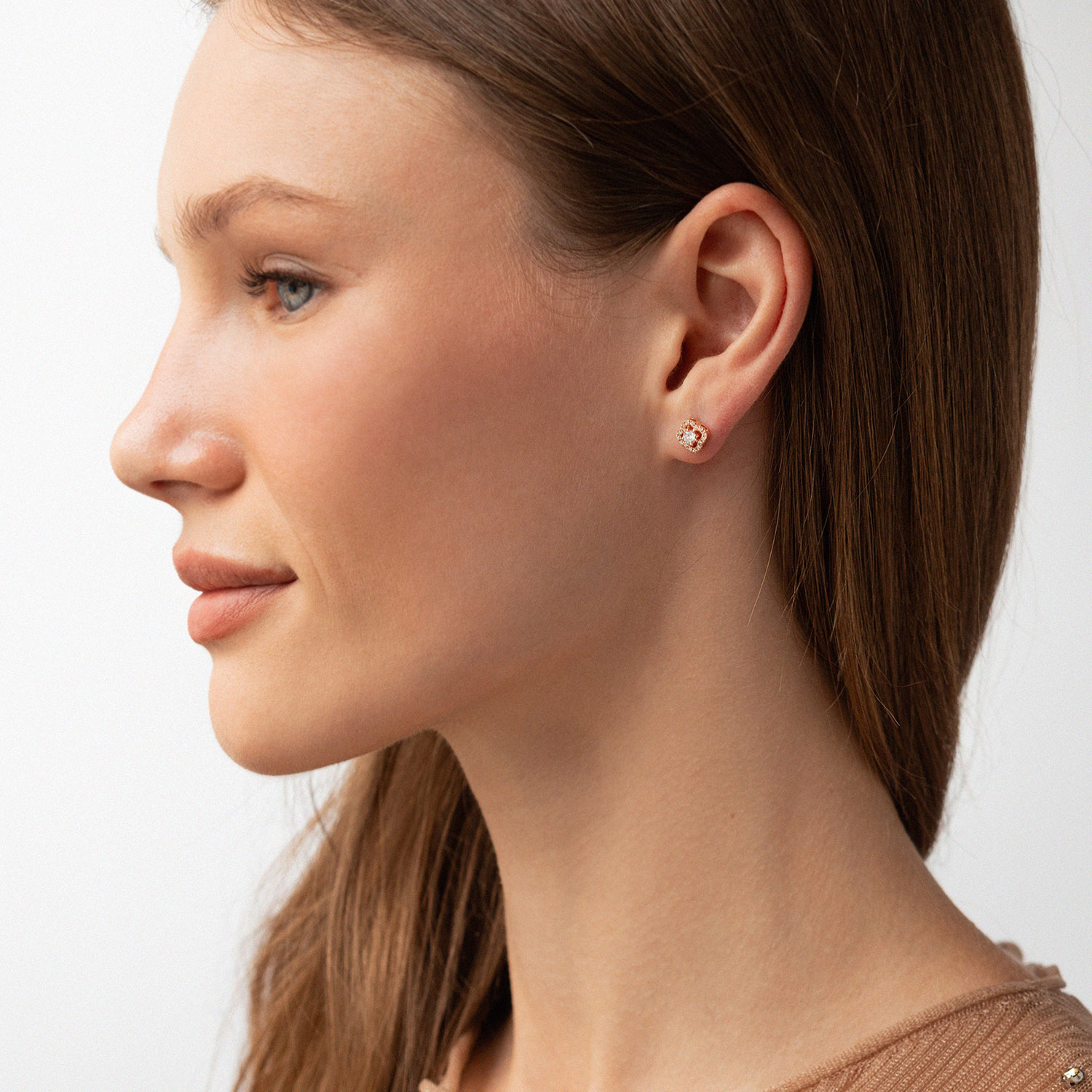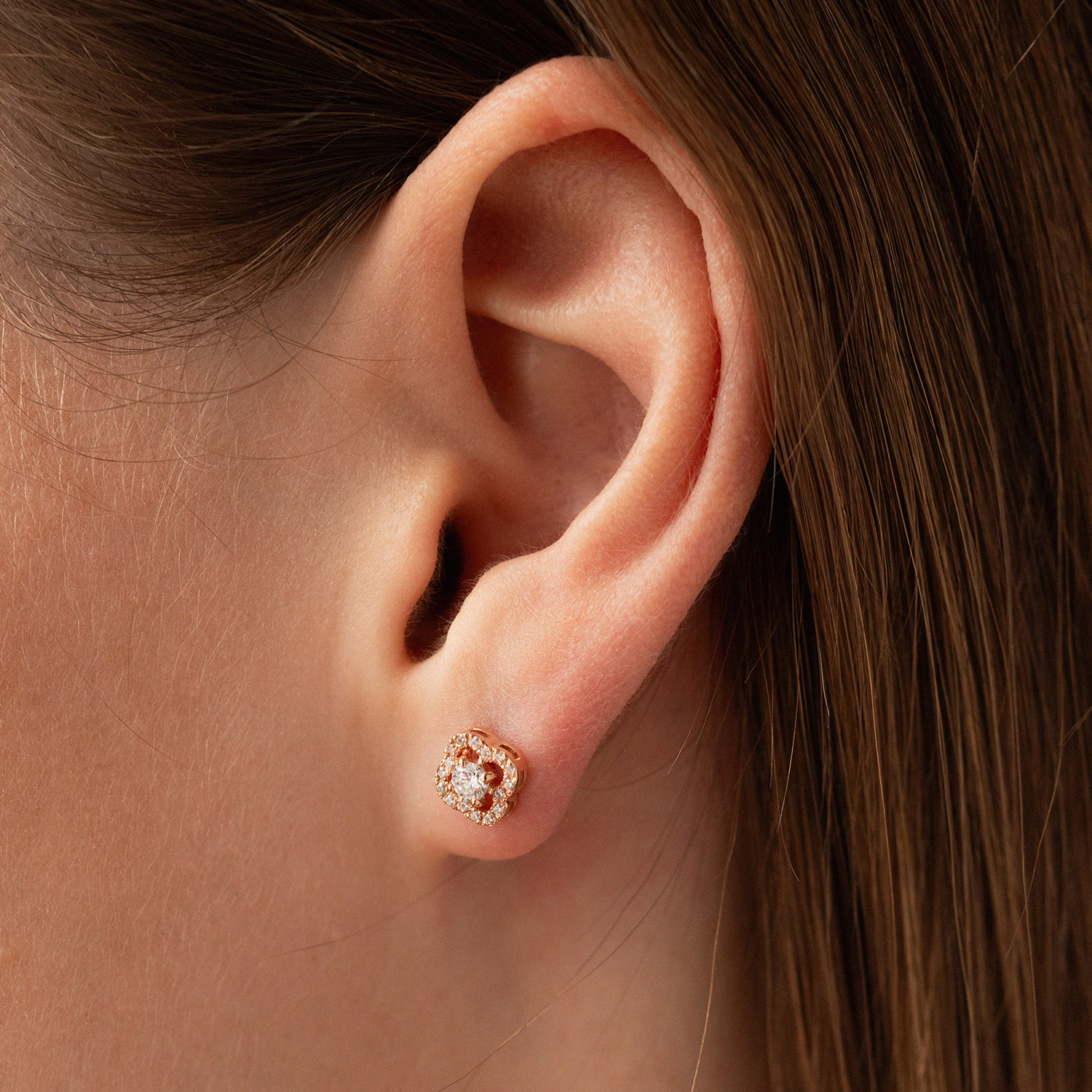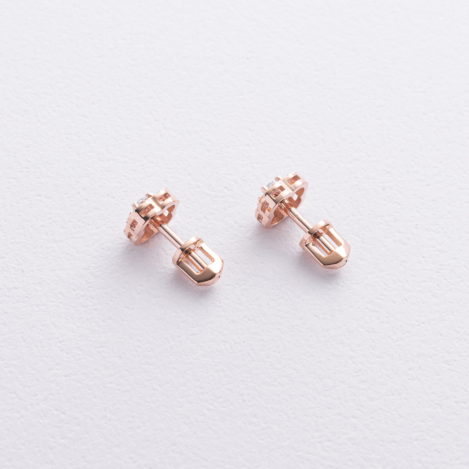 Сережки - пусети "Конюшина" з фіанітами (червоне золото) с09040