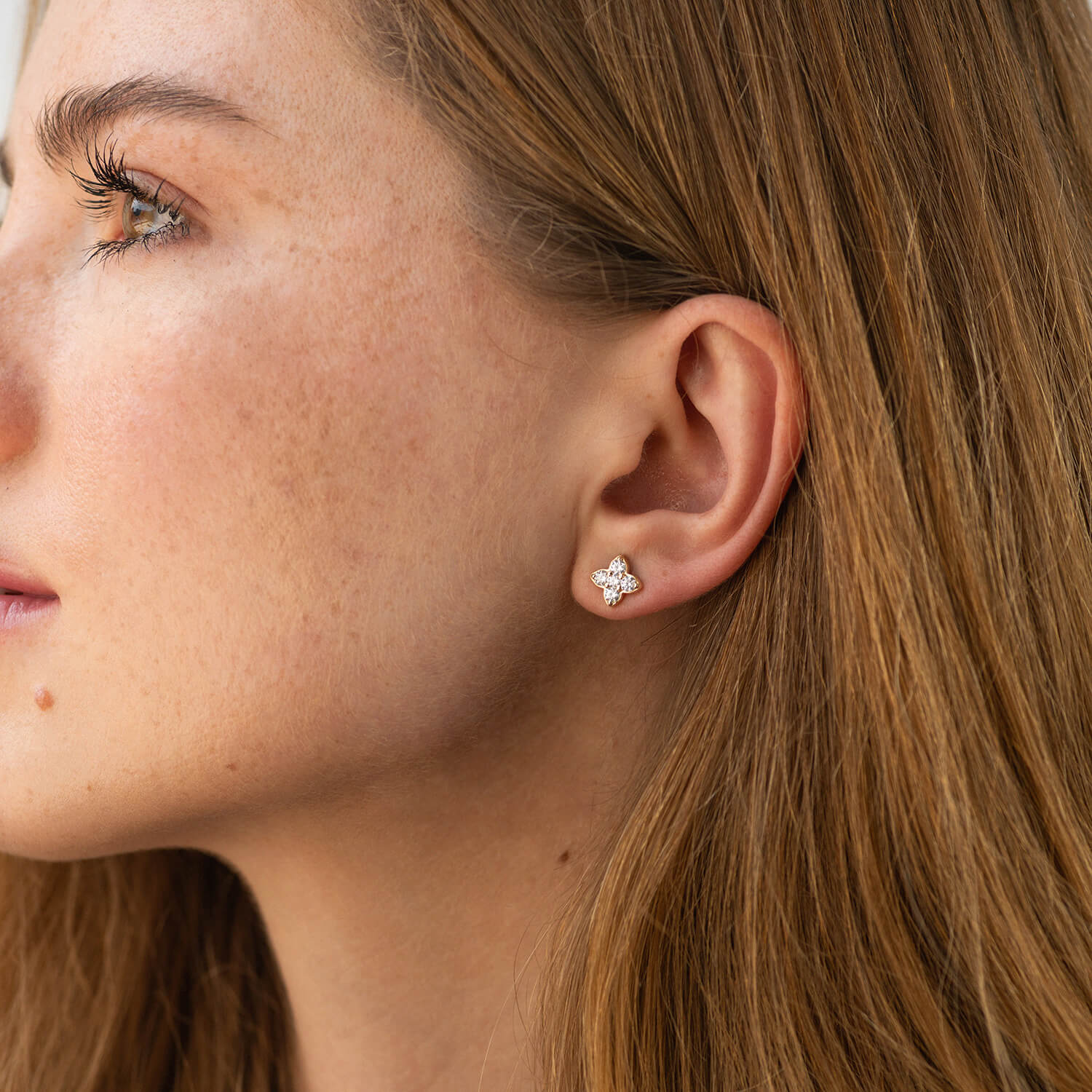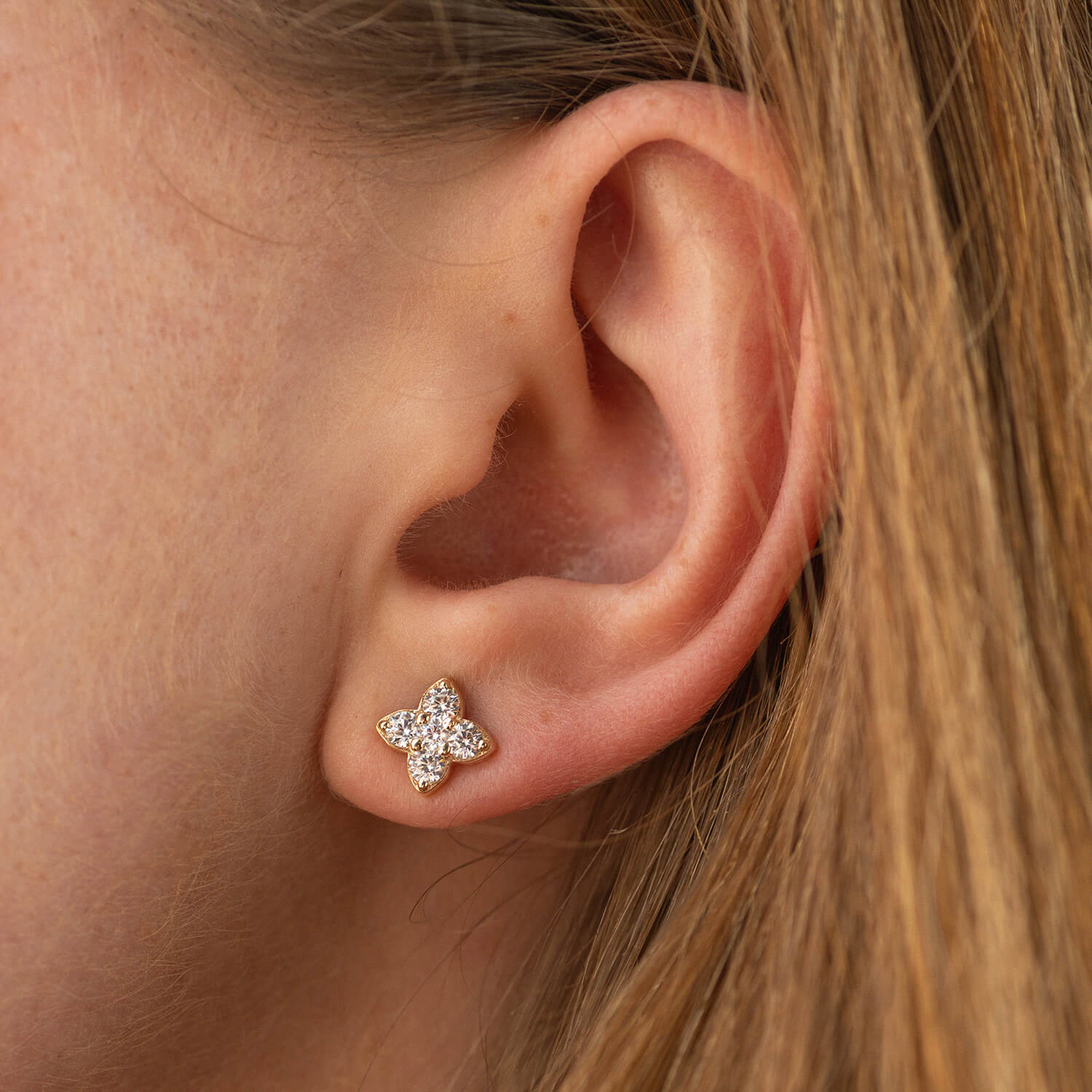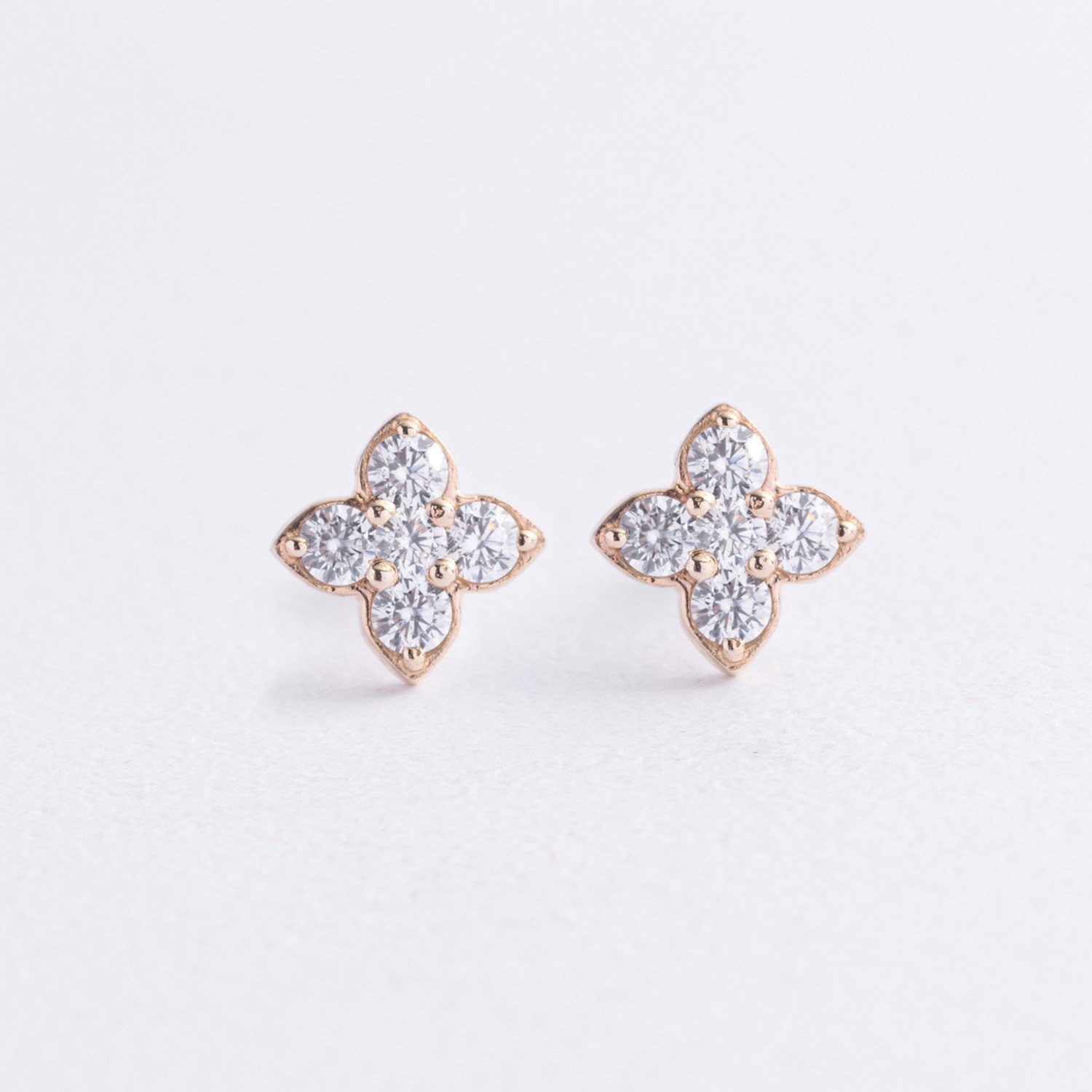 Сережки - пусети "Конюшина" з фіанітами (жовте золото) с09066