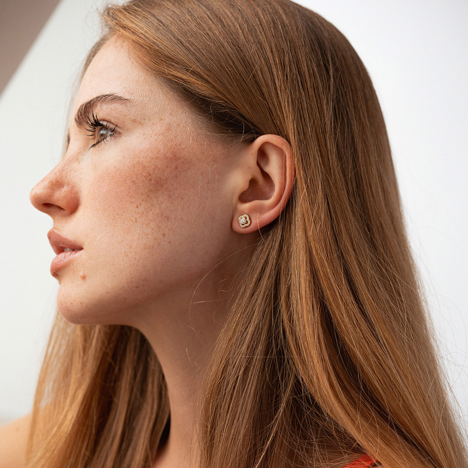 Сережки - пусети "Конюшина" з фіанітами (жовте золото) с09176