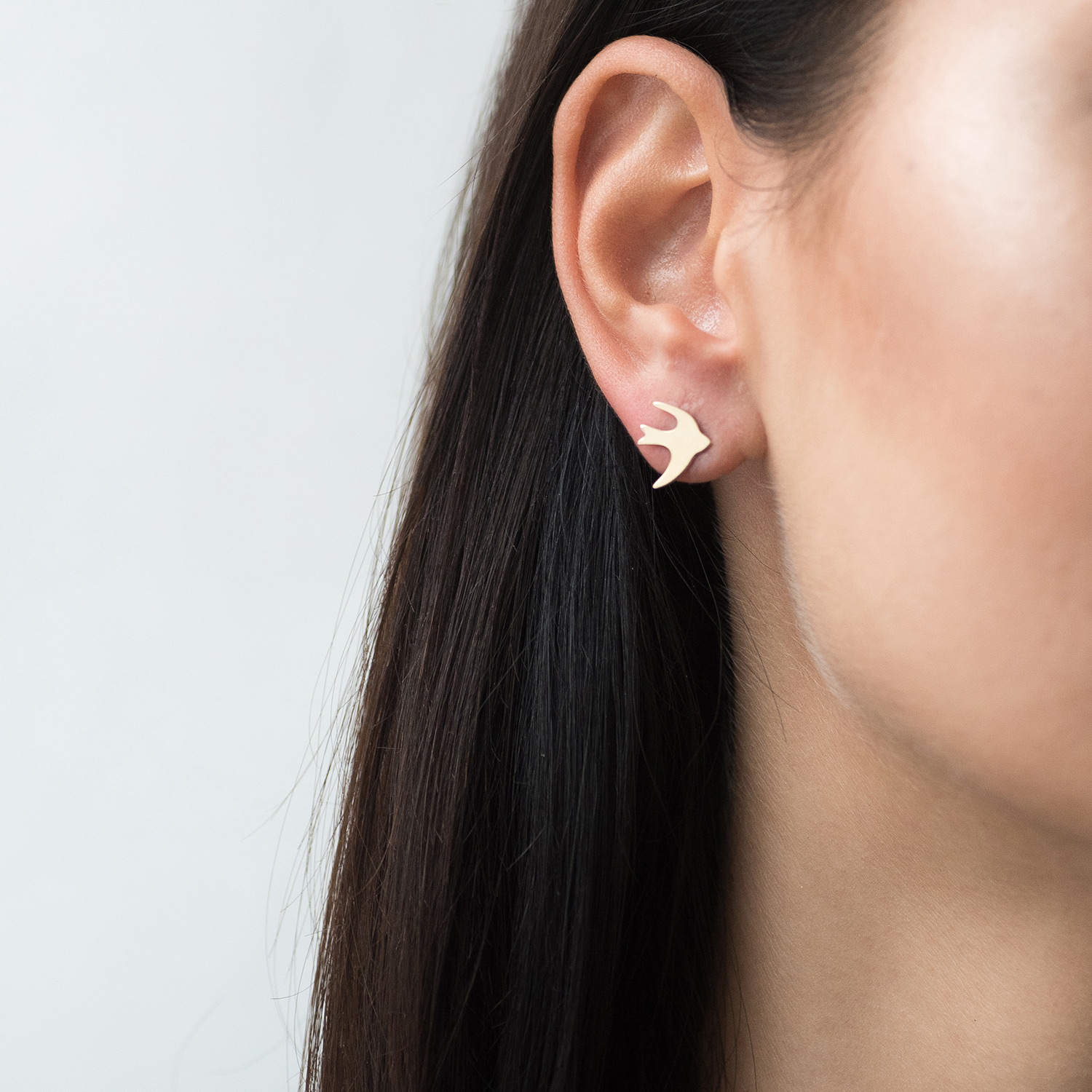 Сережки-пусети "Пташки" в жовтому золоті с06454