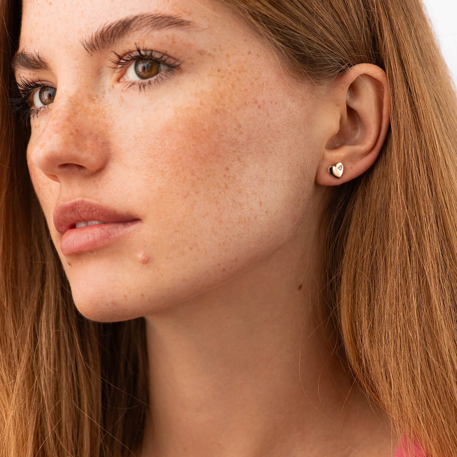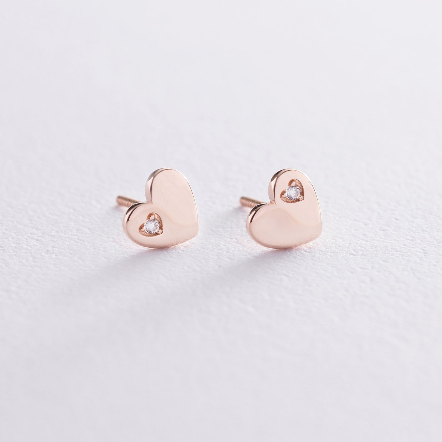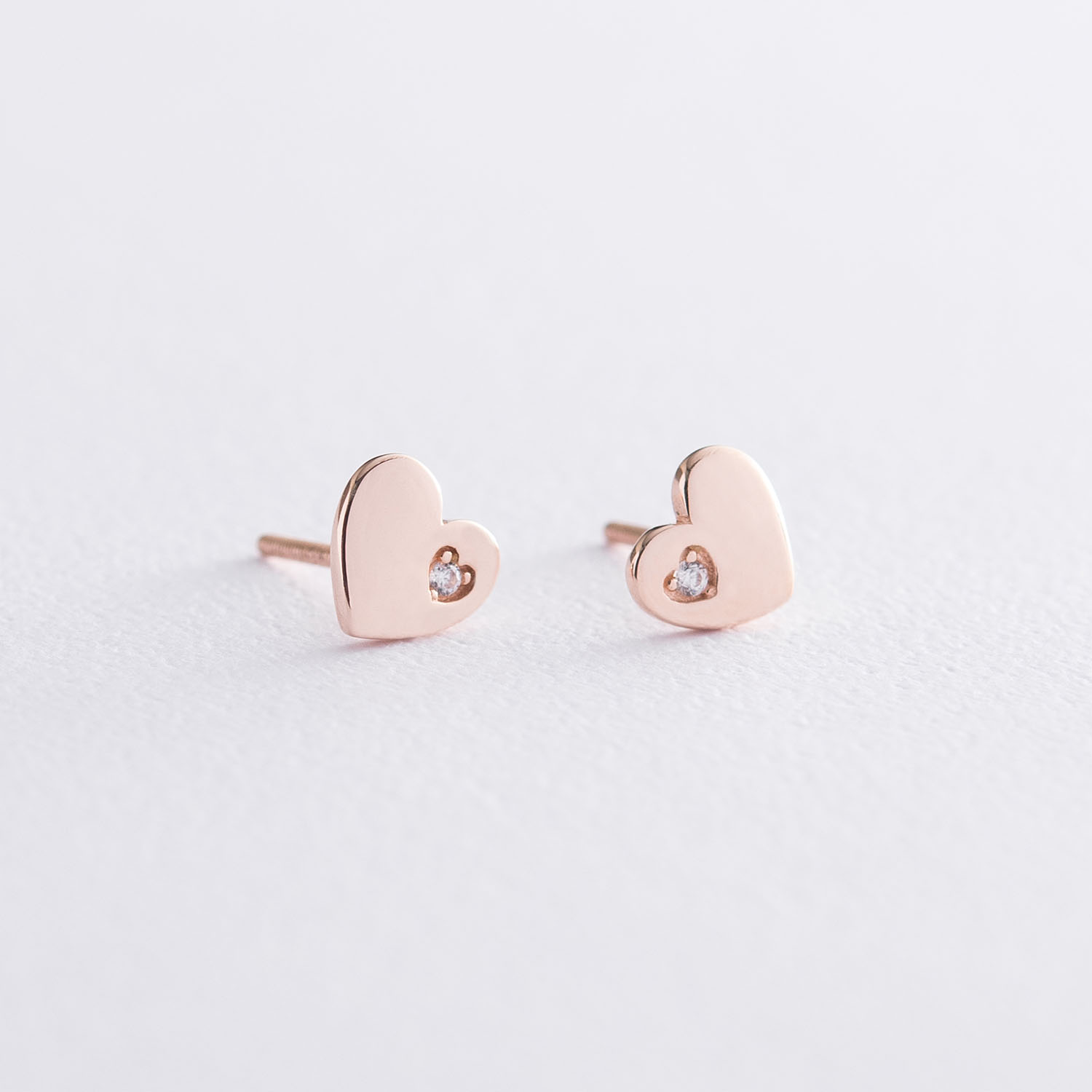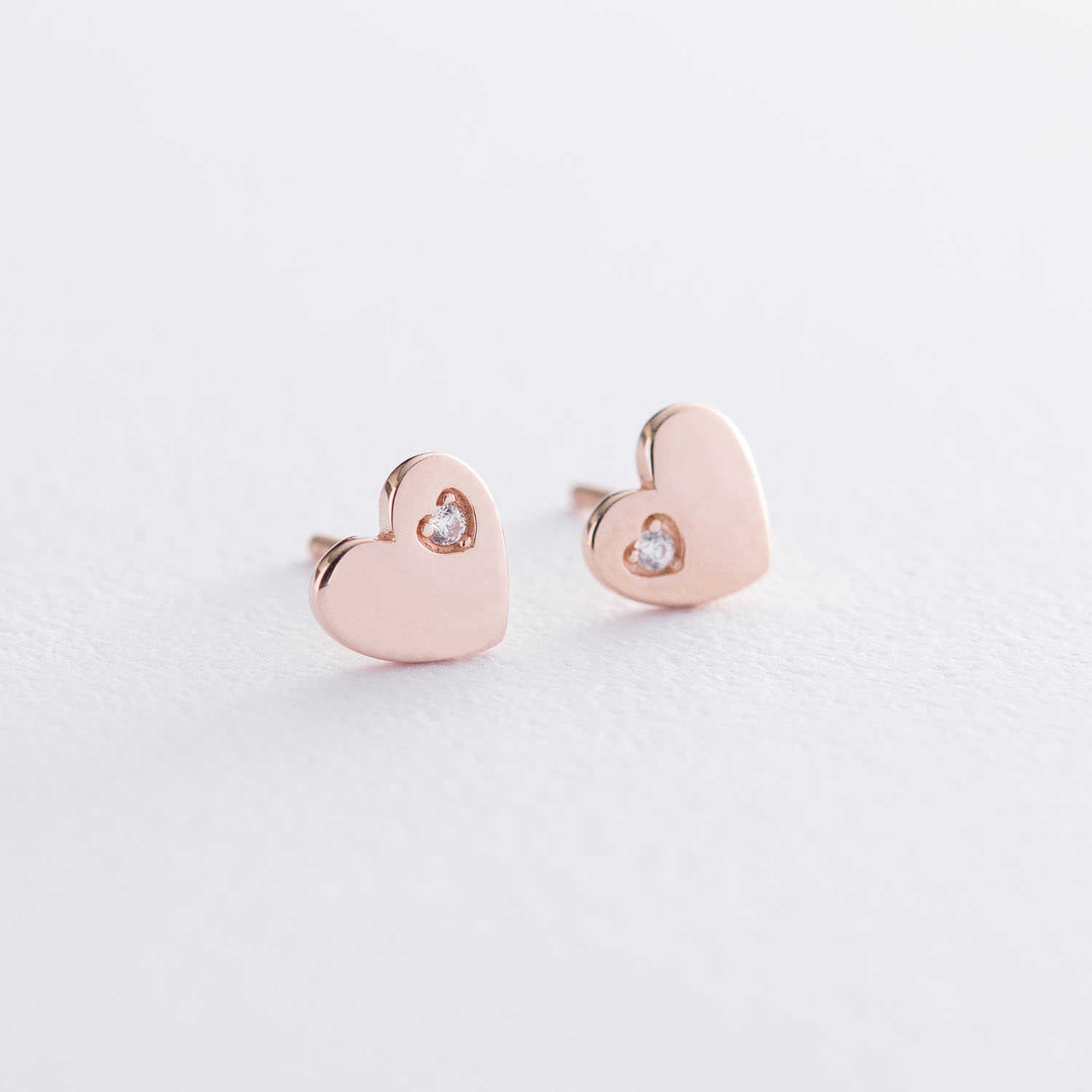 Сережки "Сердечки" в червоному золоті з фіанітами с06071