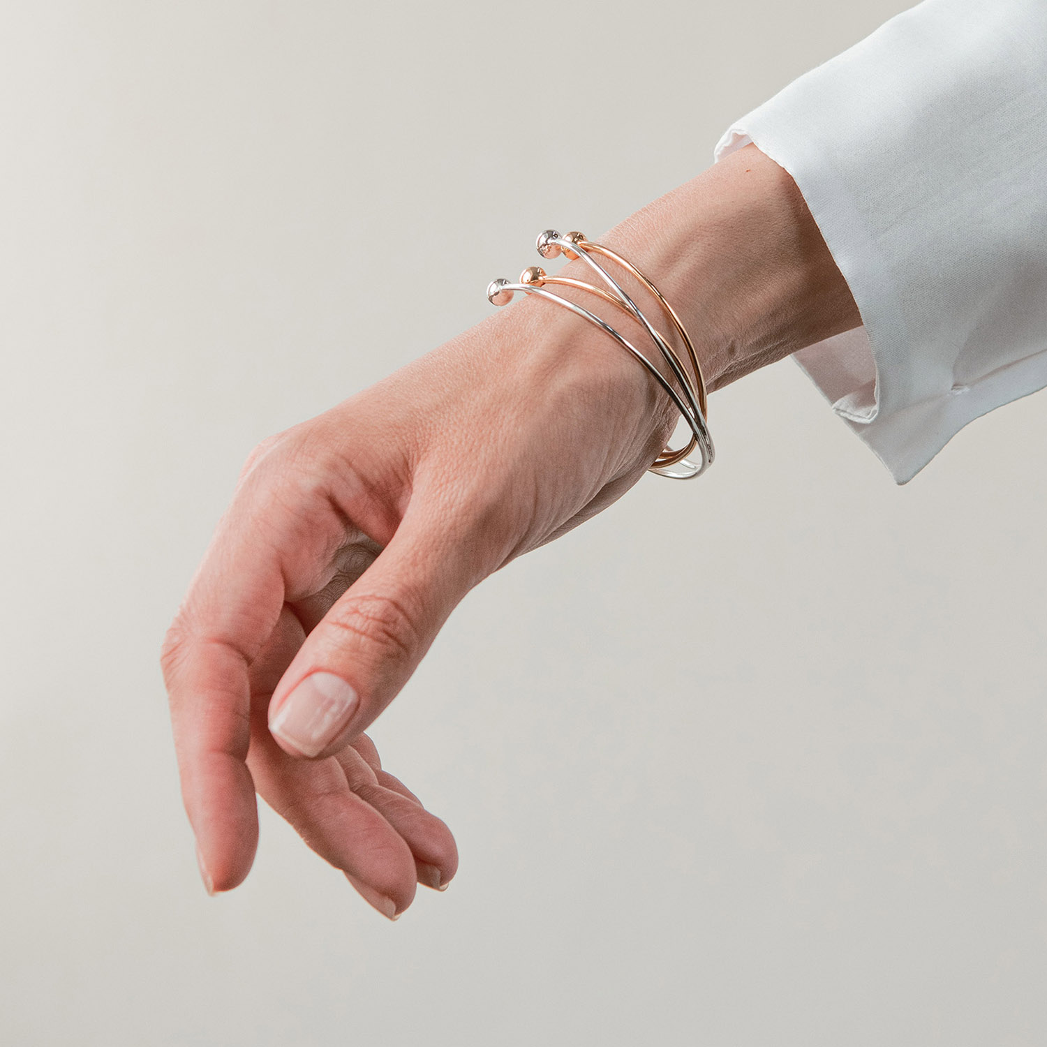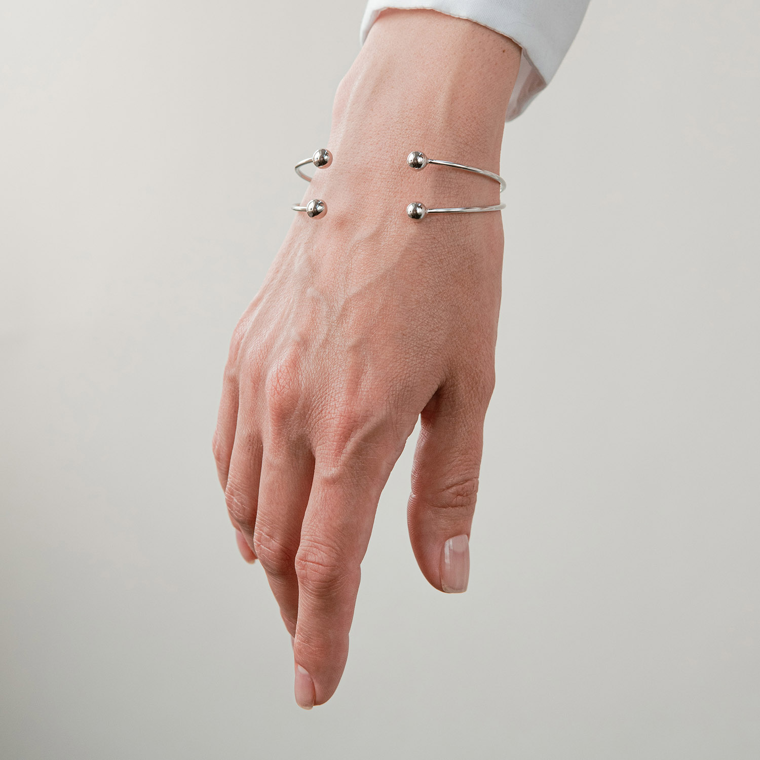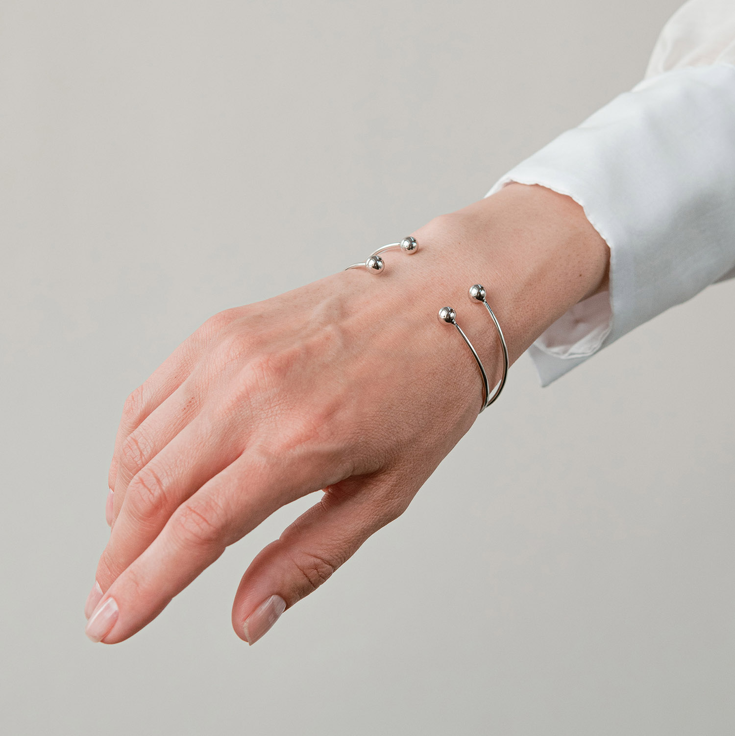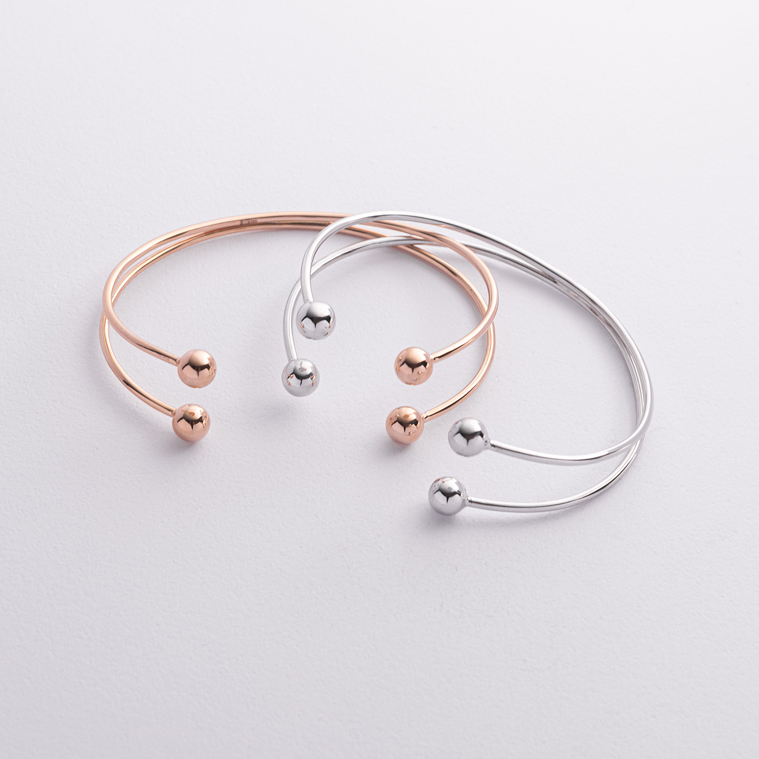 Жорсткий браслет "Кульки" (біле золото) б05580