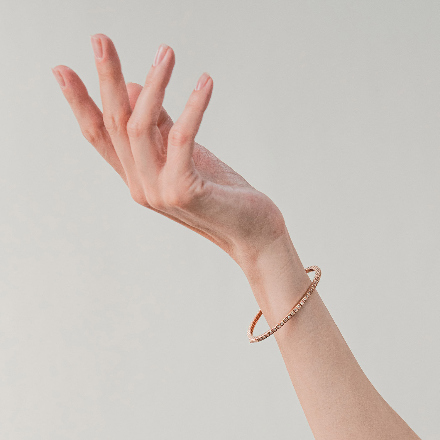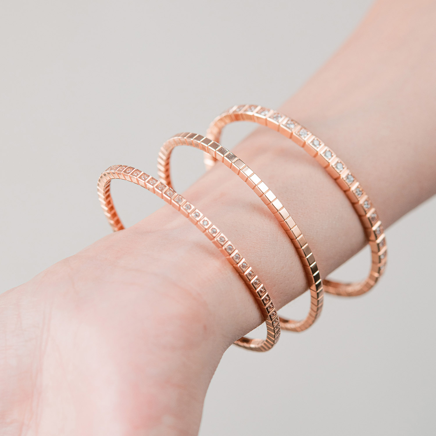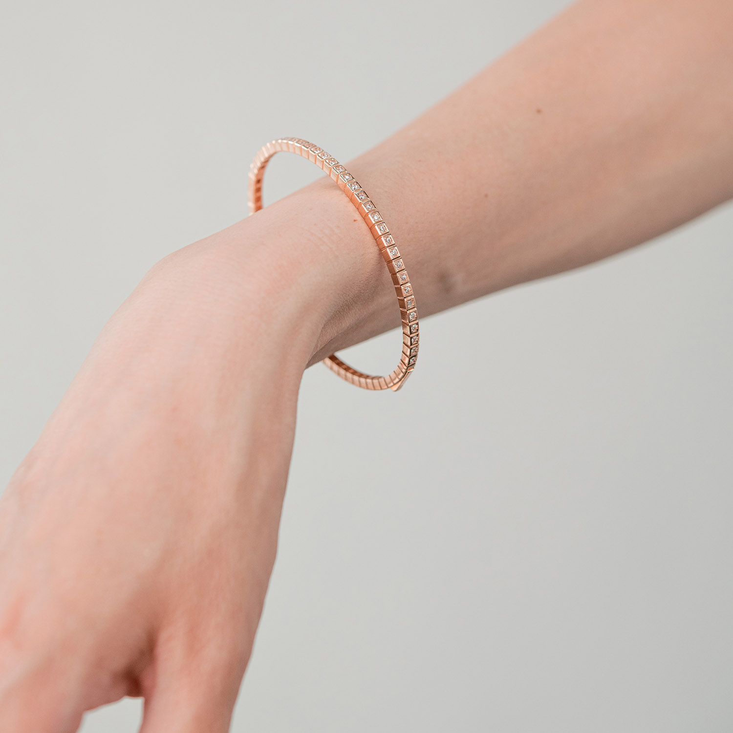Жорсткий золотий браслет "Кубики" (фіаніти) б05611