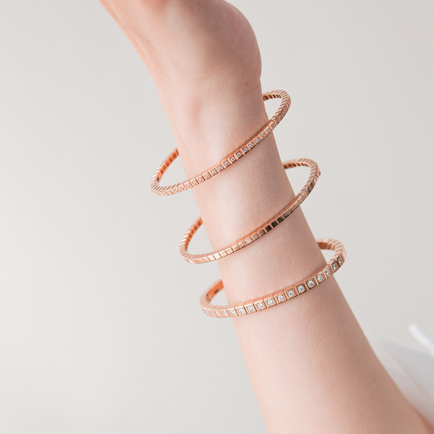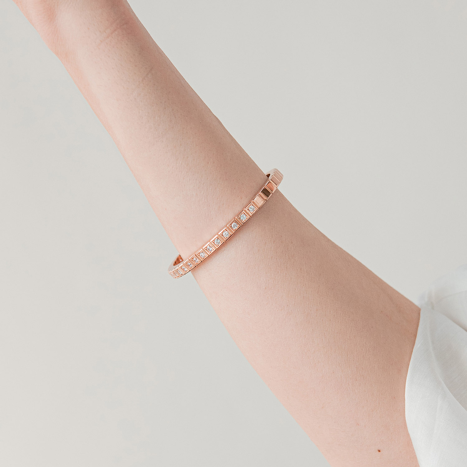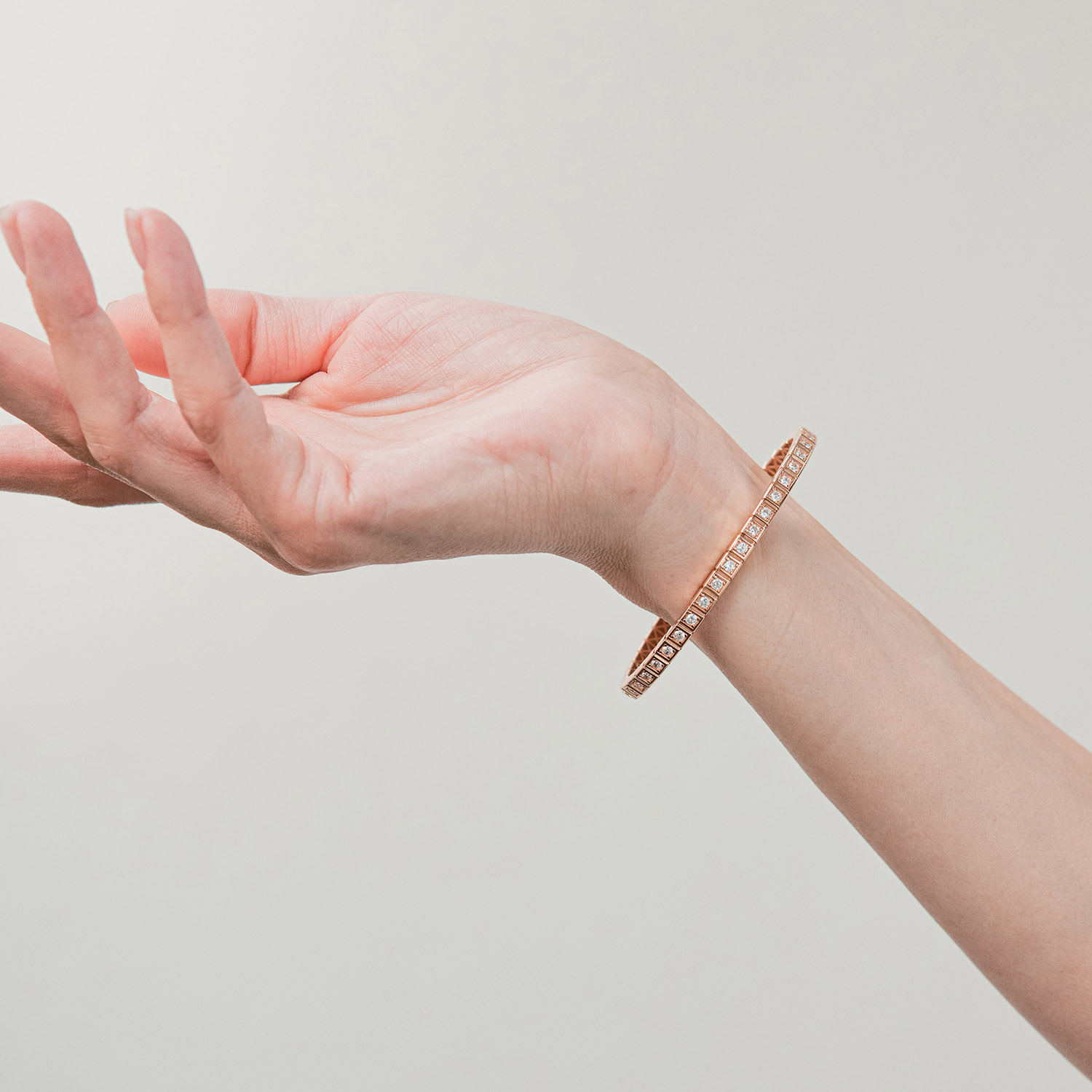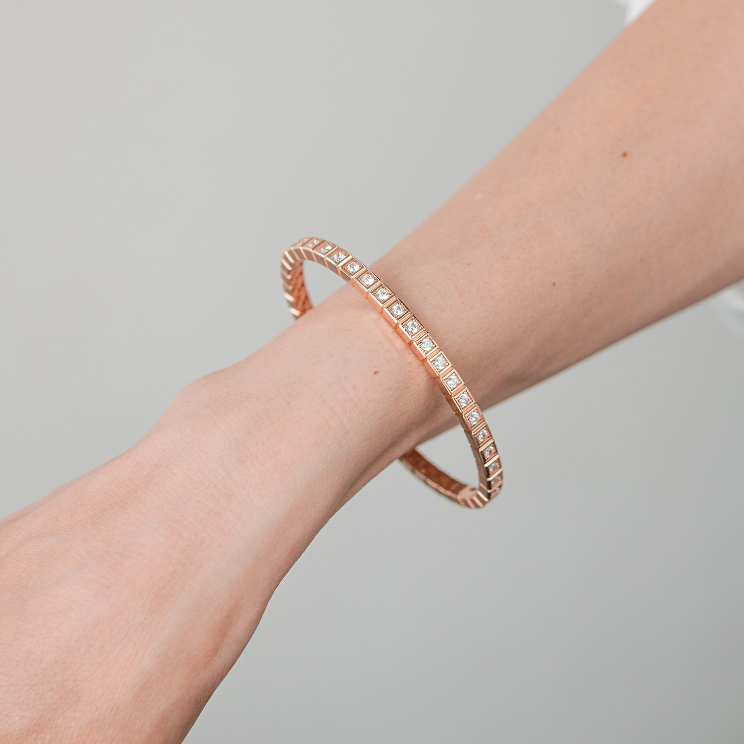 Жорсткий золотий браслет "Кубики" (фіаніти) б05616