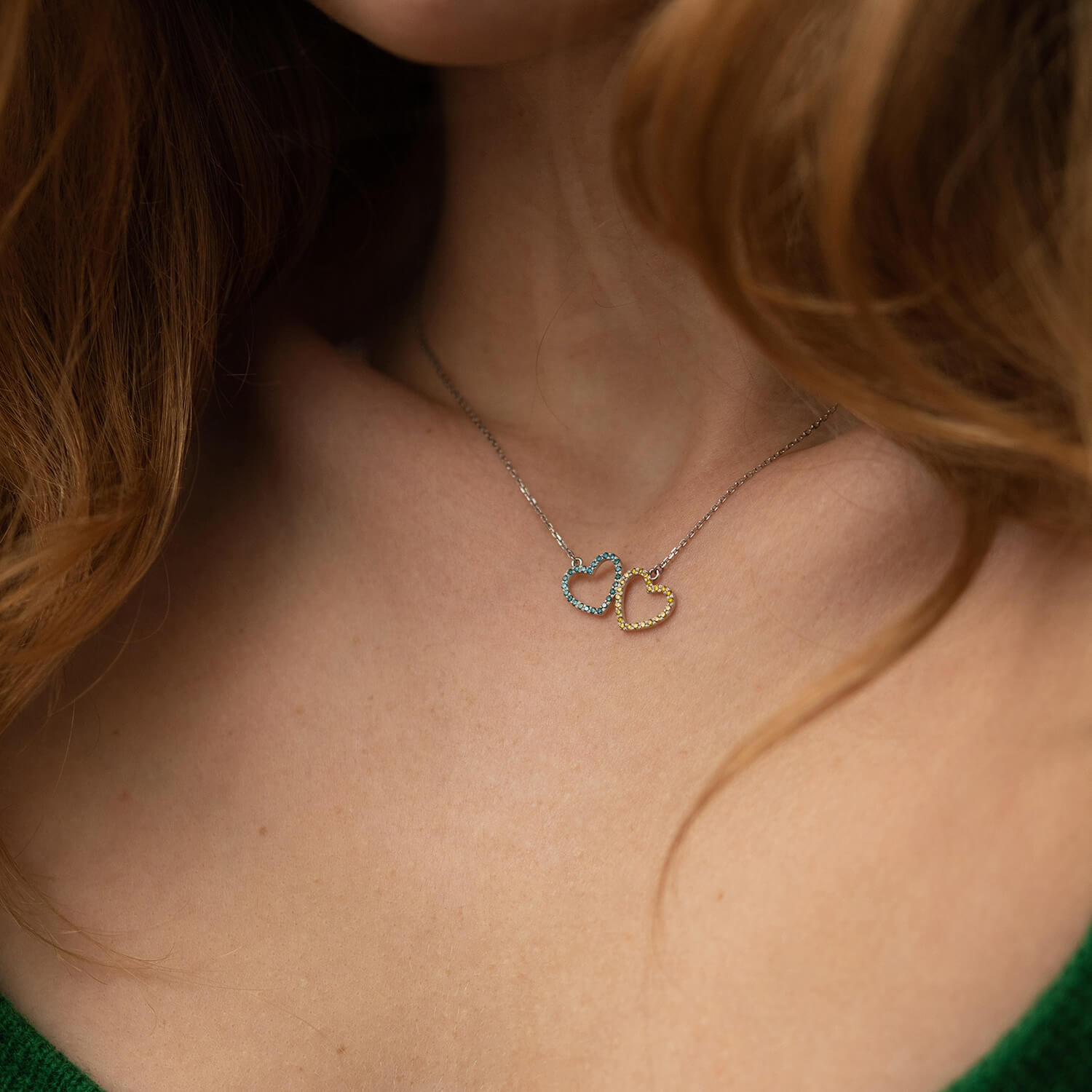 Золоте кольє "Сердечки" з блакитними та жовтими діамантами 727151121