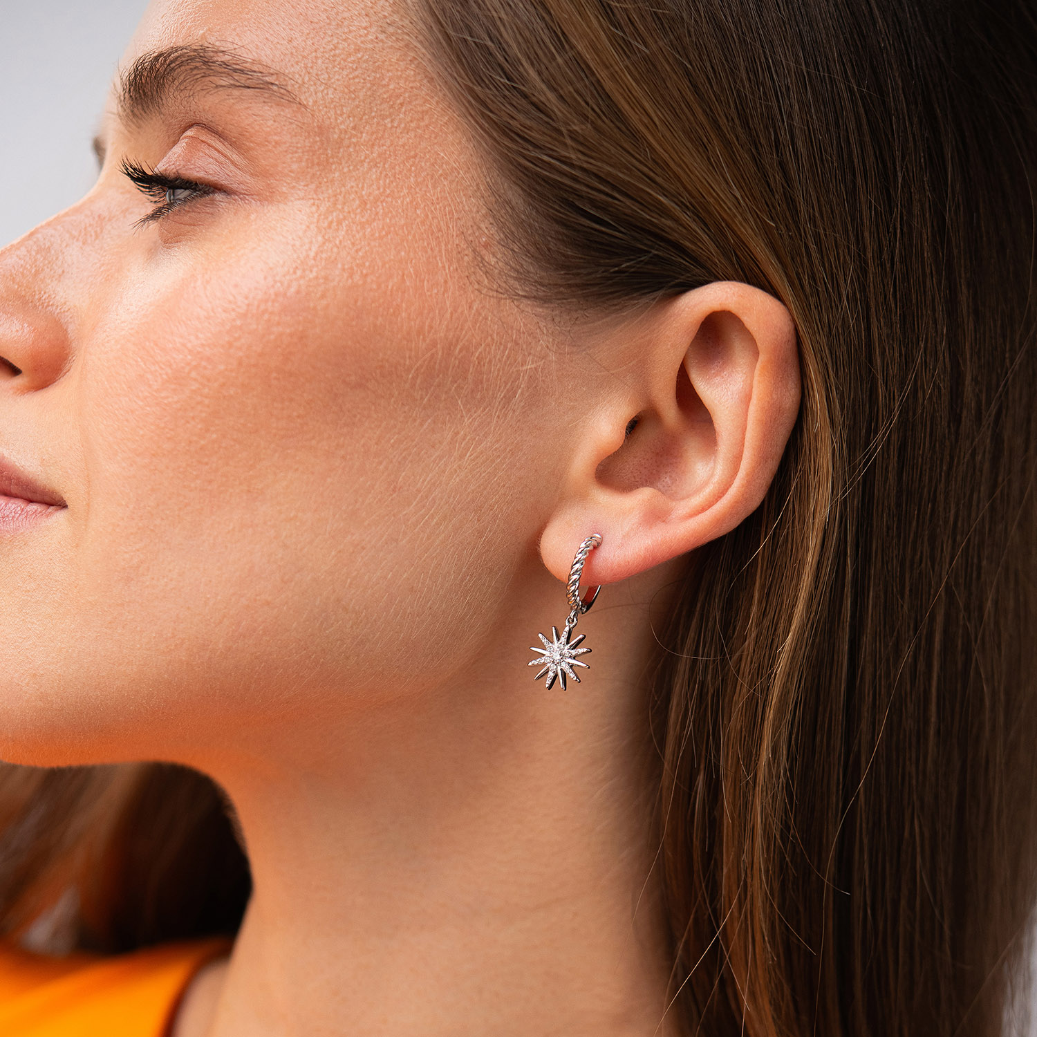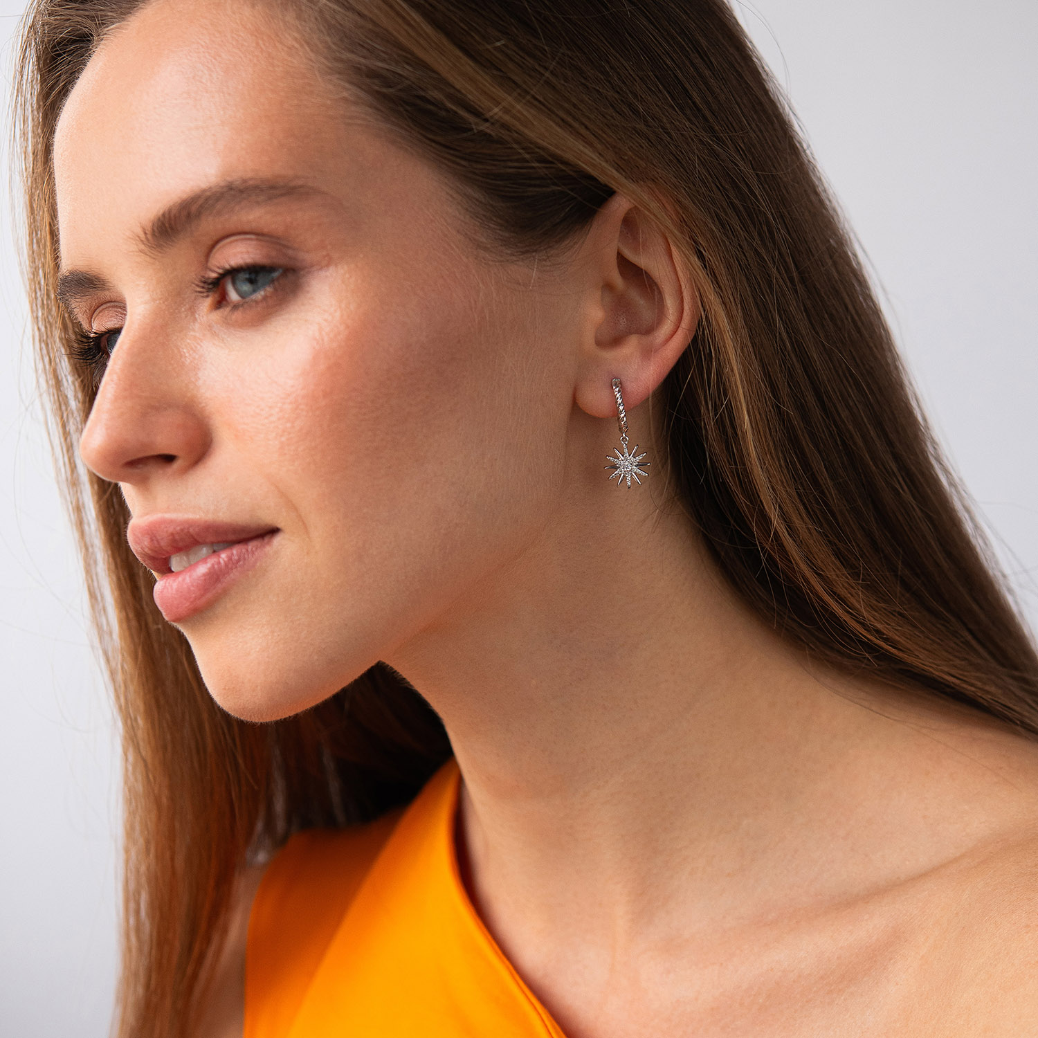 Золоті сережки "Полярна зірка" з фіанітами с09530