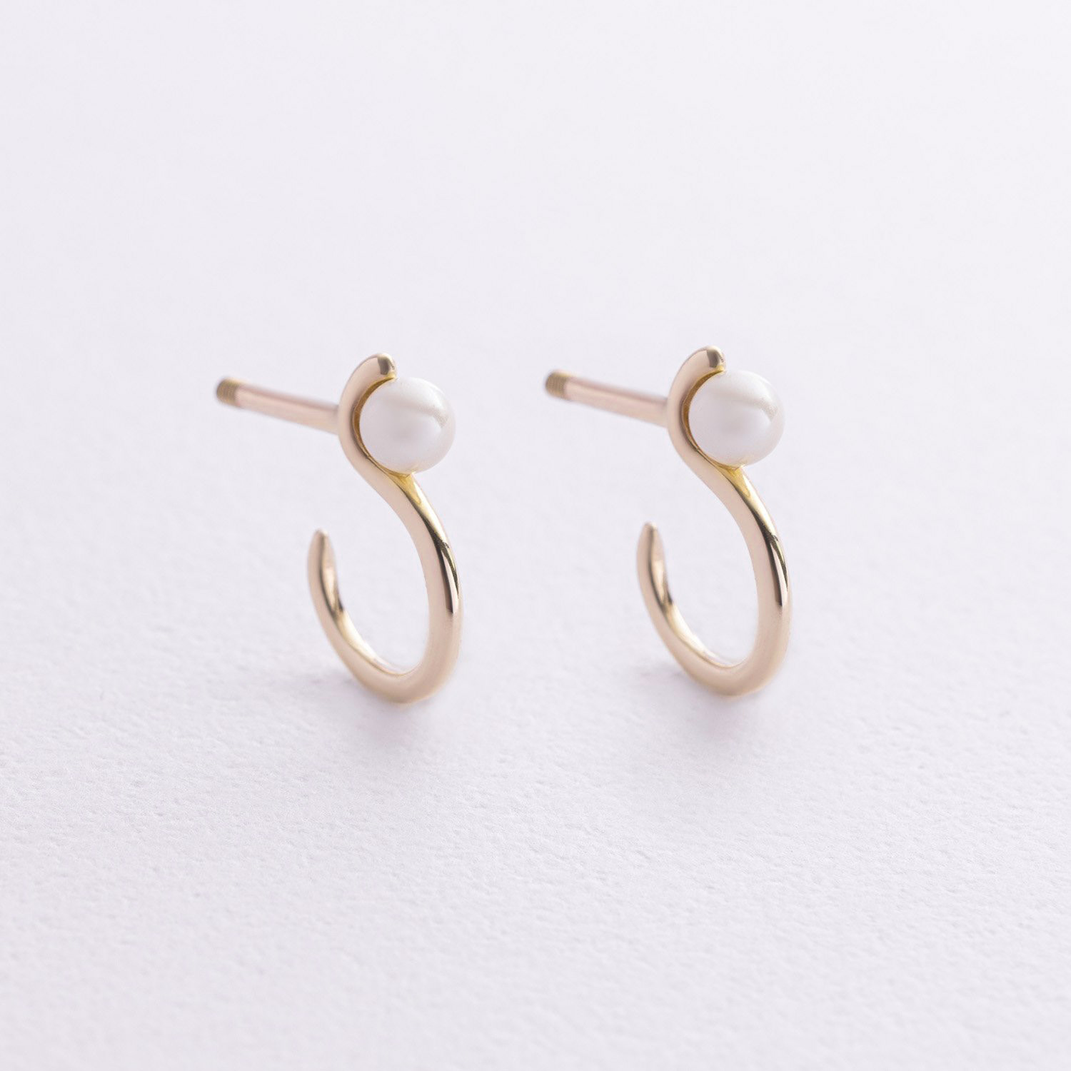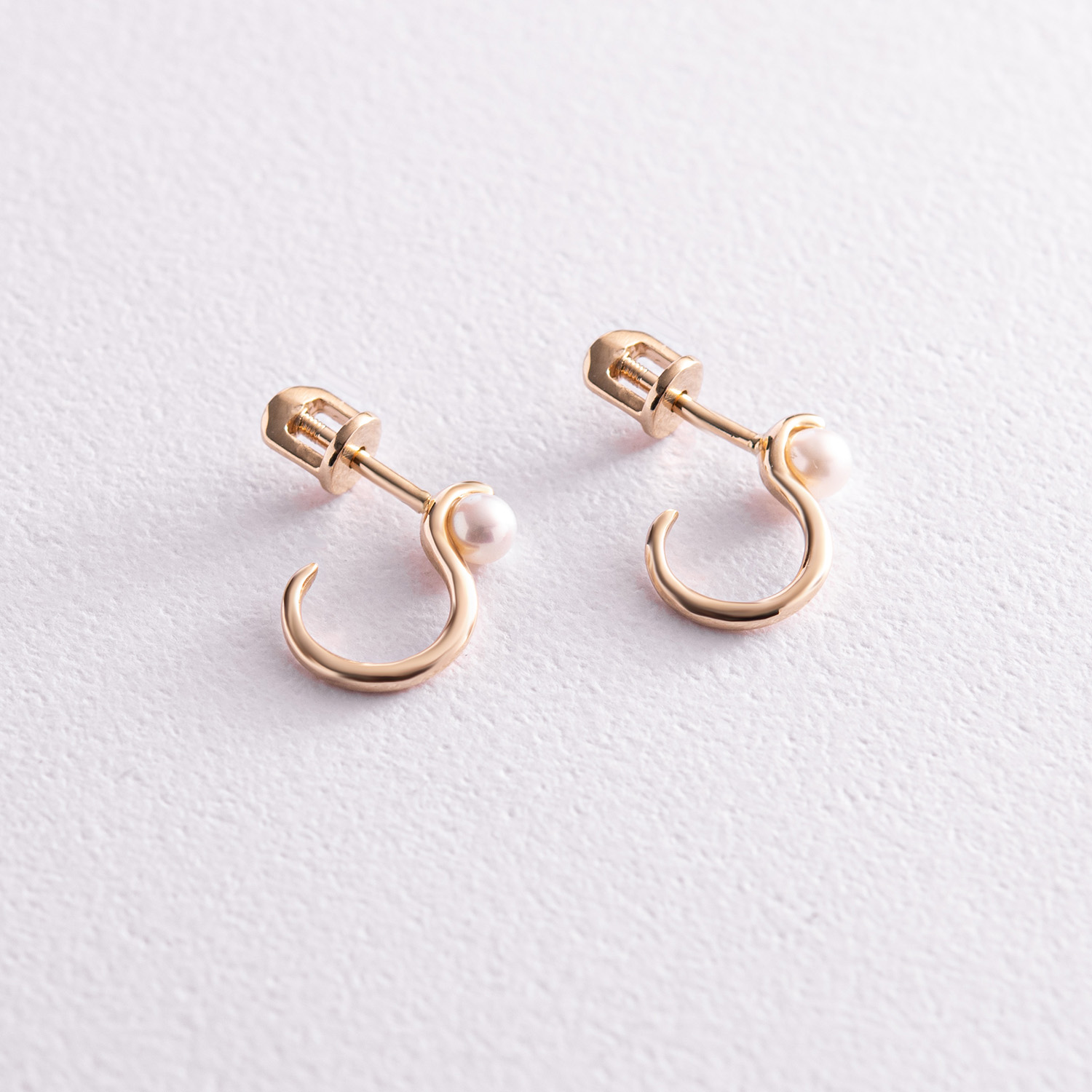 Золоті сережки - пусети "Міранда" з перлами с07863