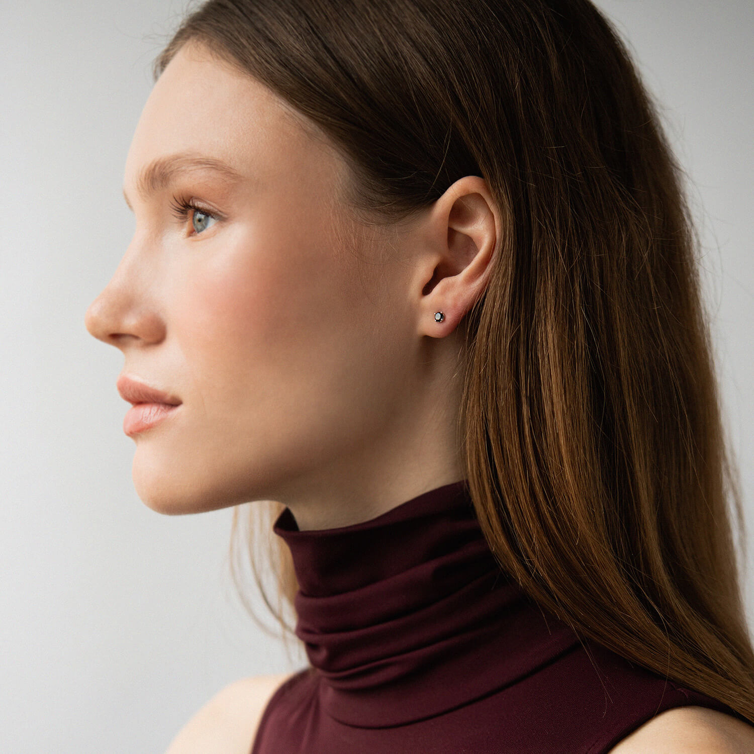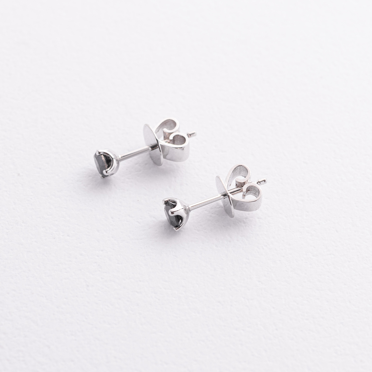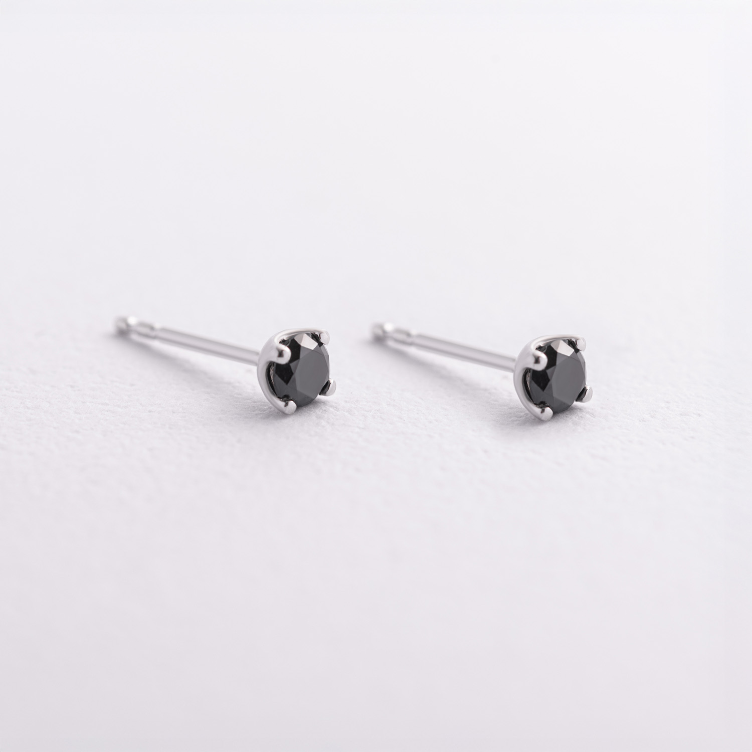 Золоті сережки - пусети з чорними діамантами сб0443y