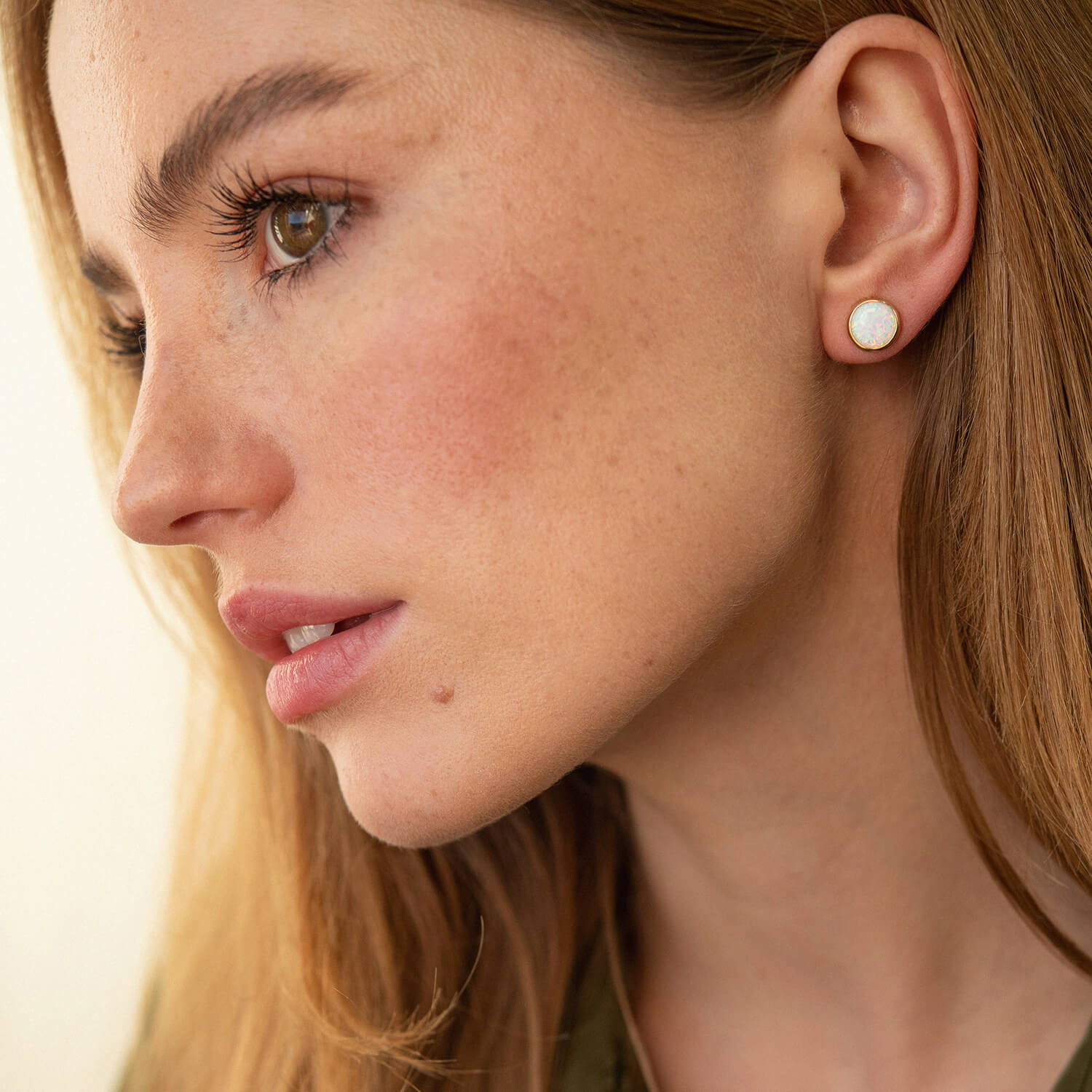 Золоті сережки-пусети "Сяйво" (синт. опал) 9 мм с07438