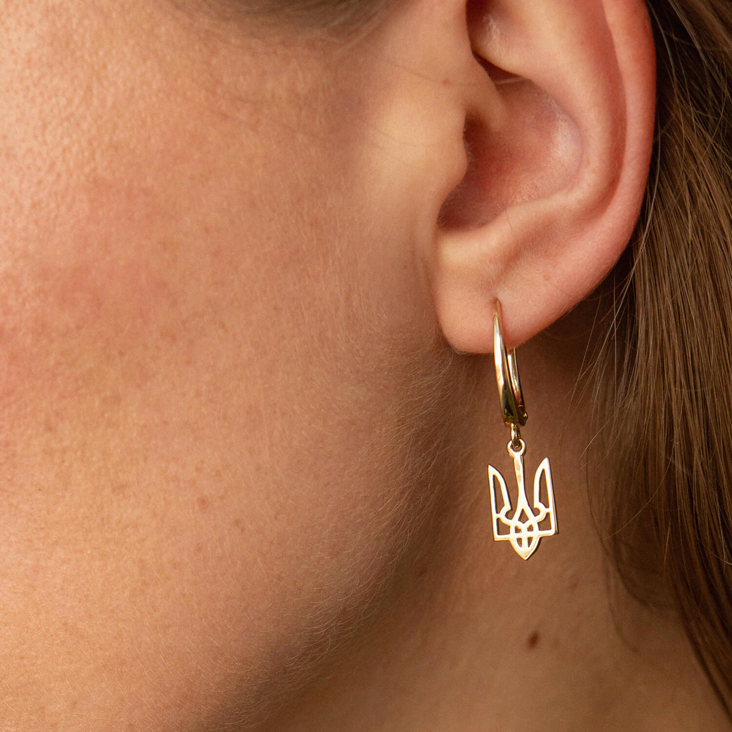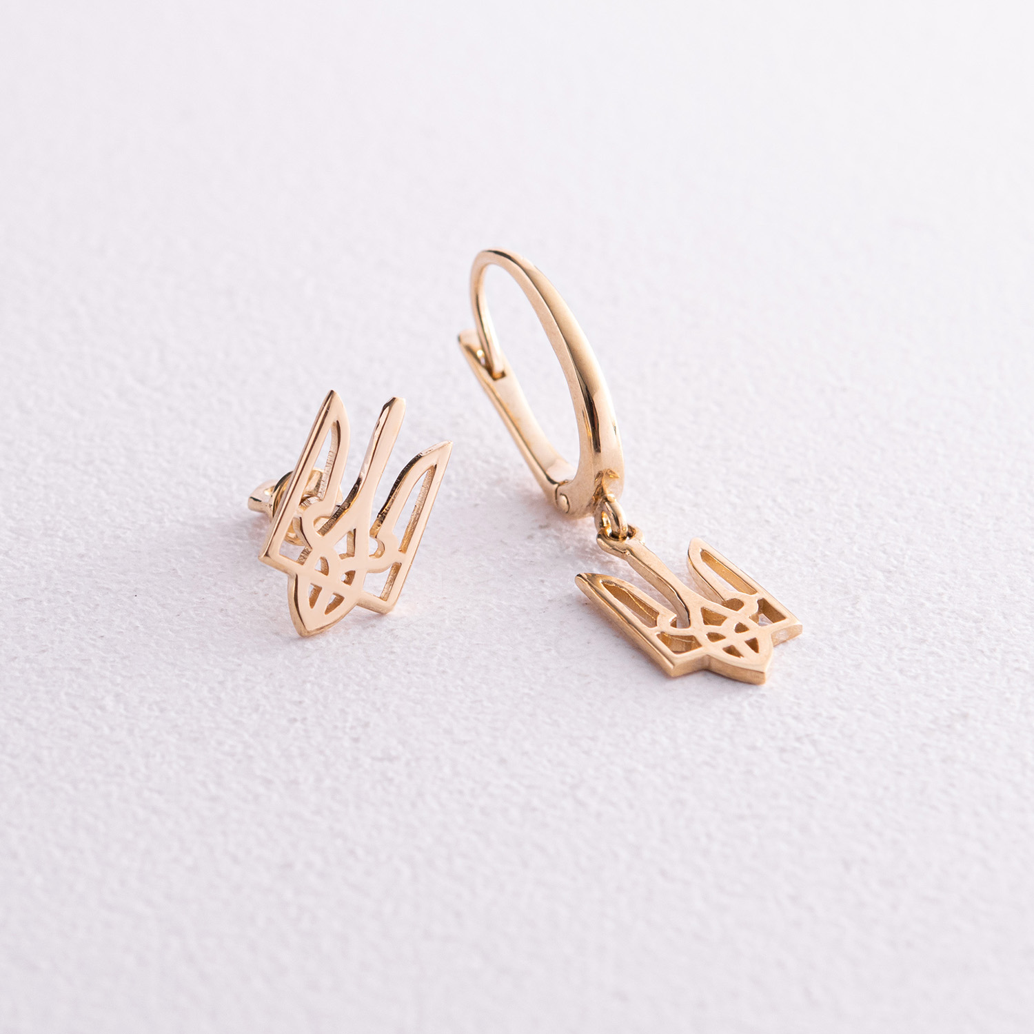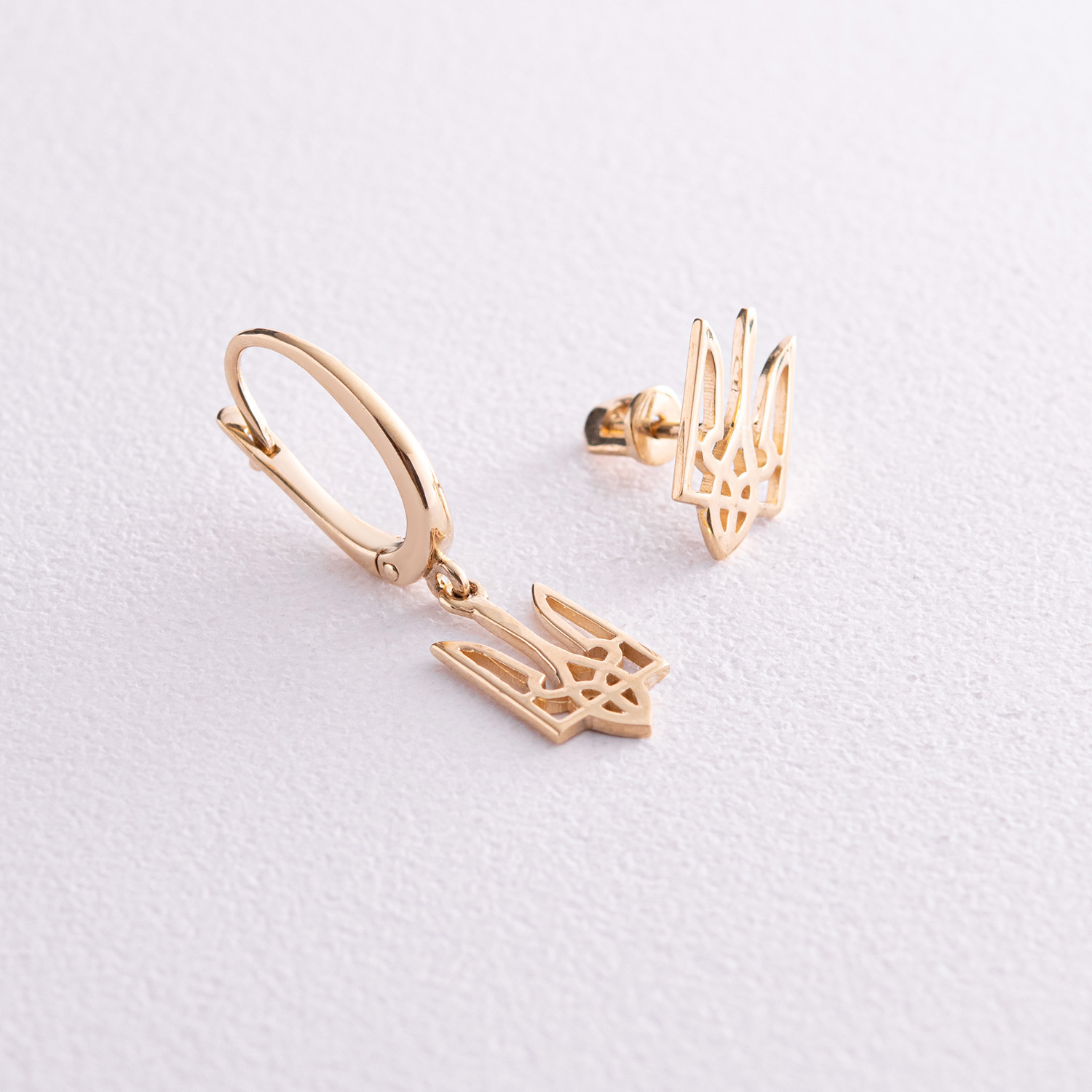 Асимметричные серьги "Герб Украины - Тризуб" (желтое золото) с08694
