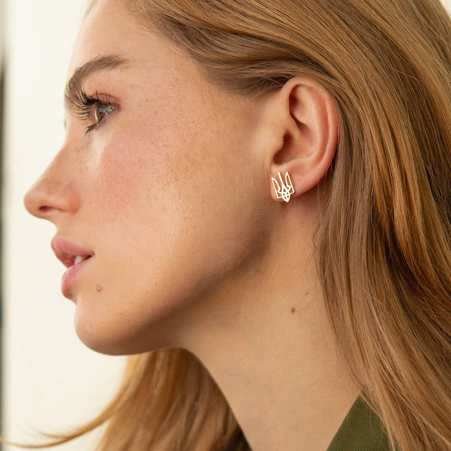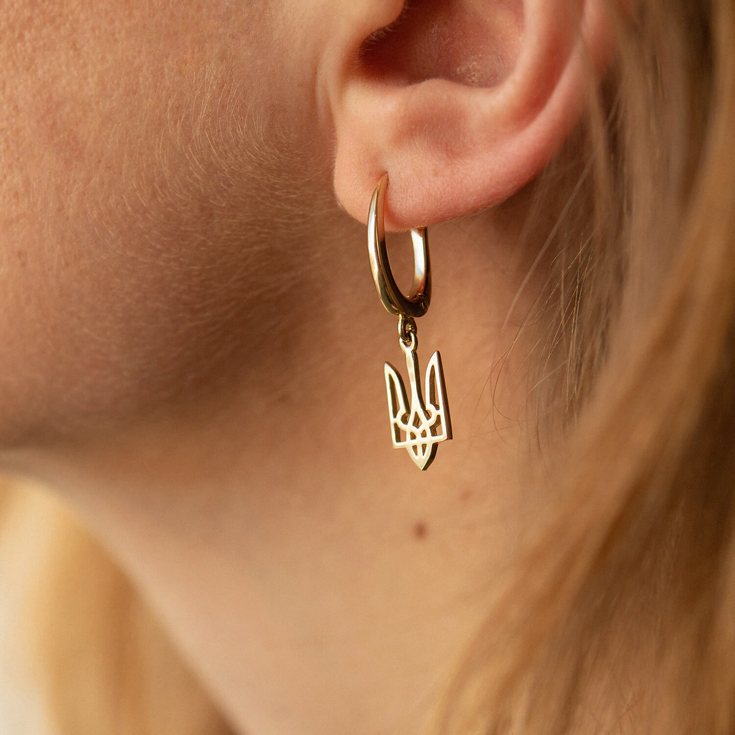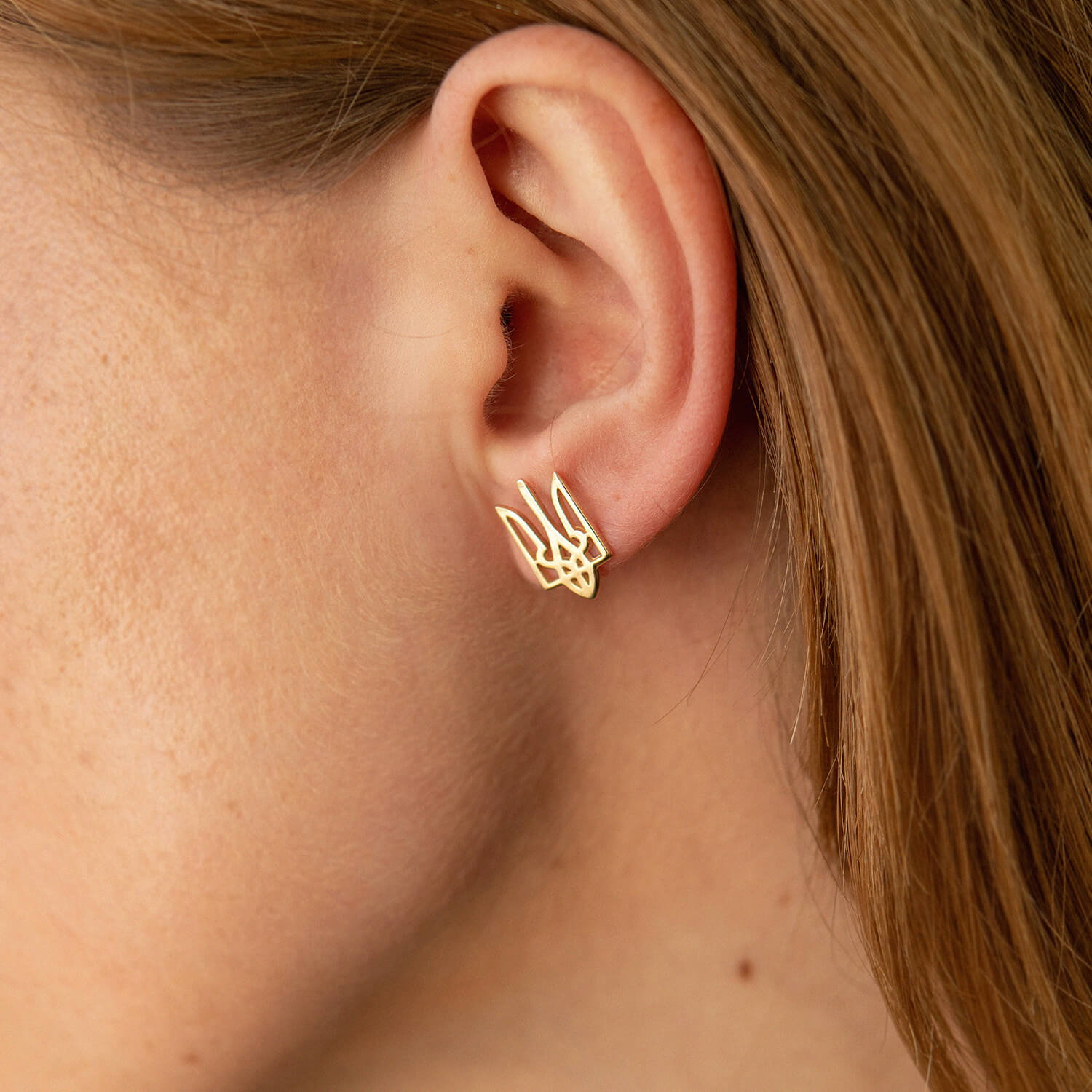 Асимметричные серьги "Герб Украины - Тризуб" (желтое золото) с08694