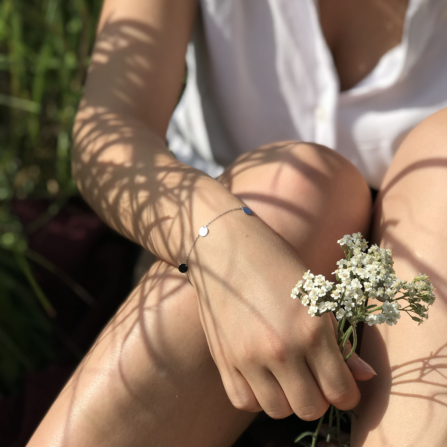 Браслет с монетами в белом золоте б04145