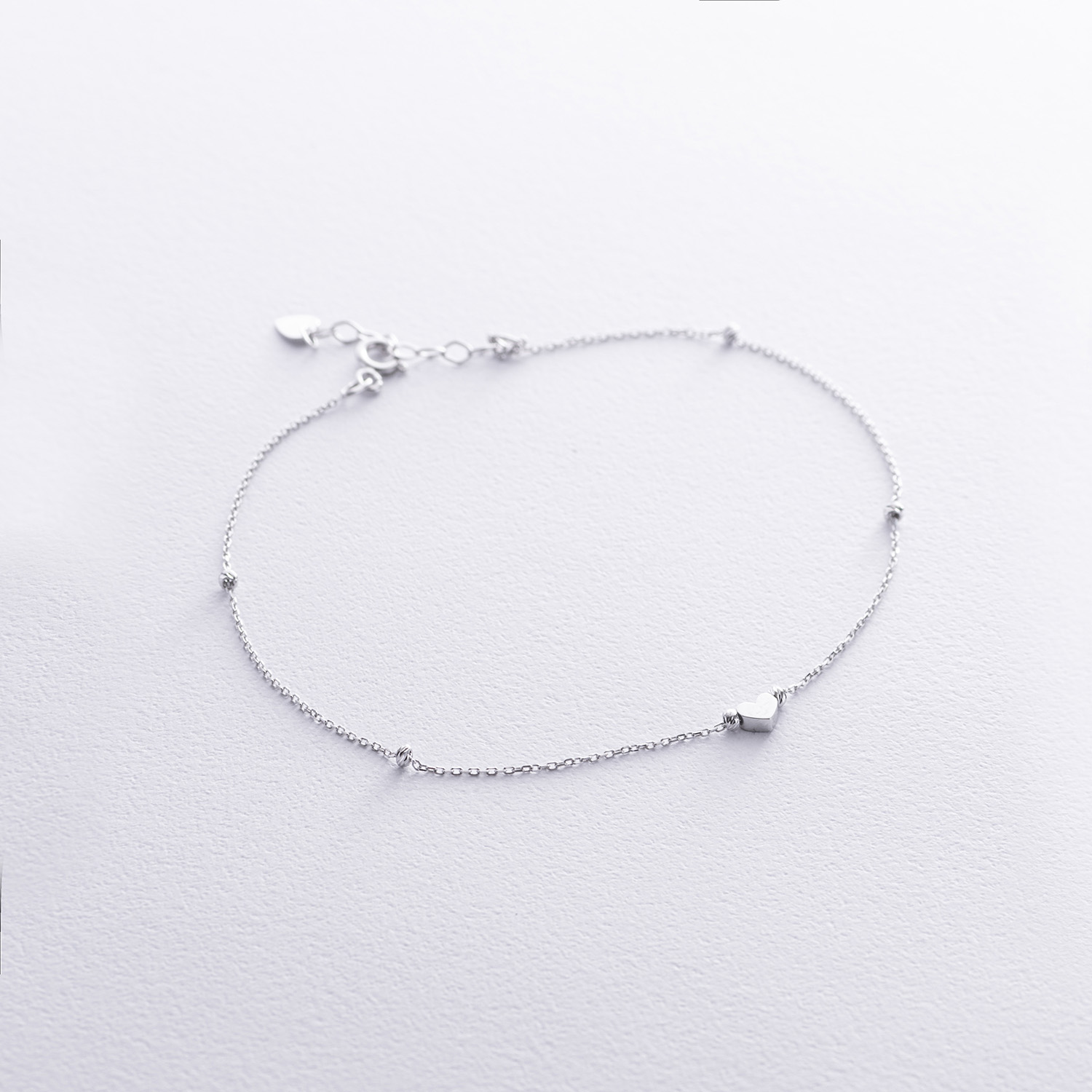Браслет на ногу "Сердечко" в белом золоте б05346