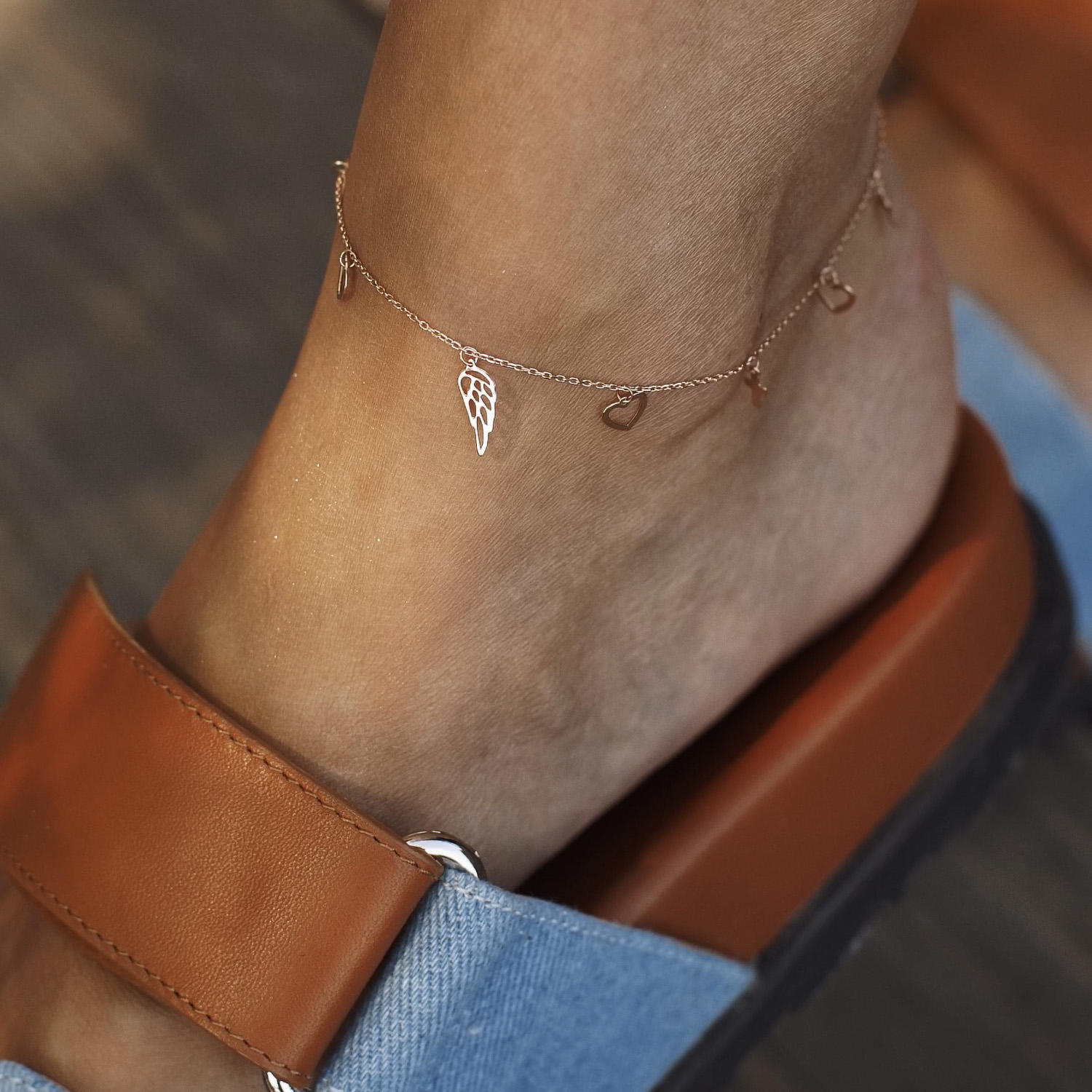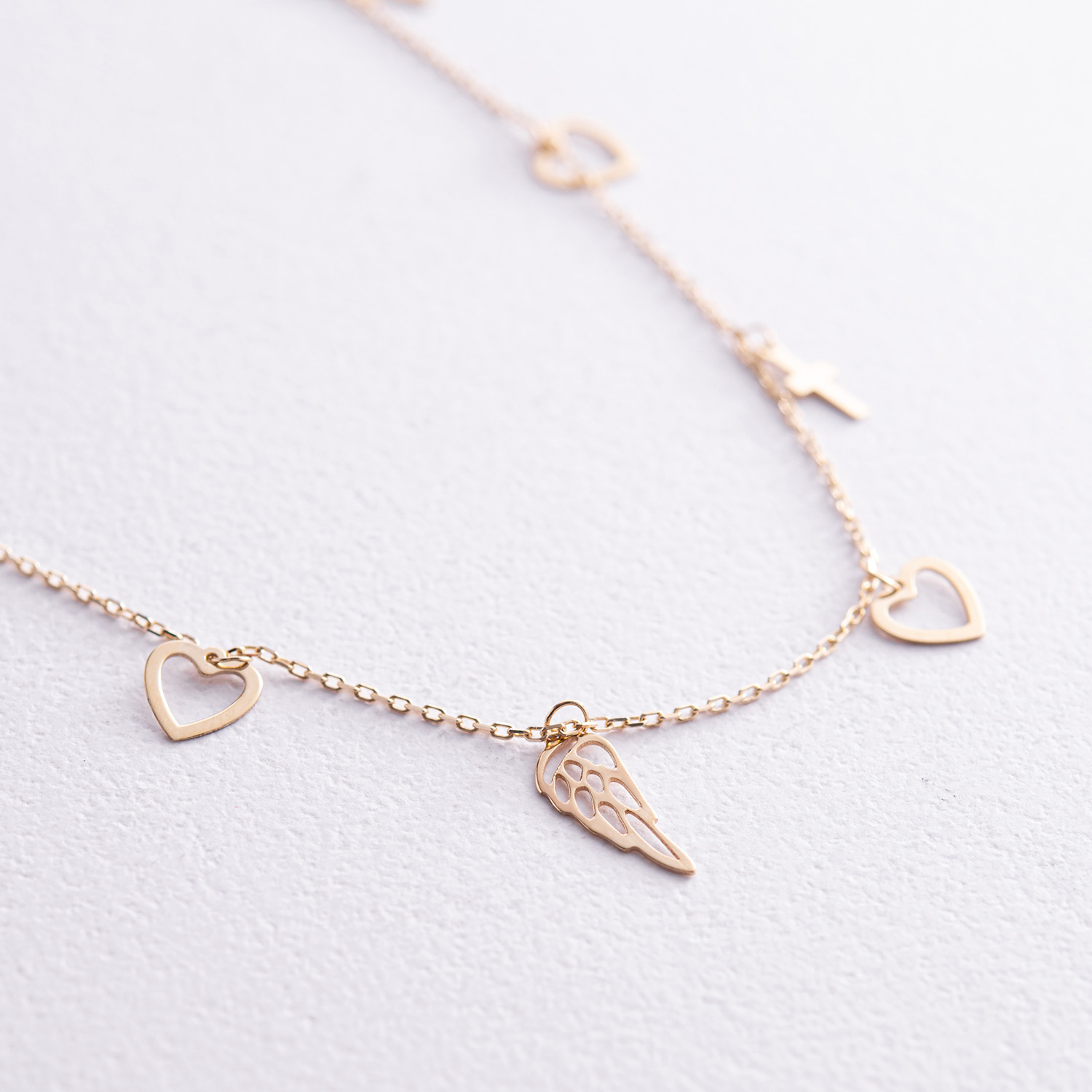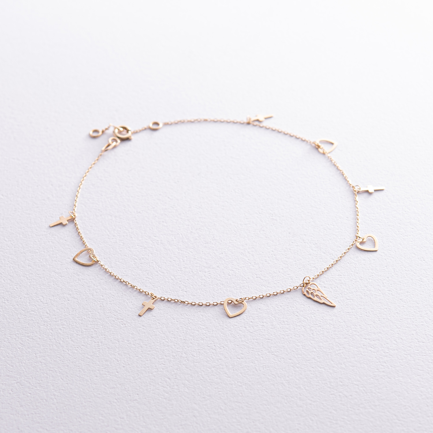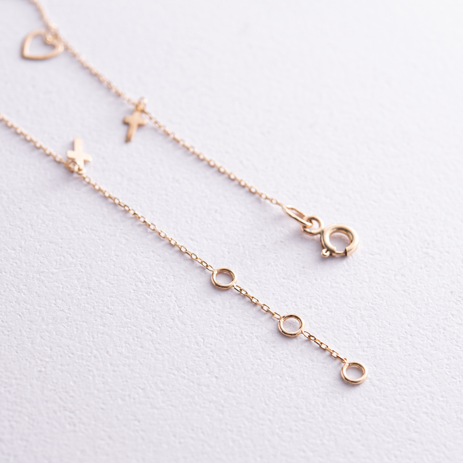 Браслет "Сердечки и крестики" на ногу (желтое золото) б05124