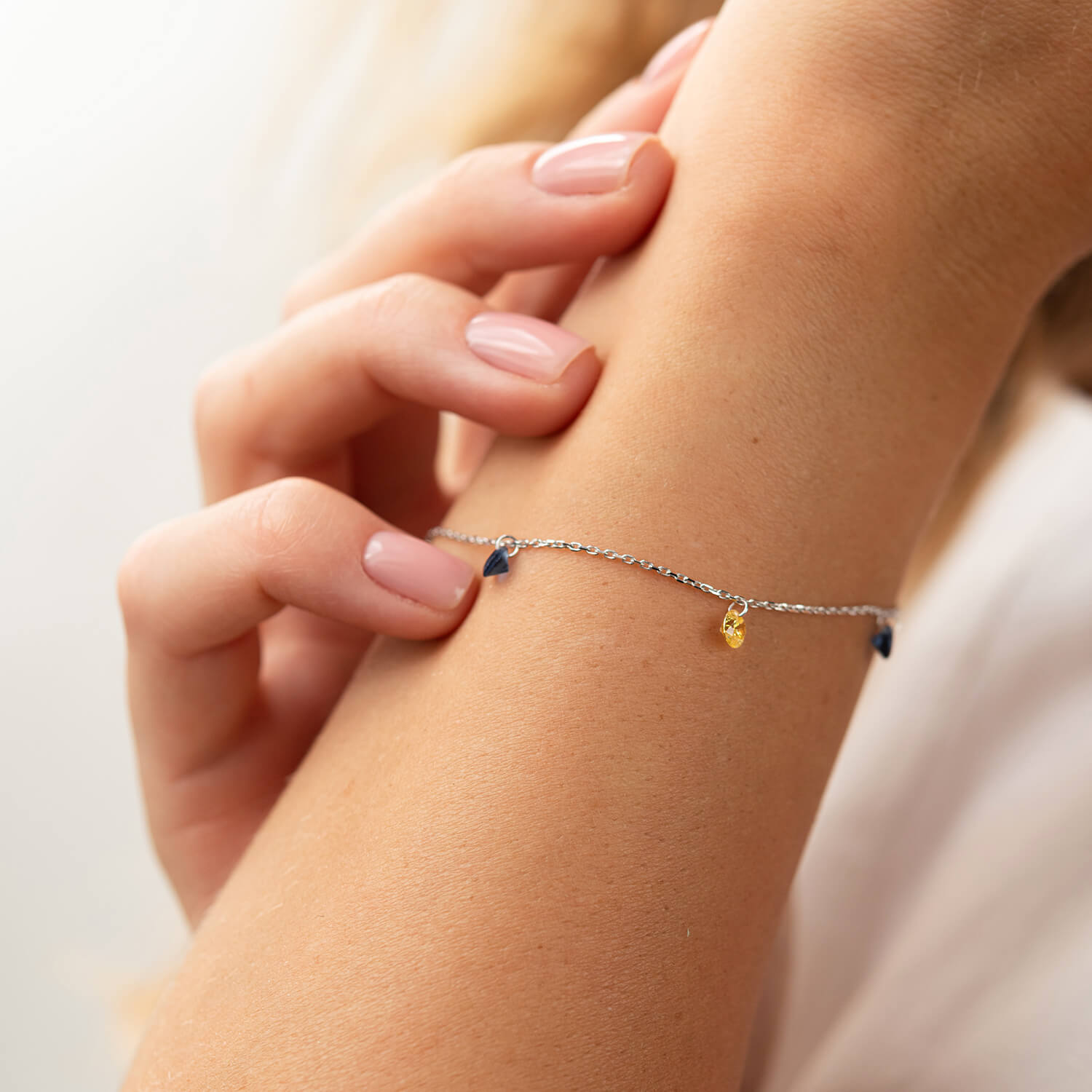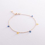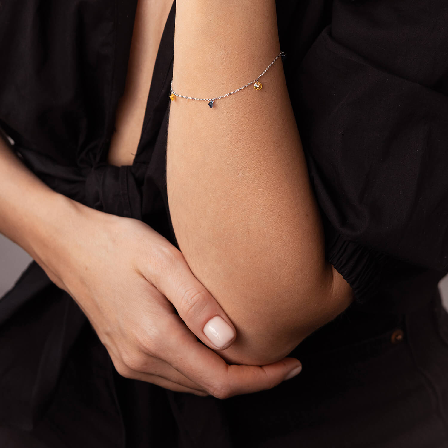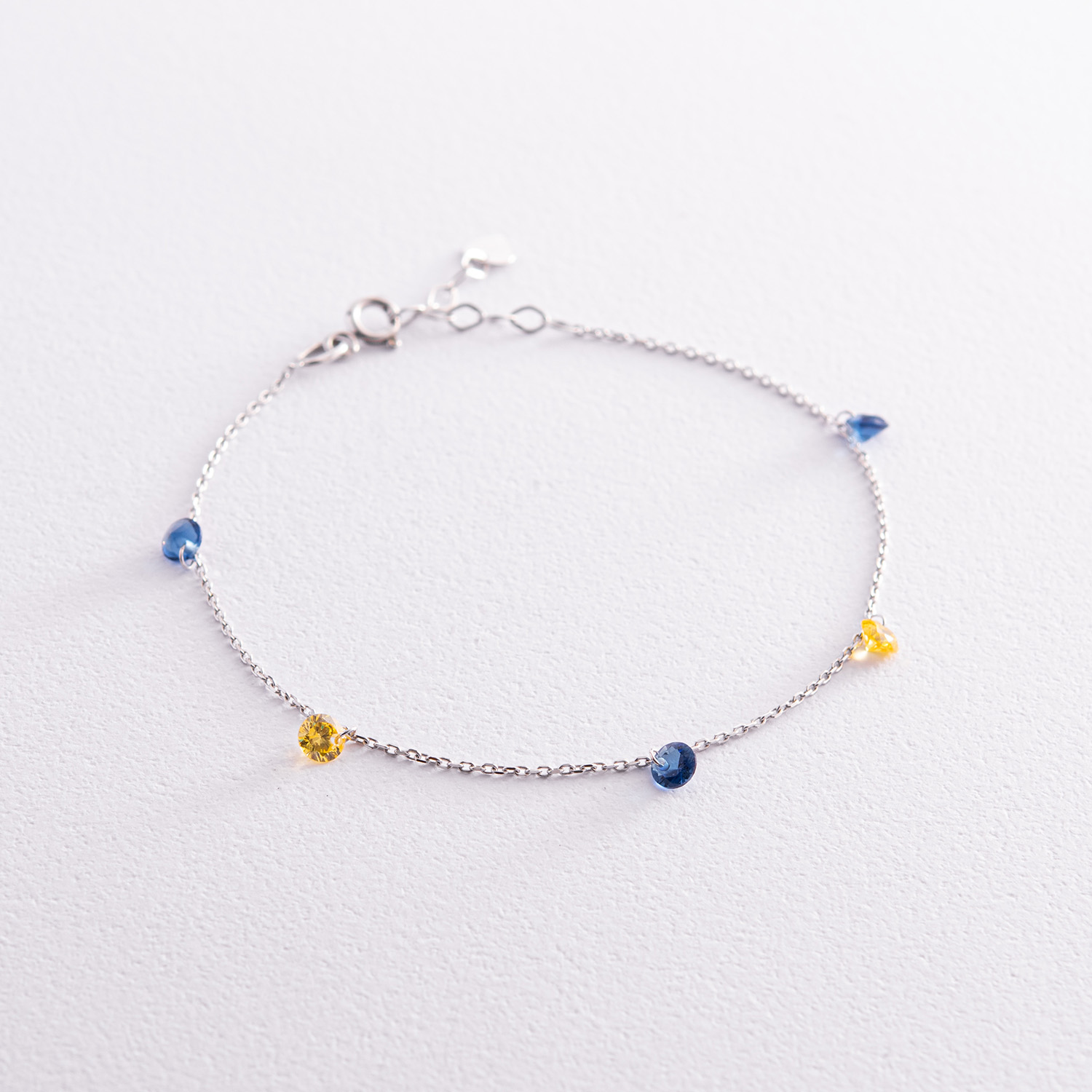Браслет "Украинка" в белом золоте (синие и желтые фианиты) б05119