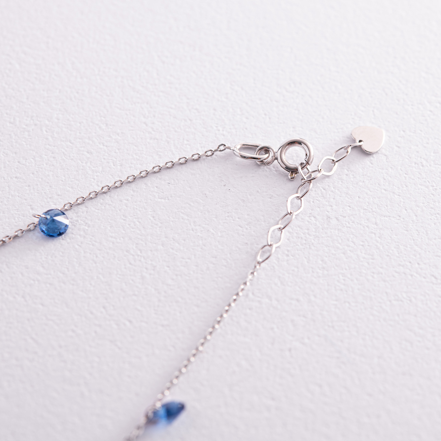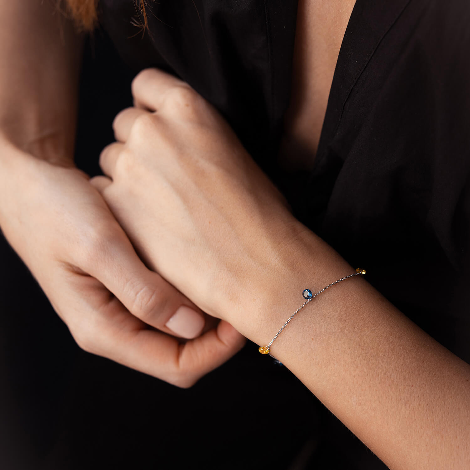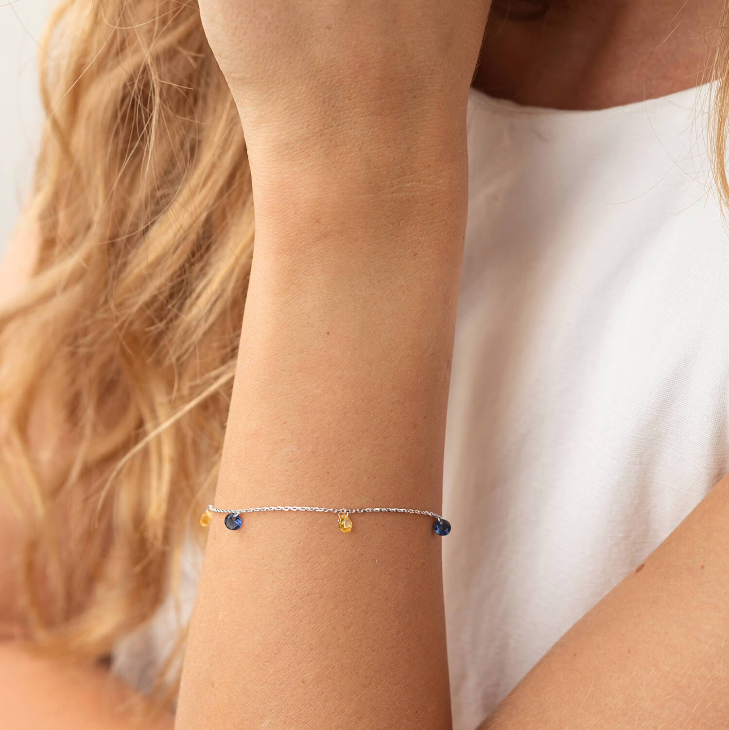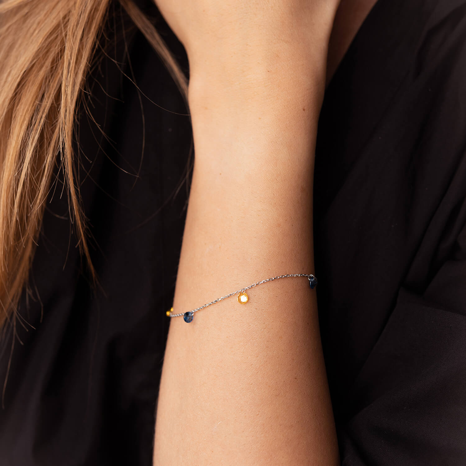 Браслет "Украинка" в белом золоте (синие и желтые фианиты) б05119