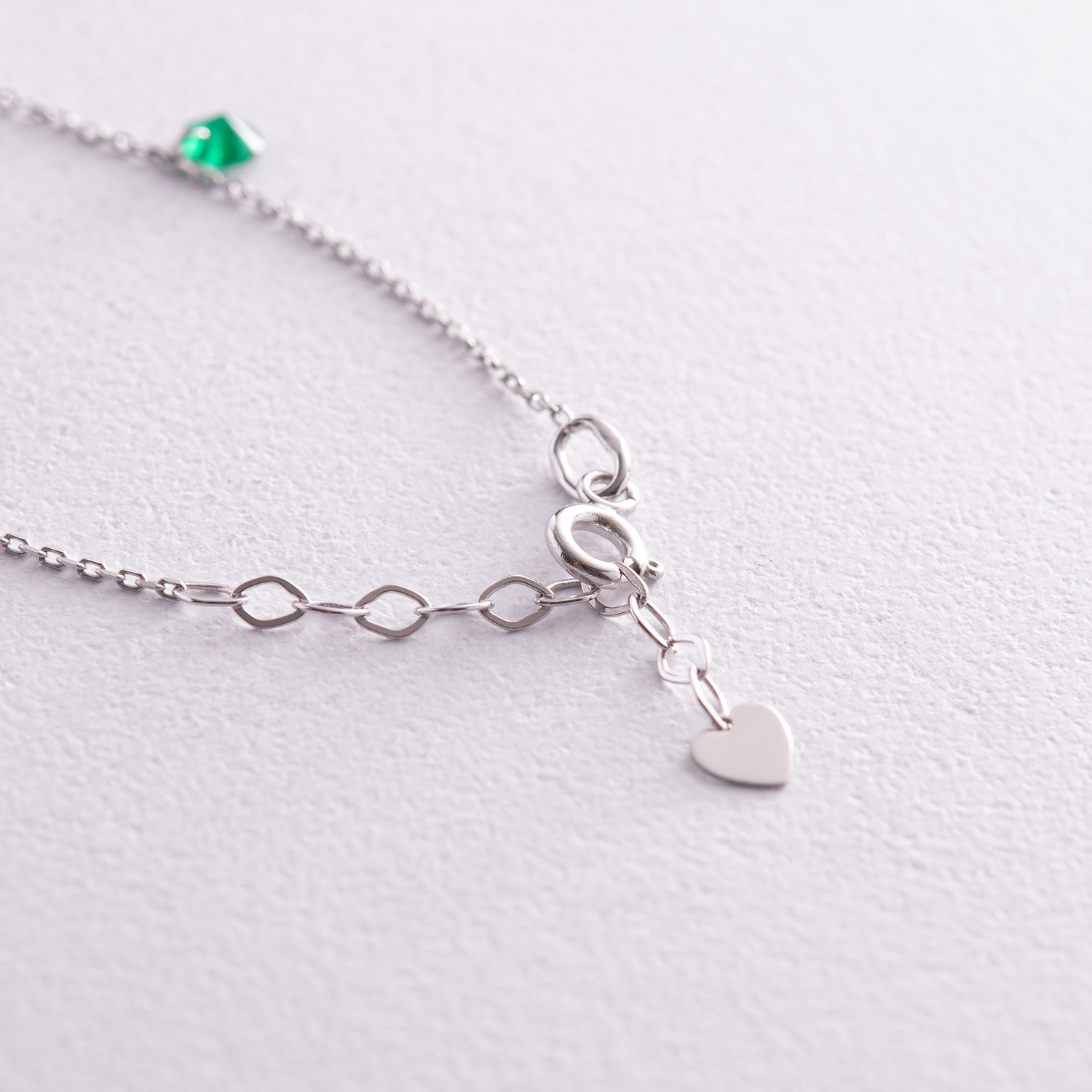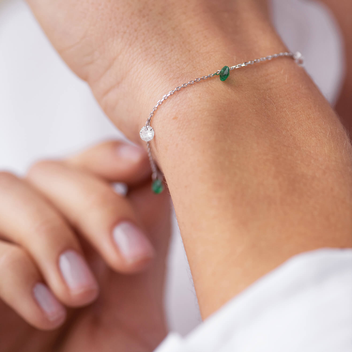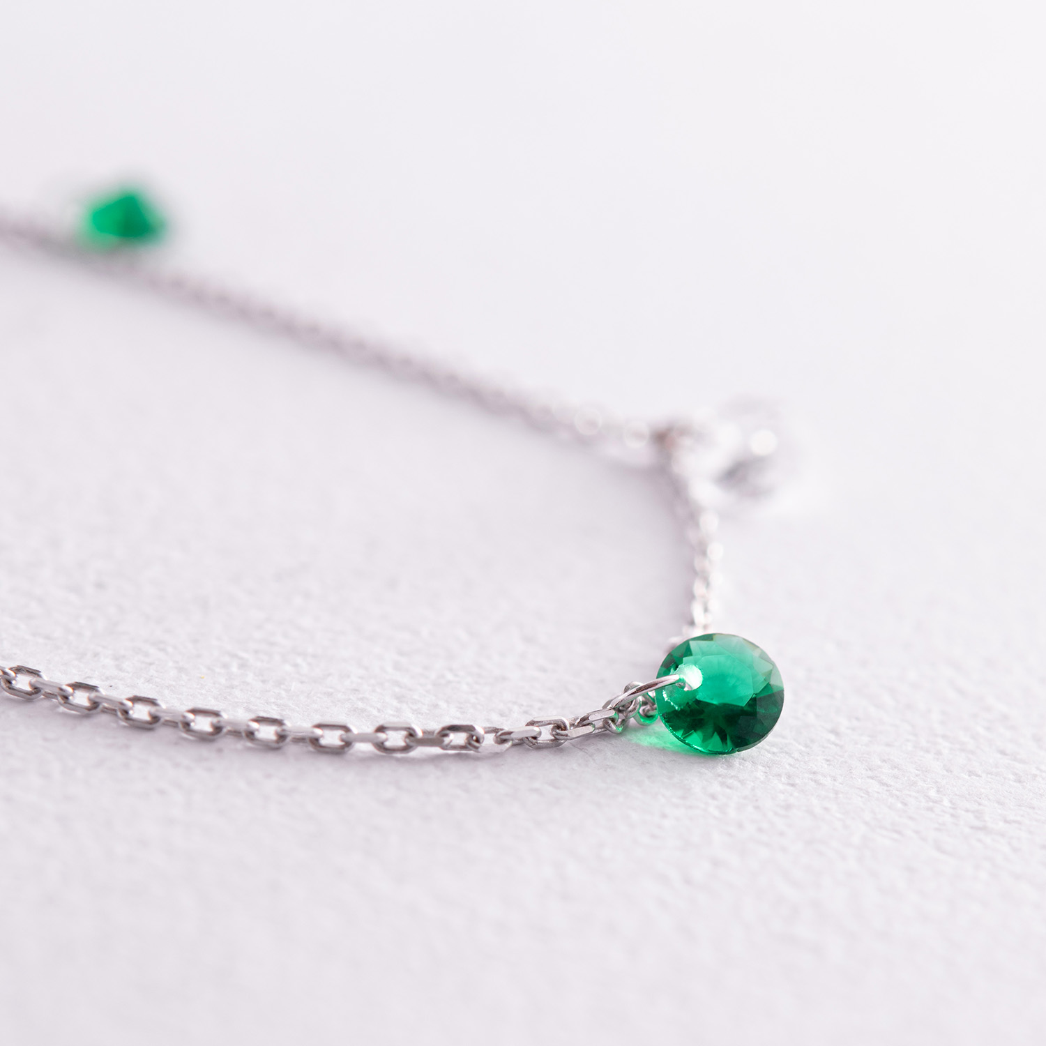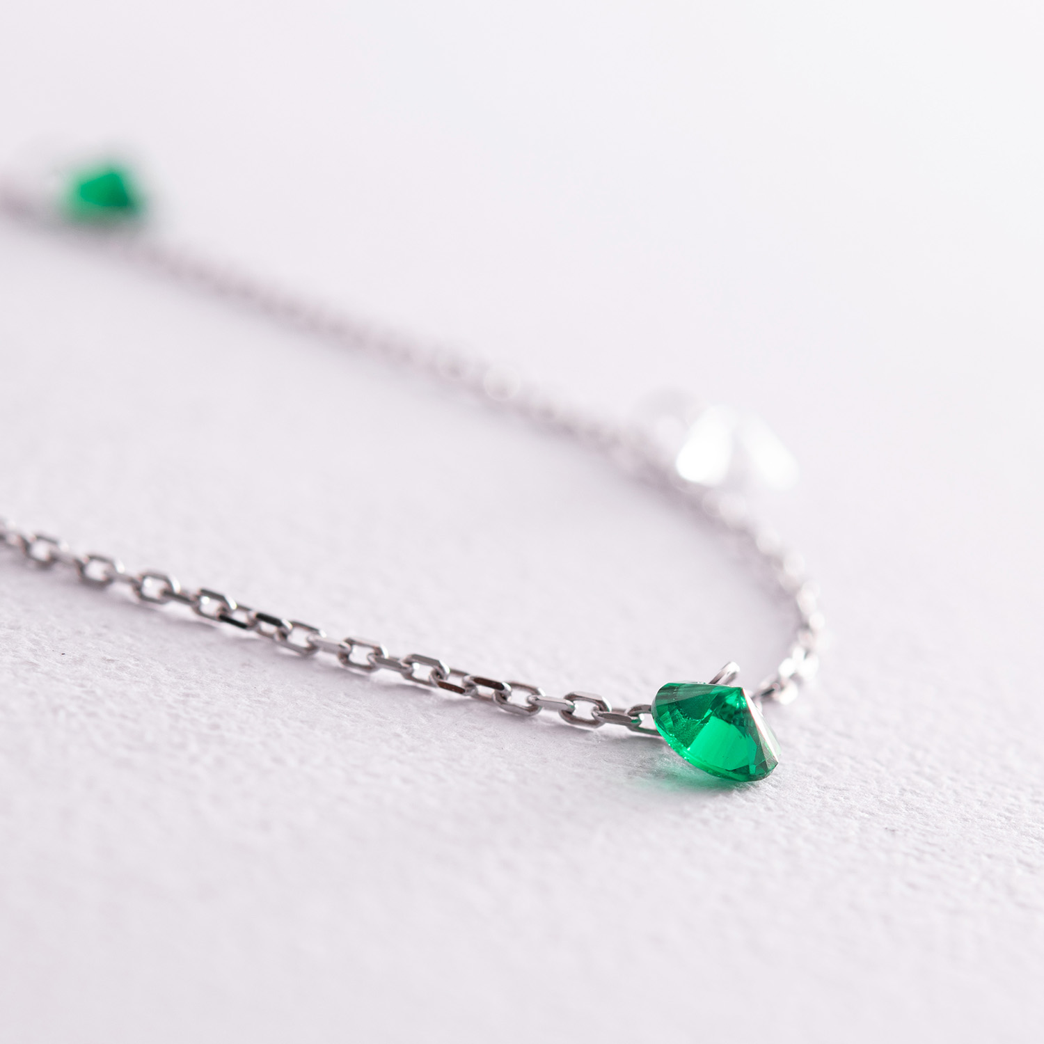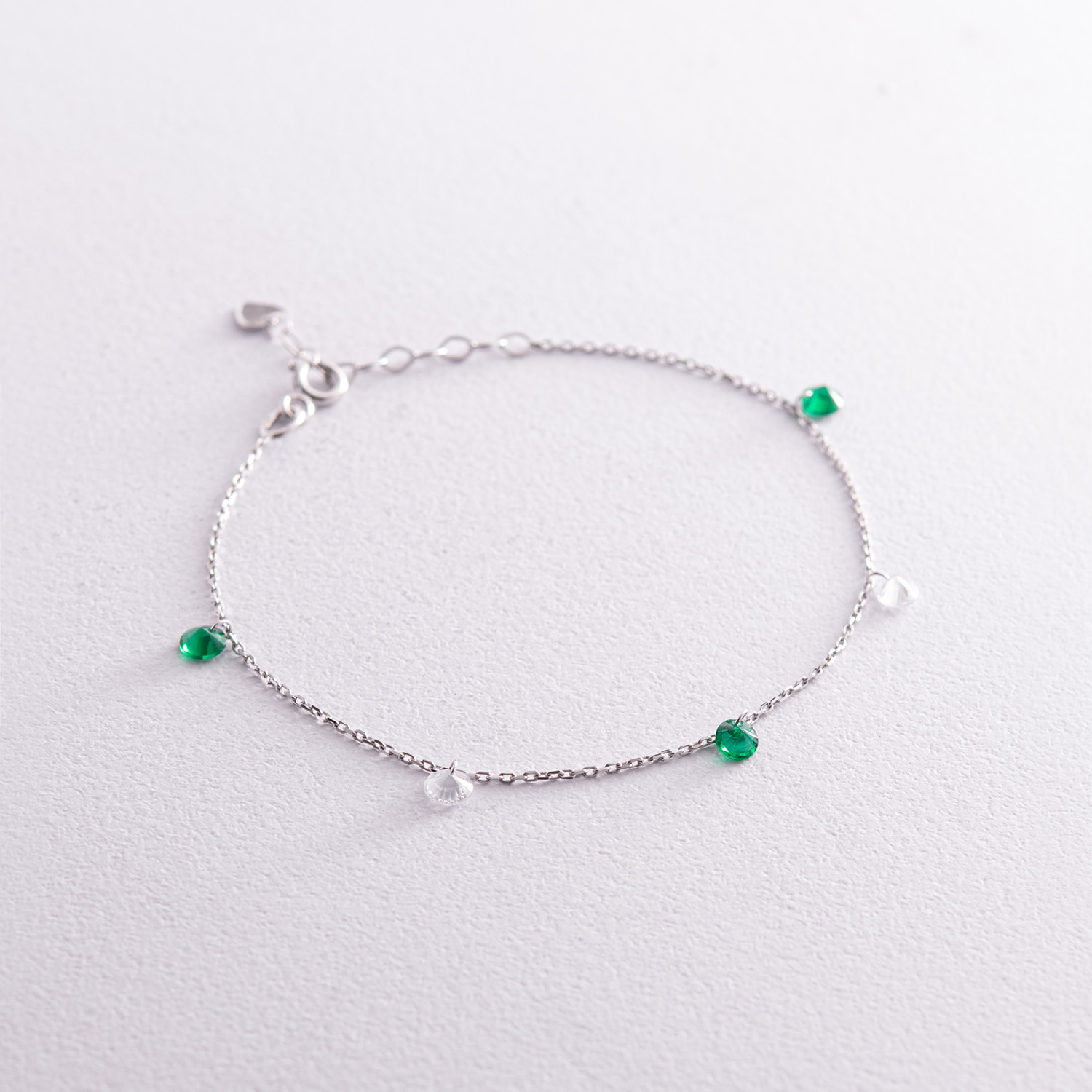 Браслет в белом золоте (зеленые и белые фианиты) б05136