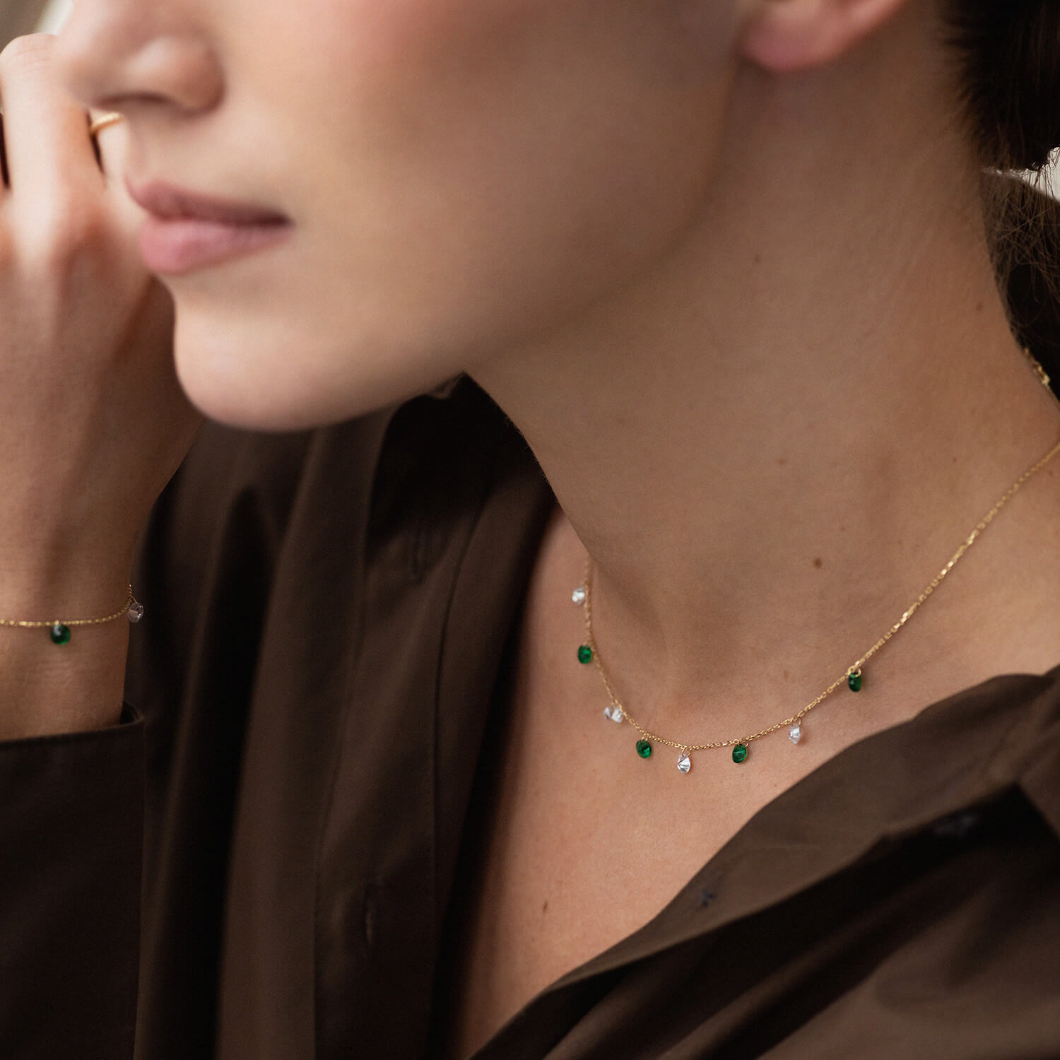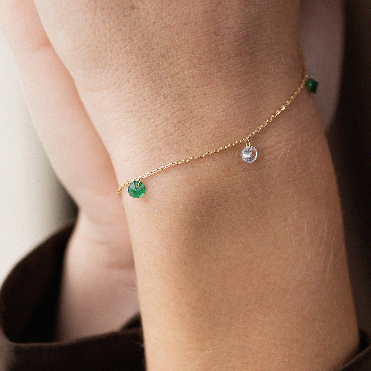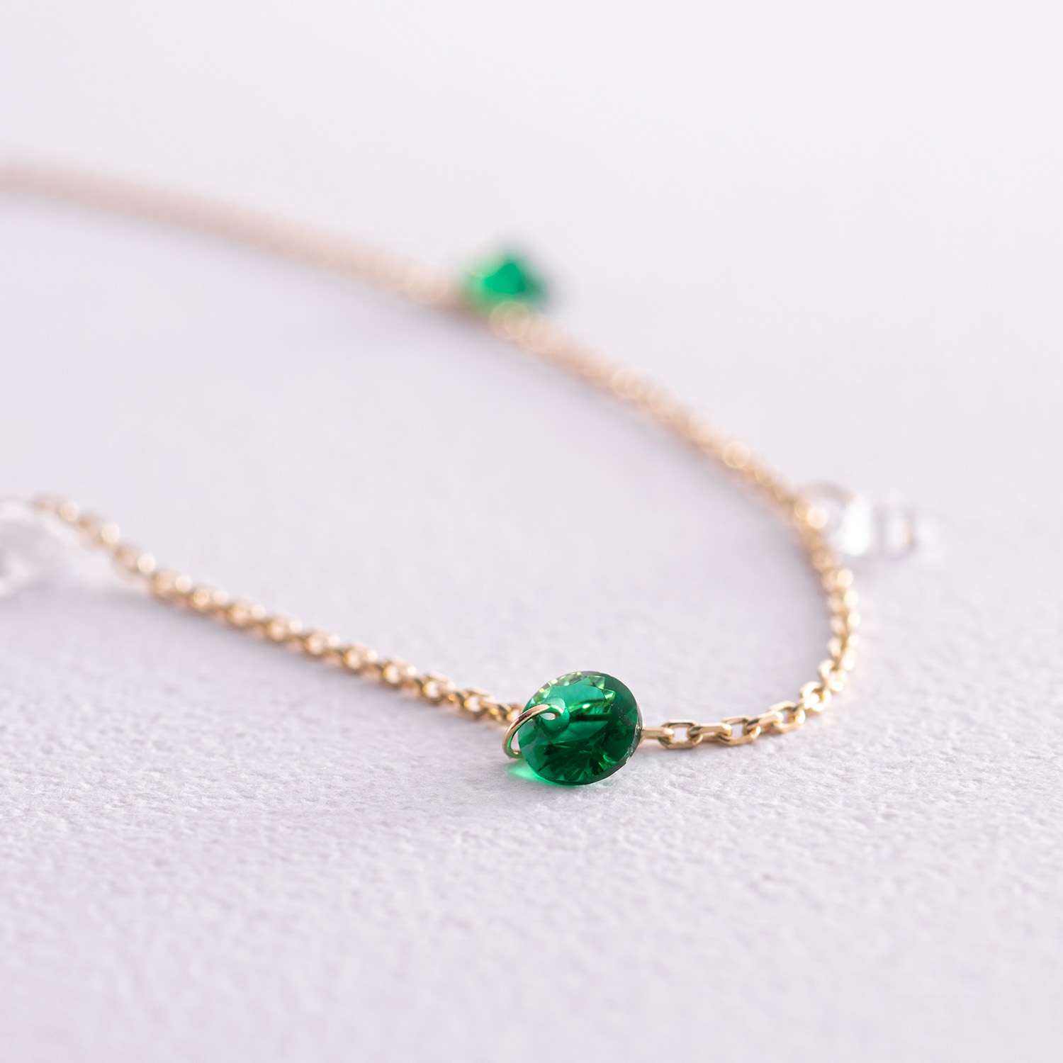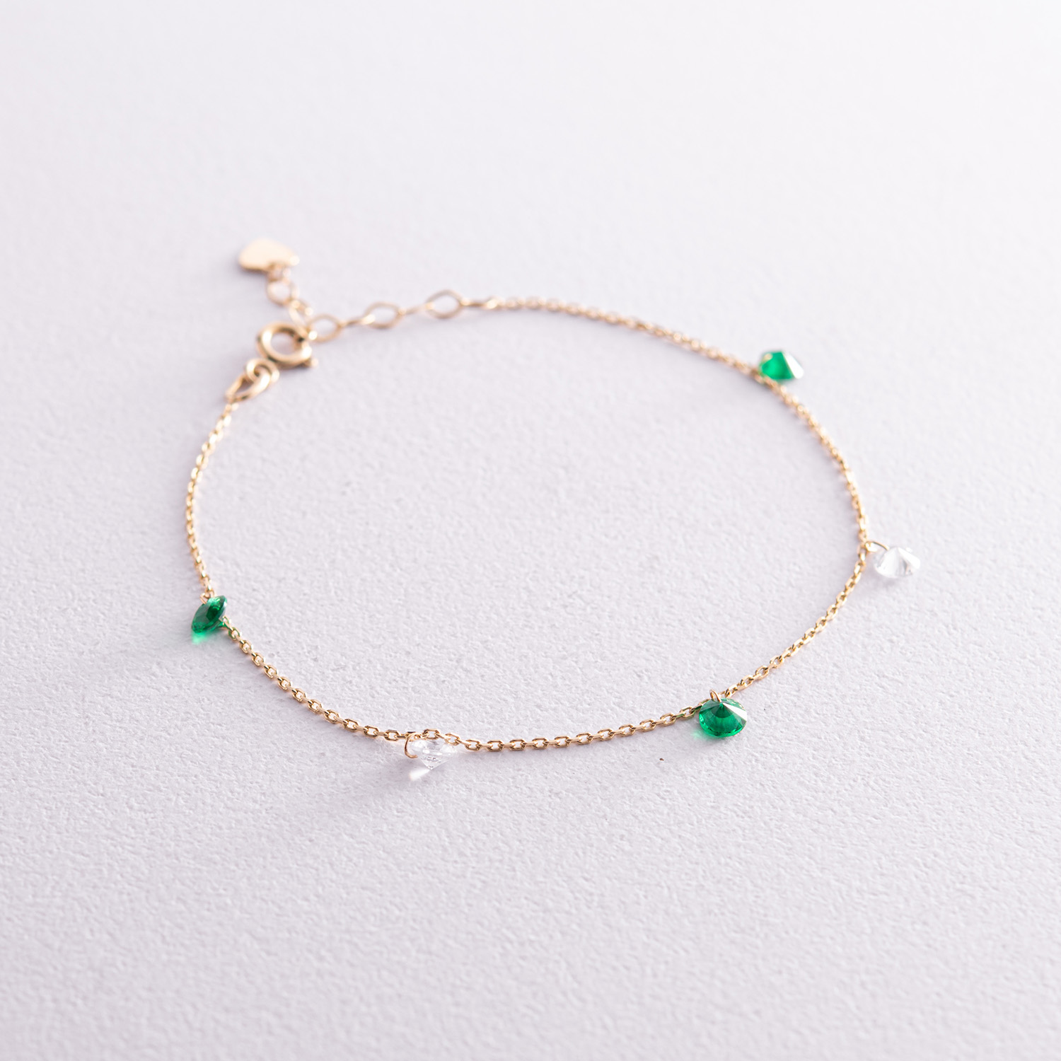 Браслет в желтом золоте (зеленые и белые фианиты) б05138