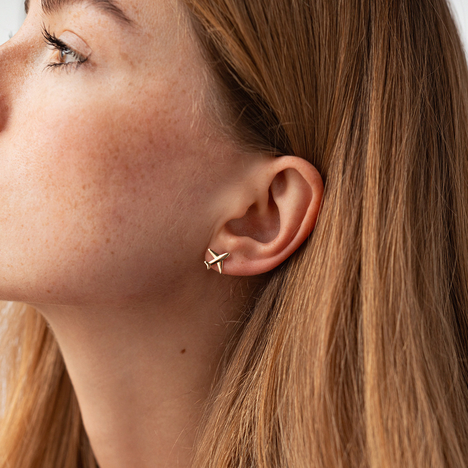 Cерьги - пусеты "Самолет" (желтое золото) с09196