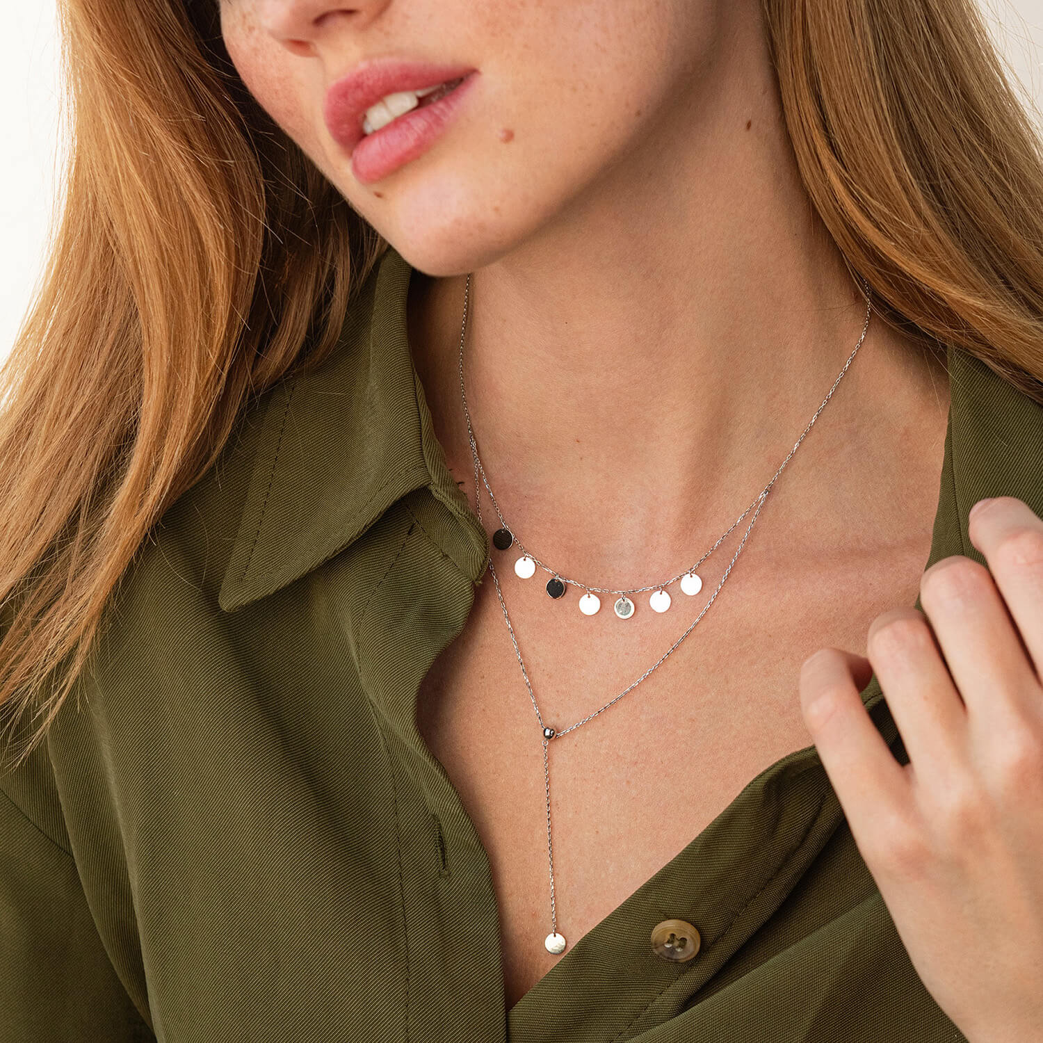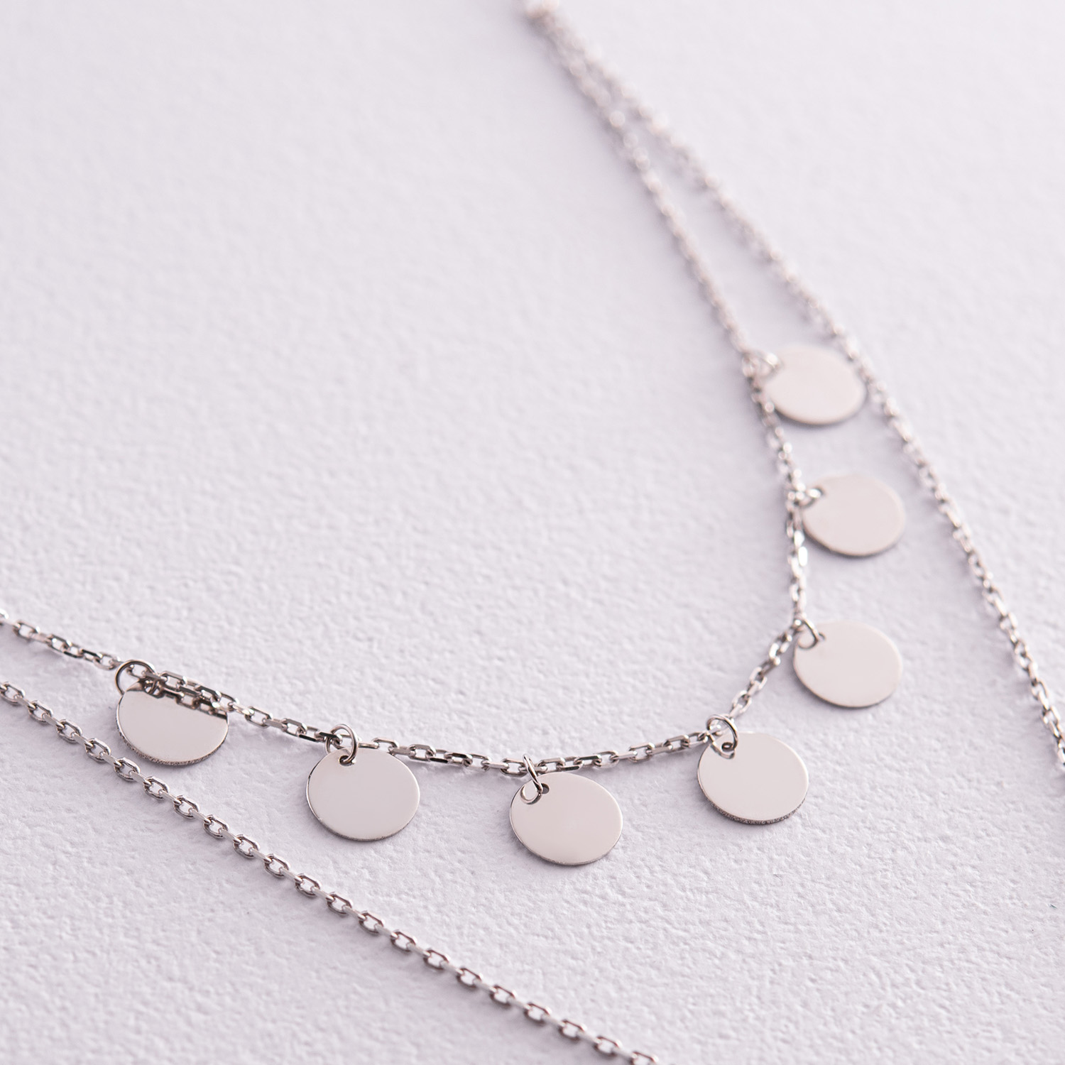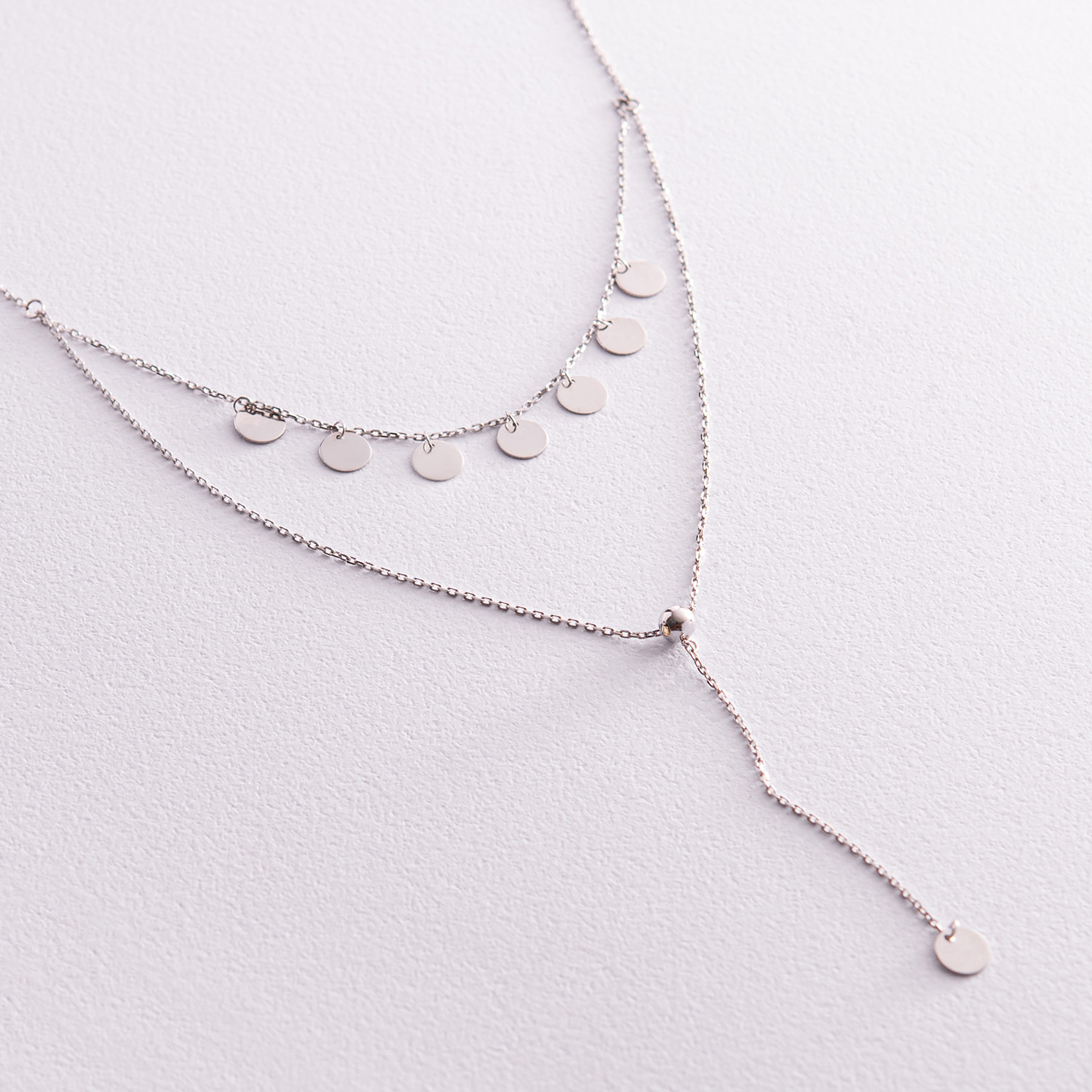Двойное колье - галстук "Монетки" в белом золоте кол02283