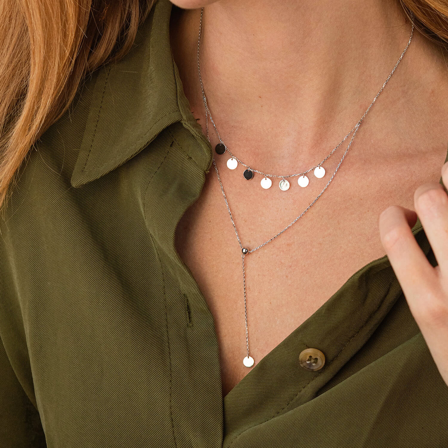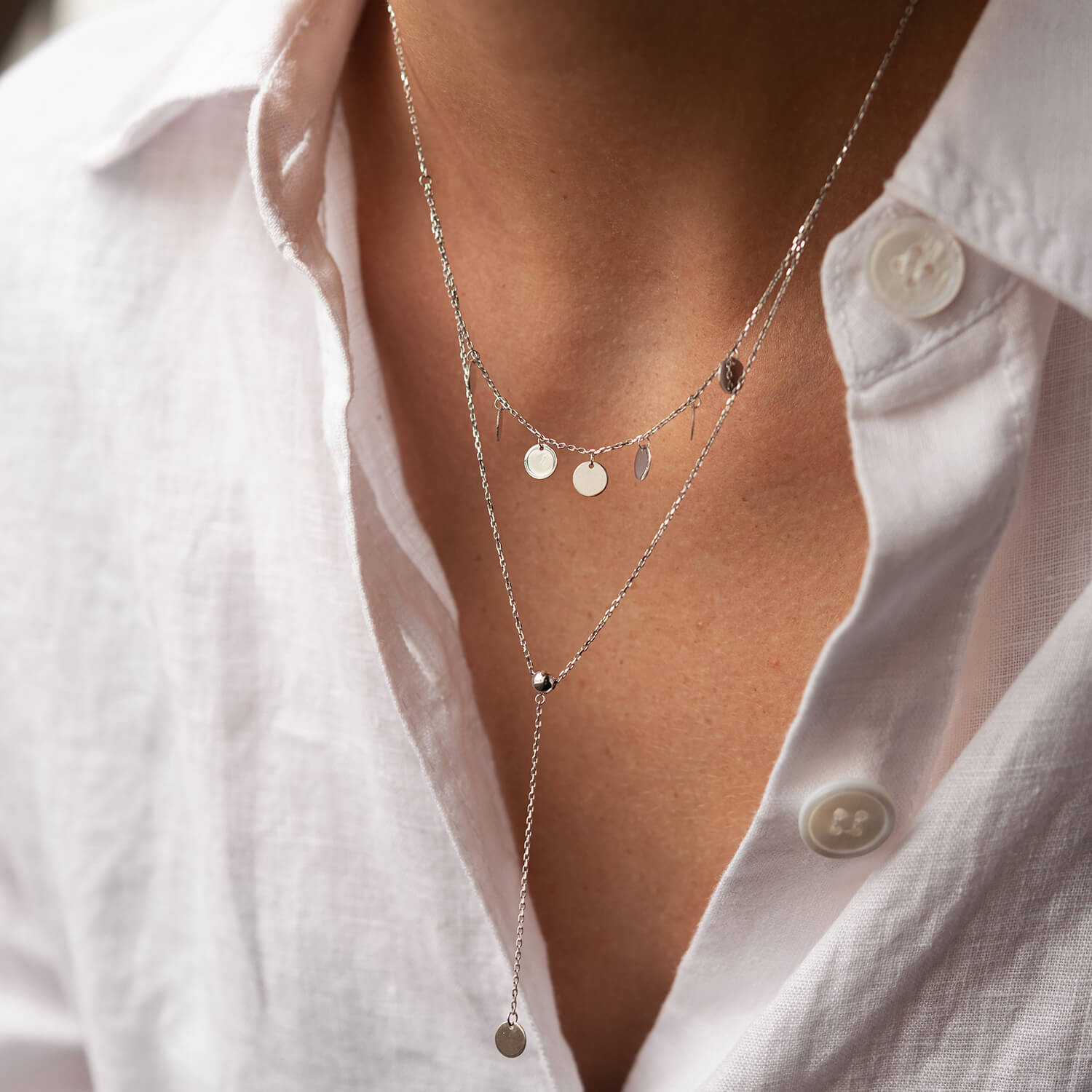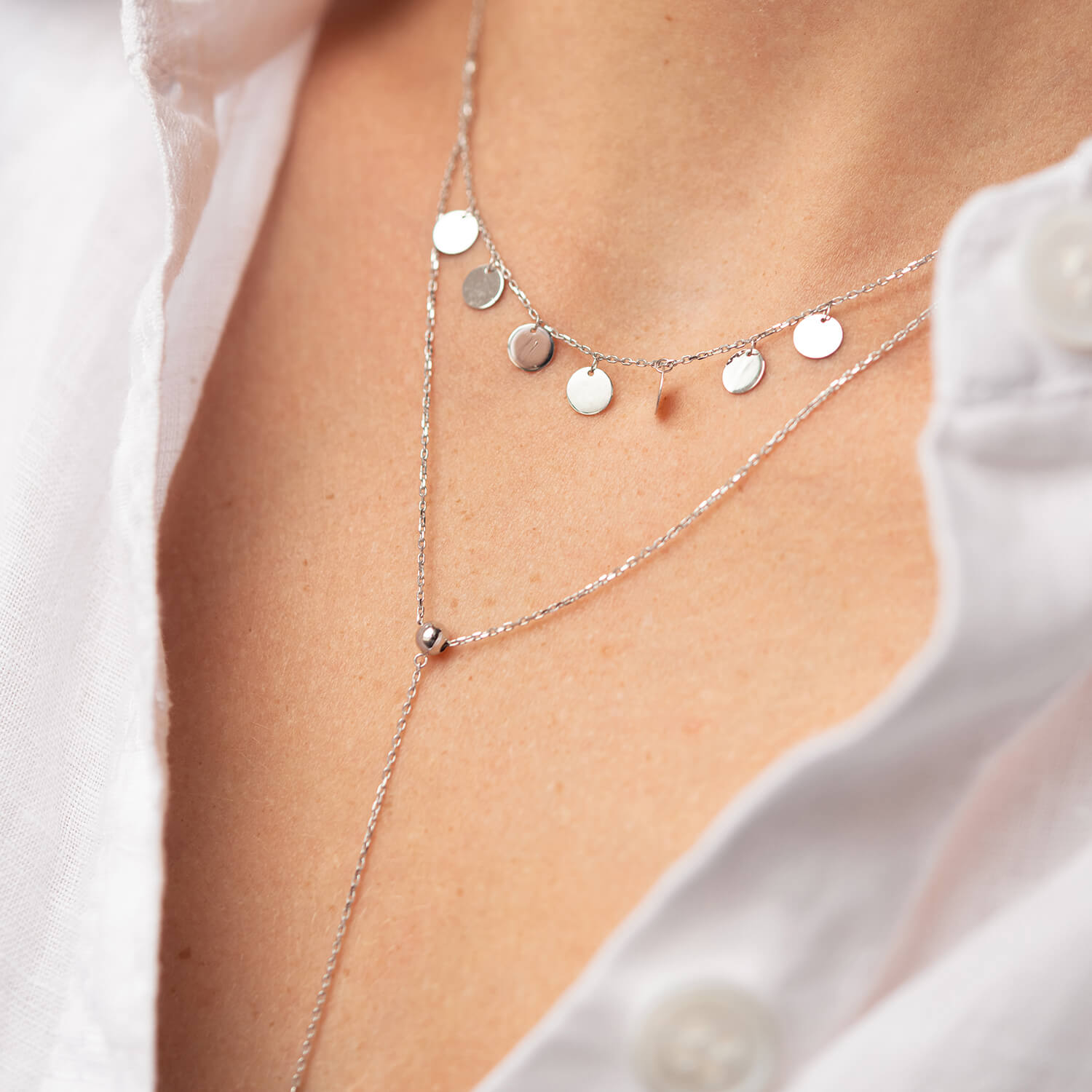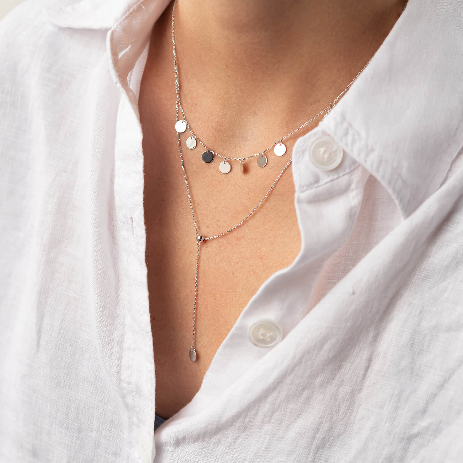 Двойное колье - галстук "Монетки" в белом золоте кол02283