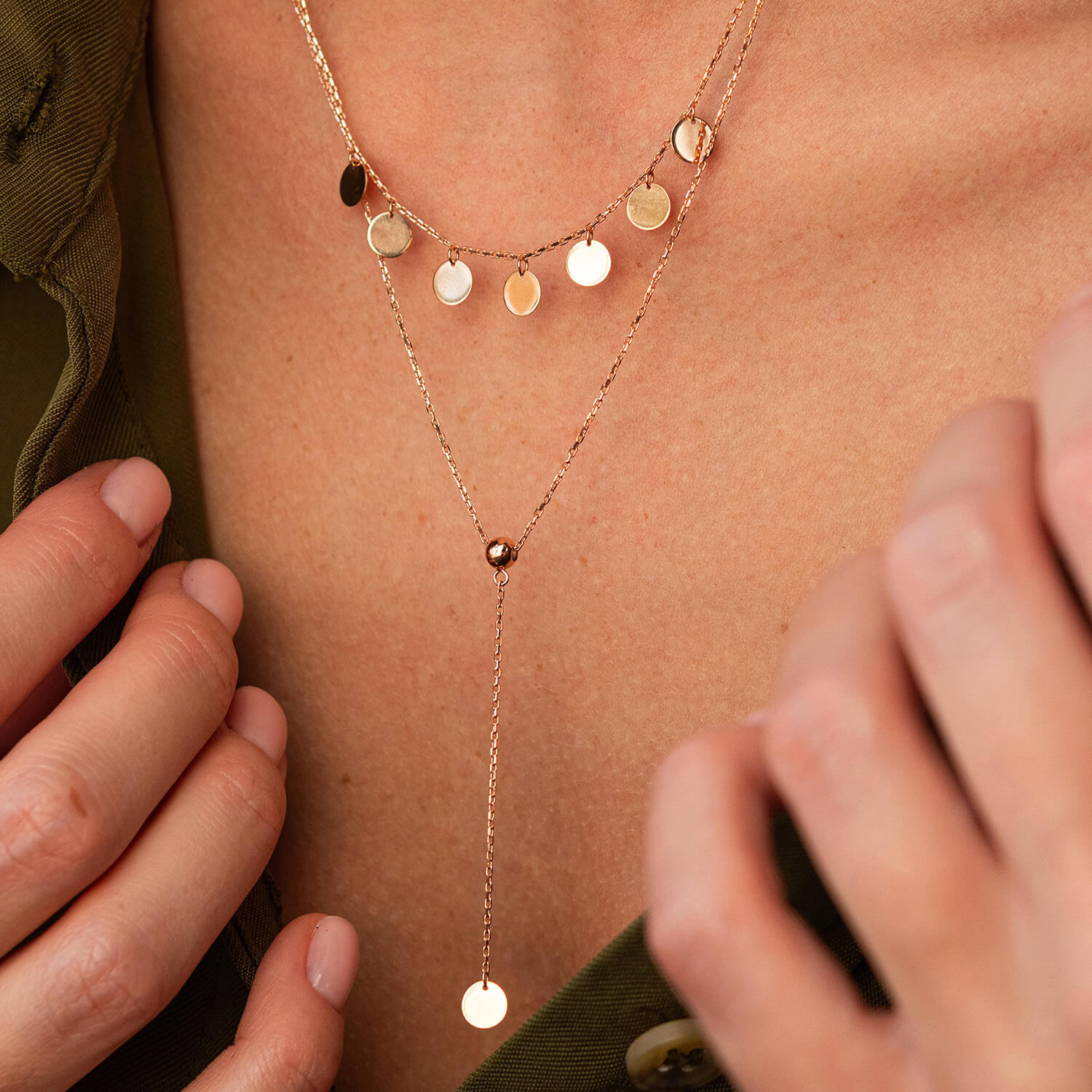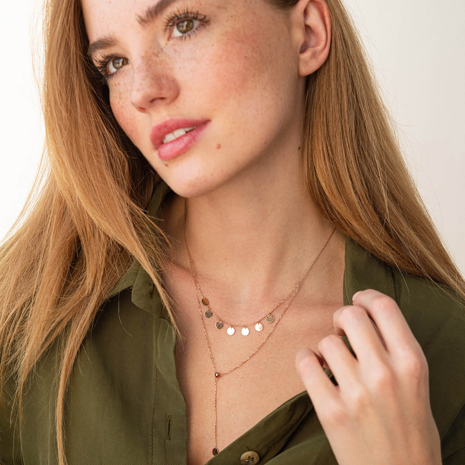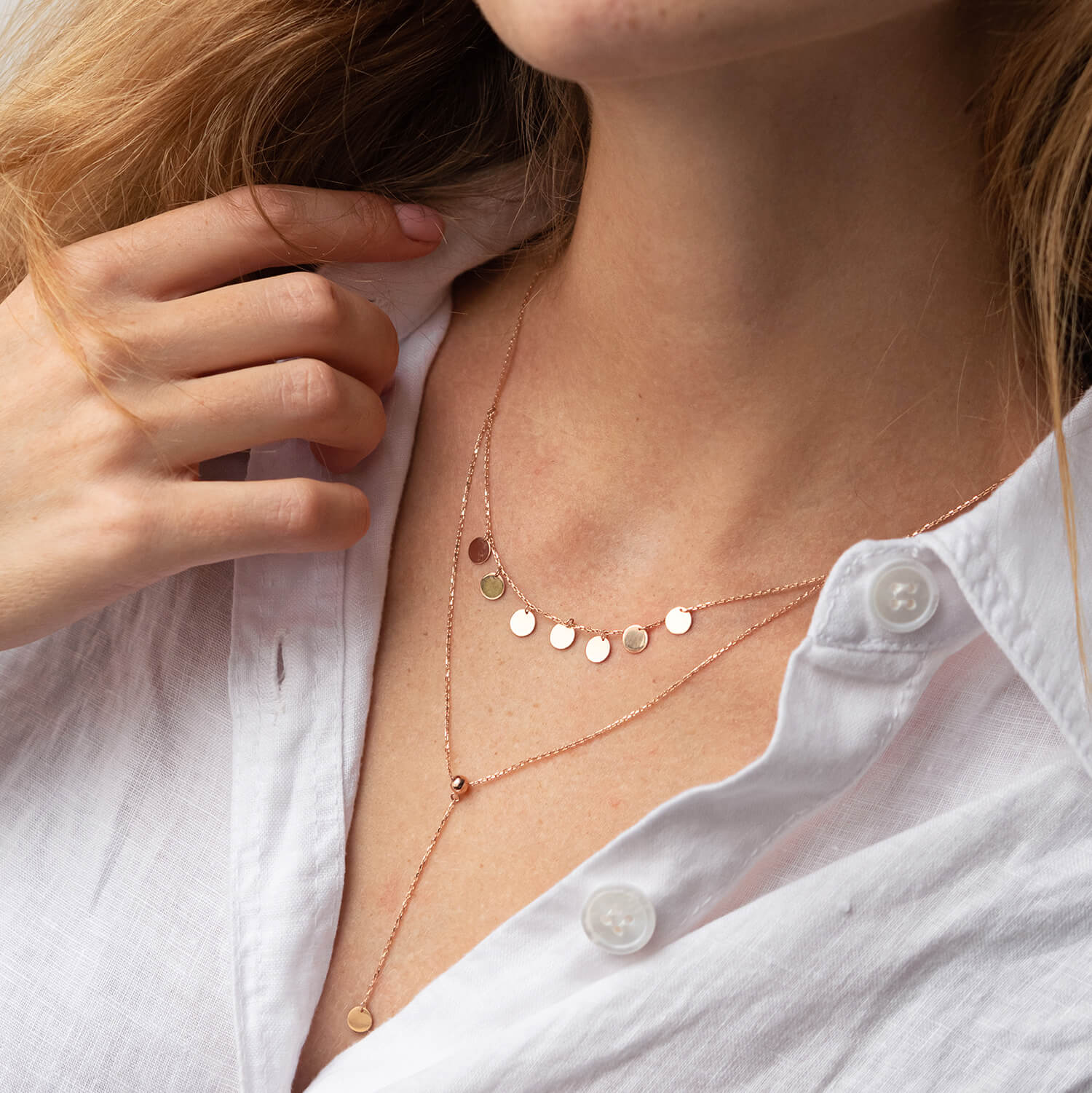 Двойное колье - галстук "Монетки" в красном золоте кол02284