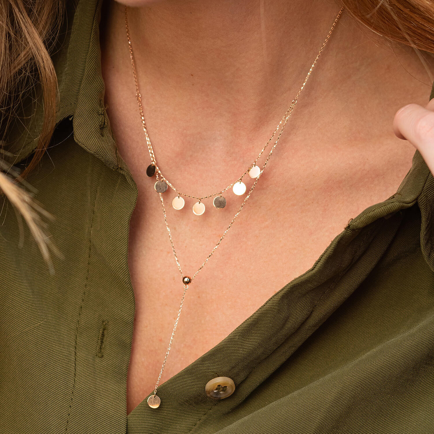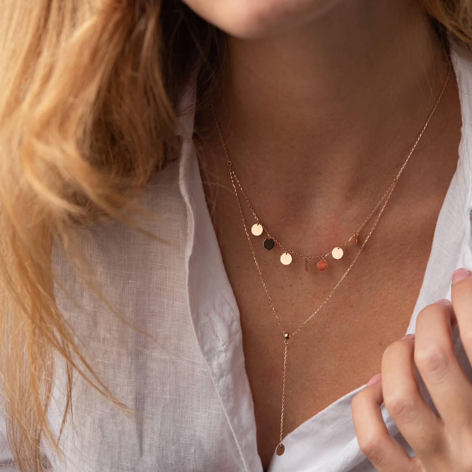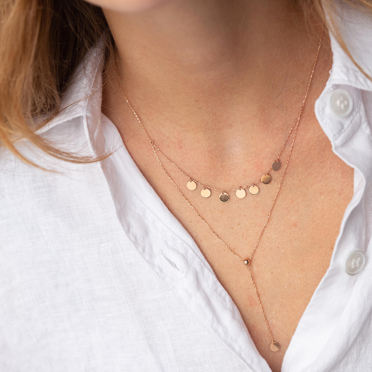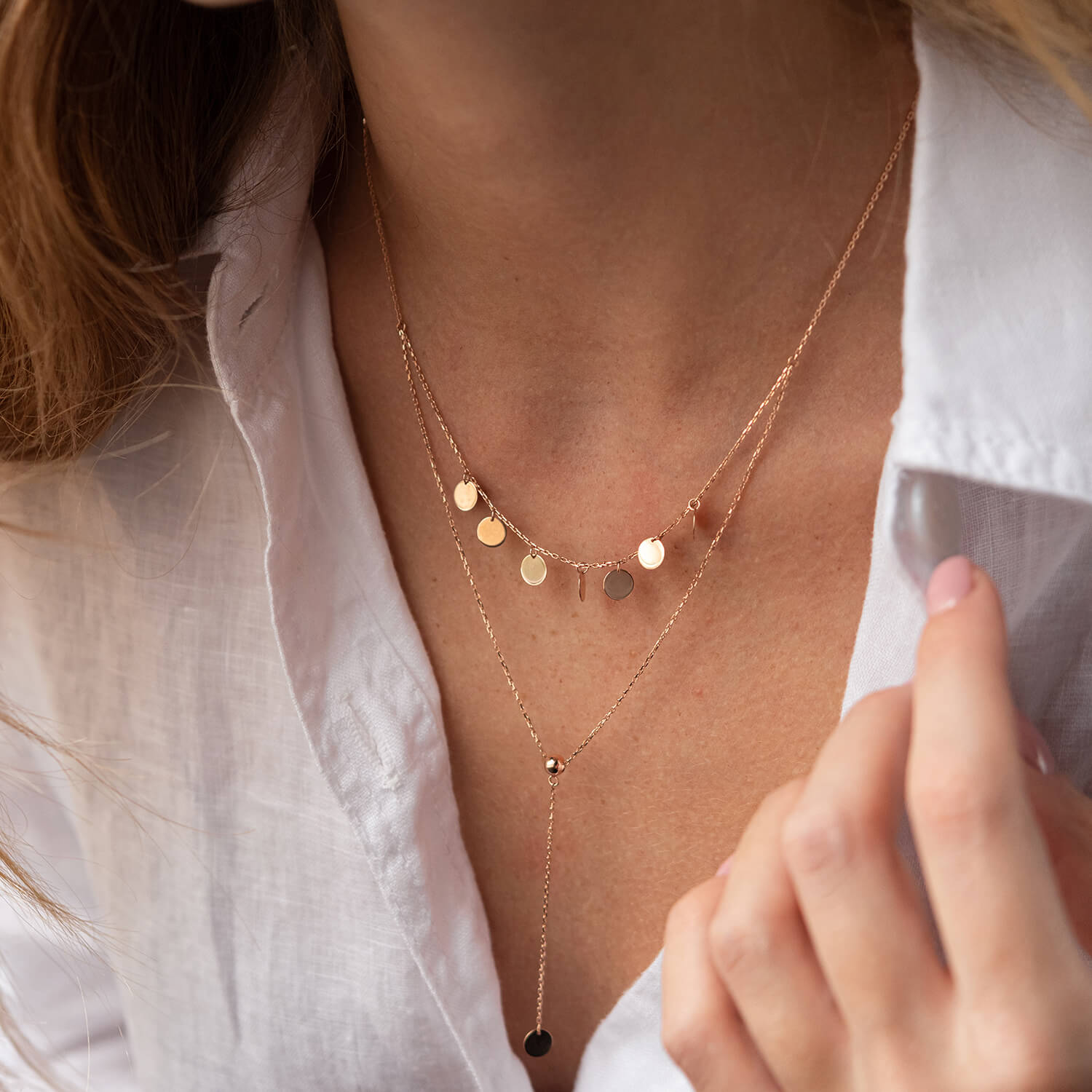 Двойное колье - галстук "Монетки" в красном золоте кол02284