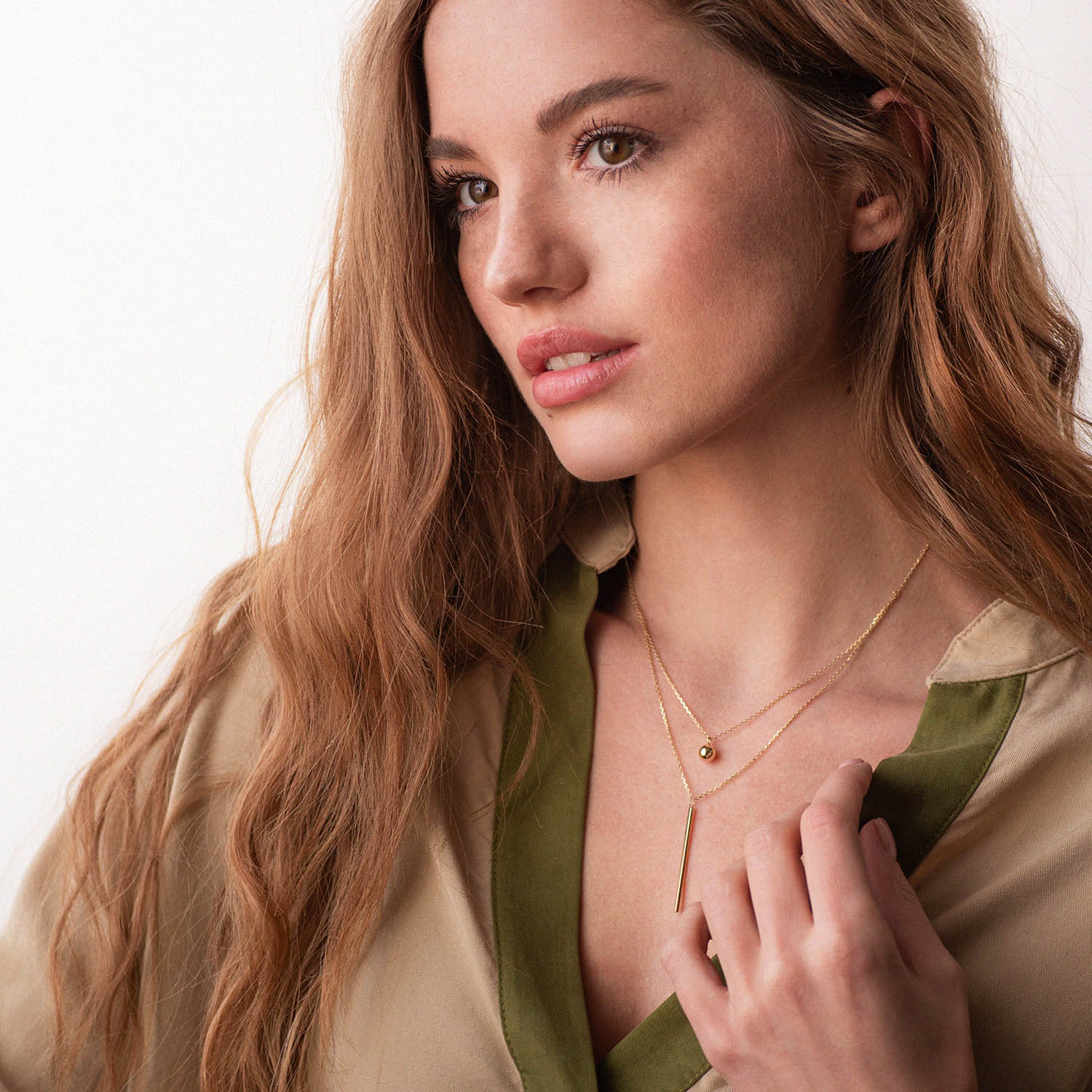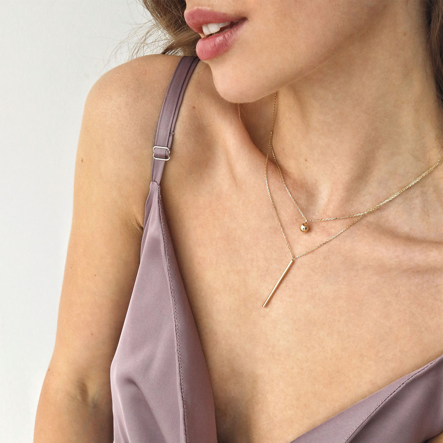 Двойное колье "Хлоя" с шариком в желтом золоте кол01891