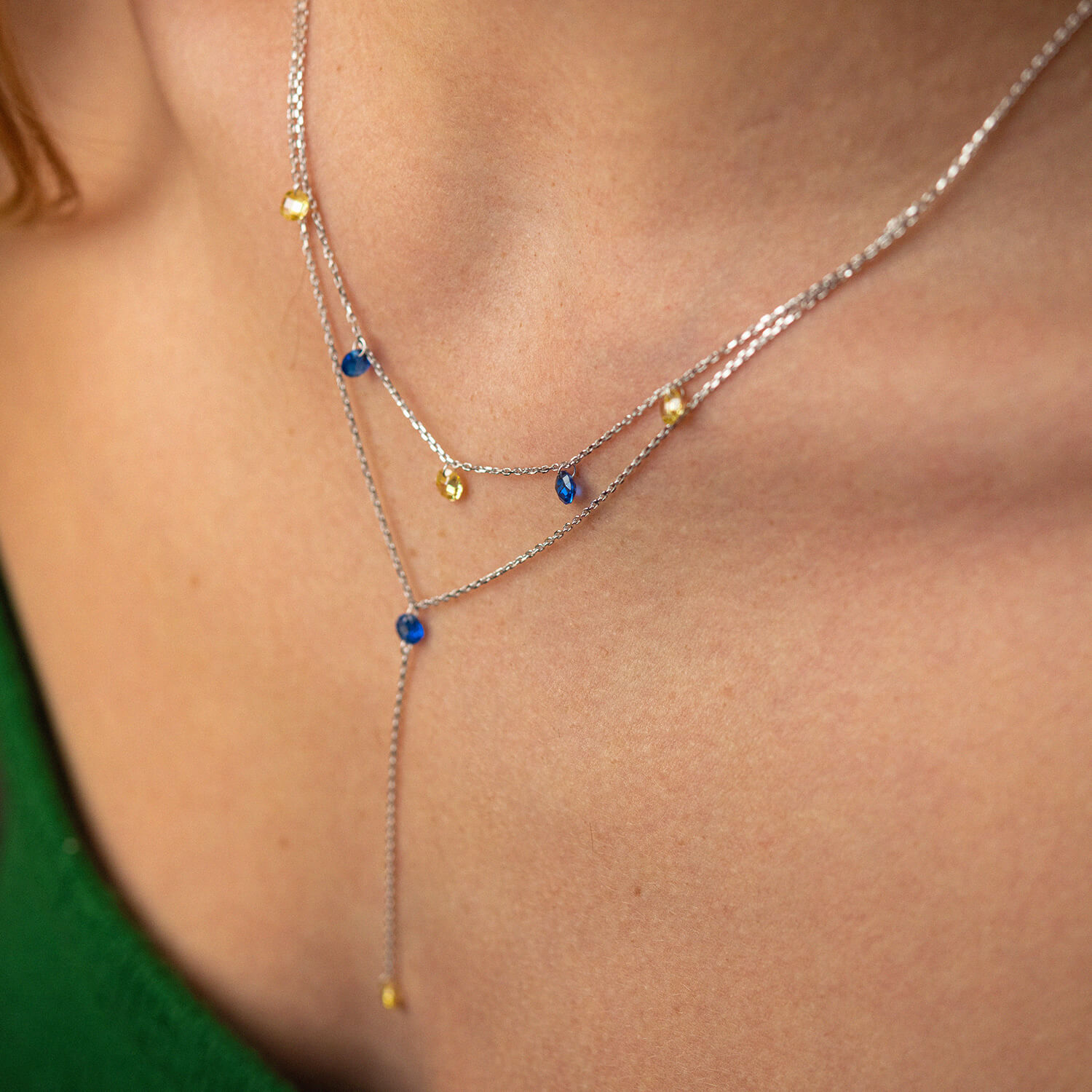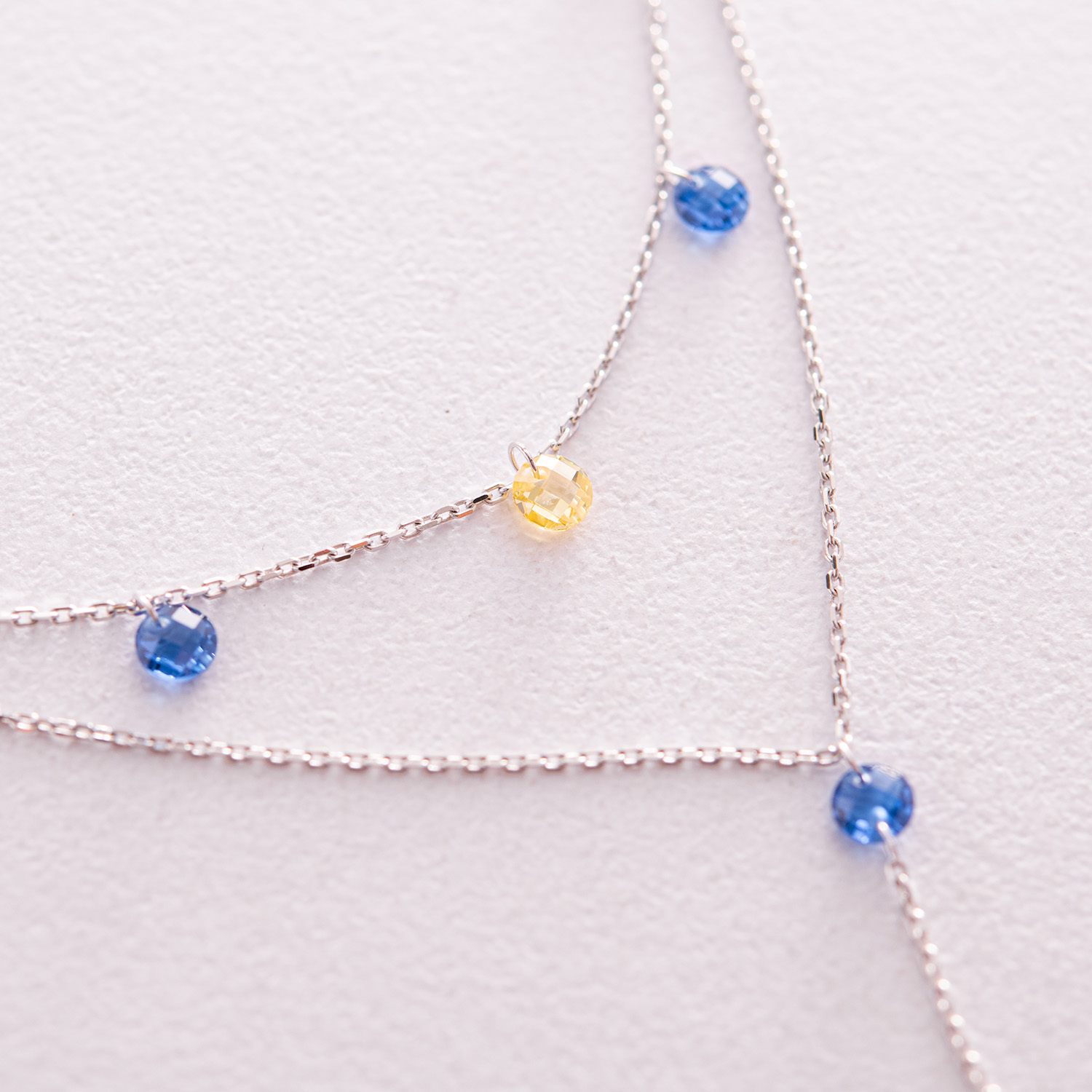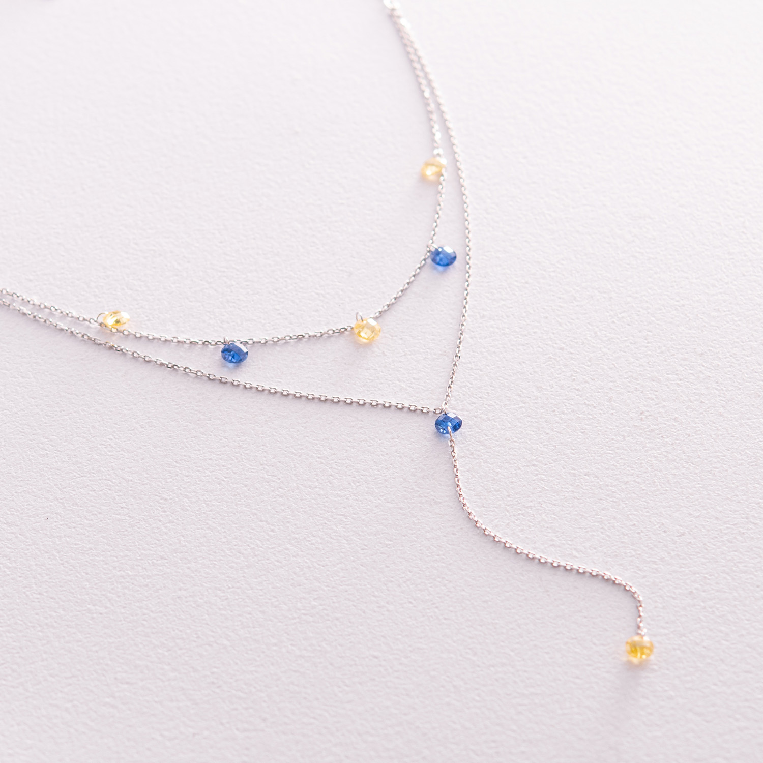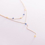 Двойное золотое колье - галстук "Украинка" (синие и желтые фианиты) кол02332