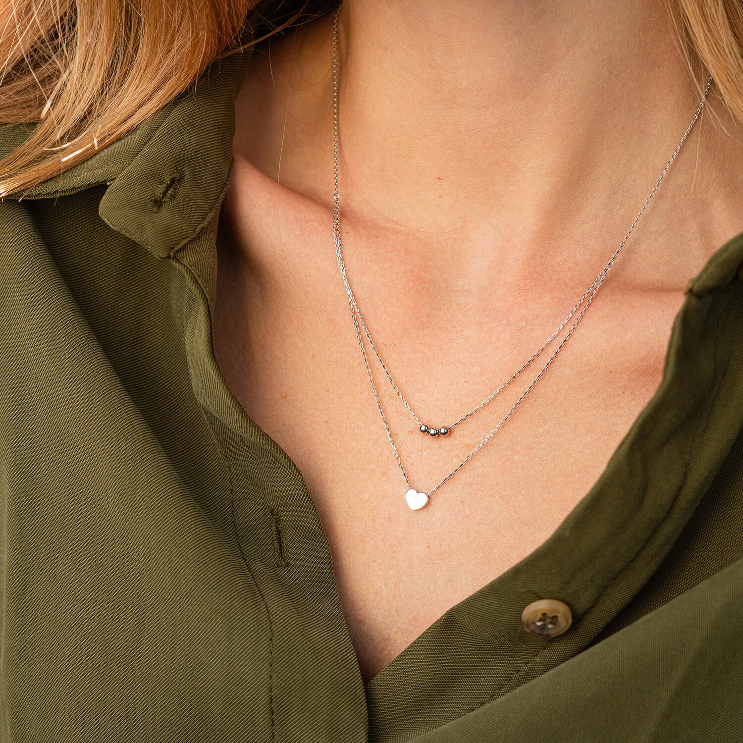 Двойное золотое колье "Шарики и сердечко" кол02313