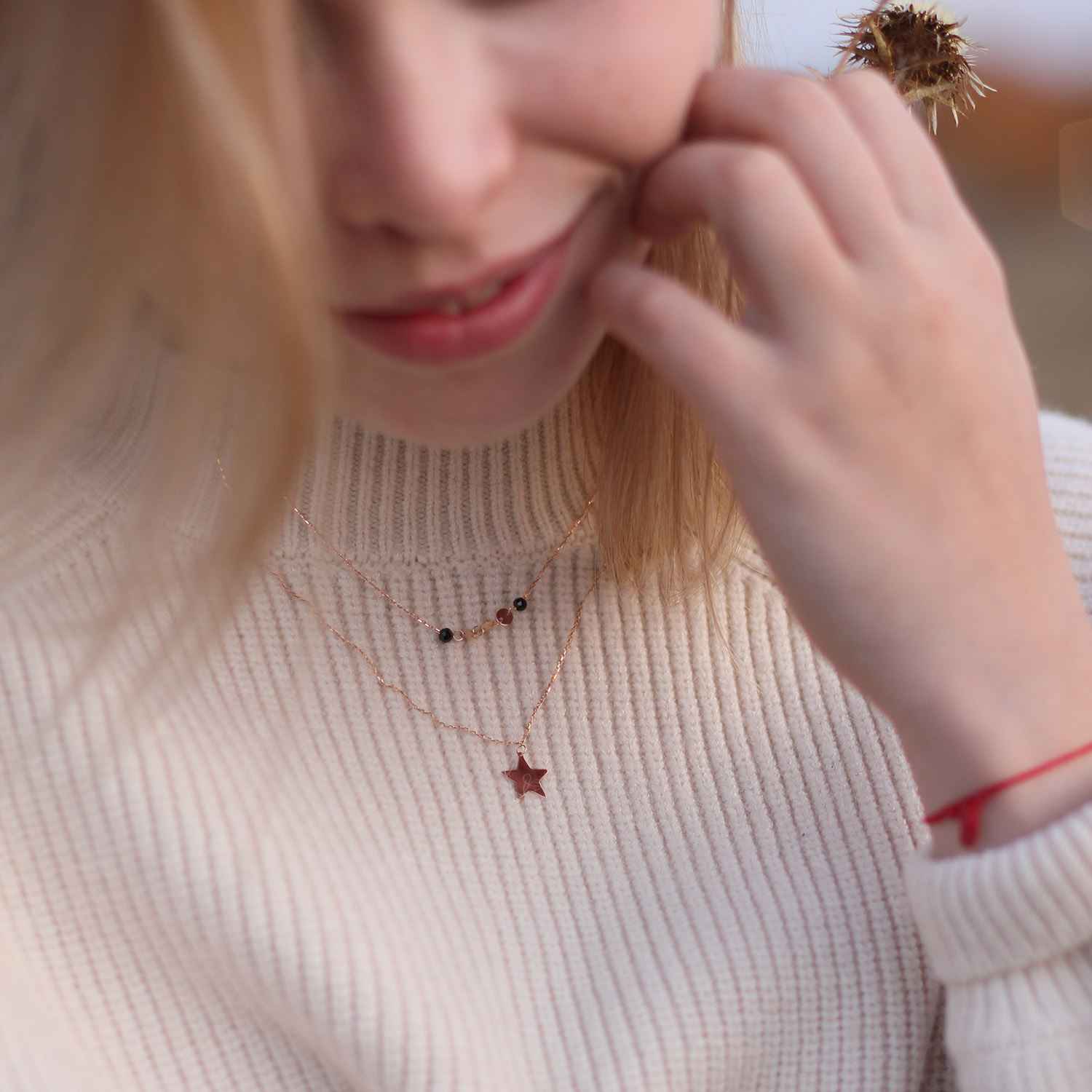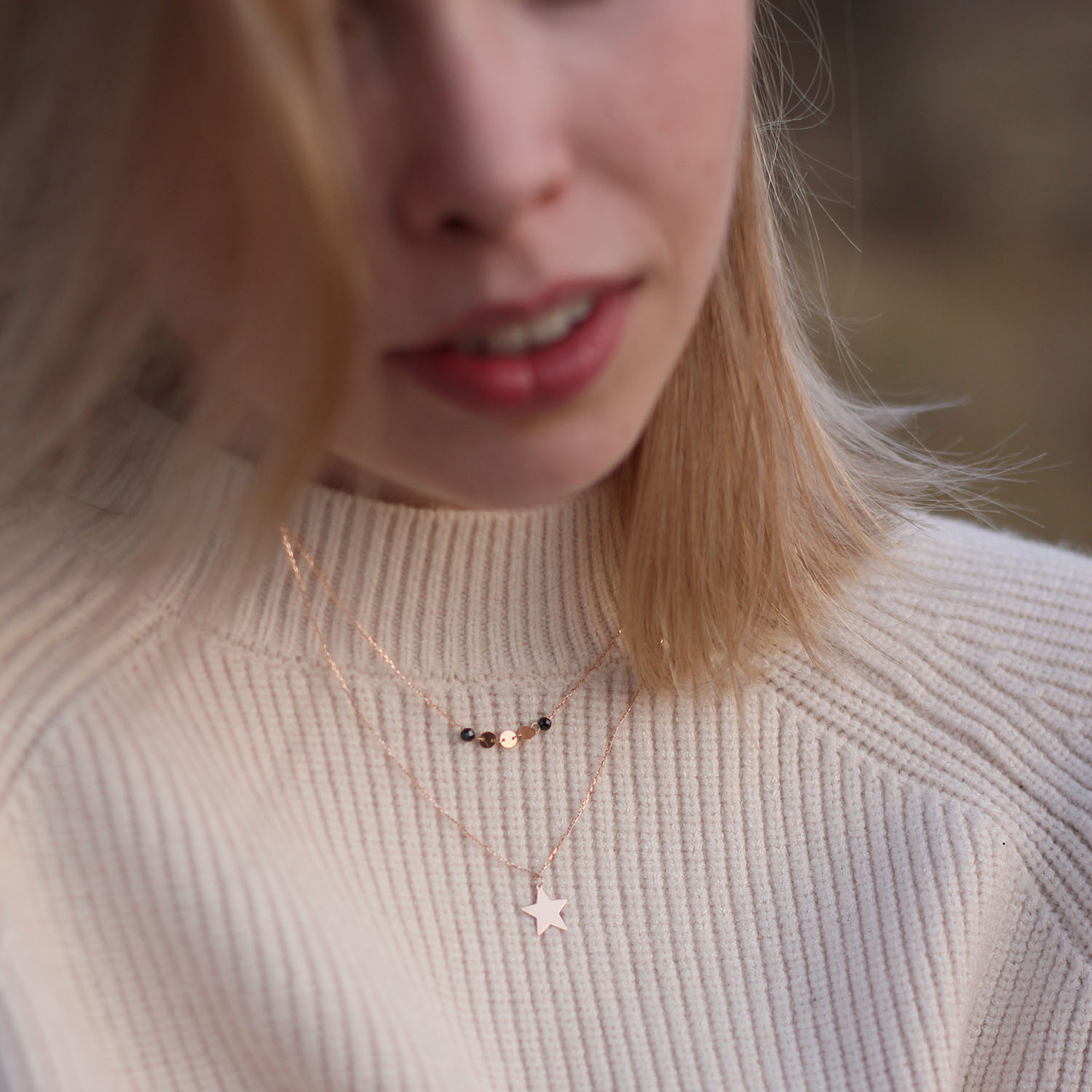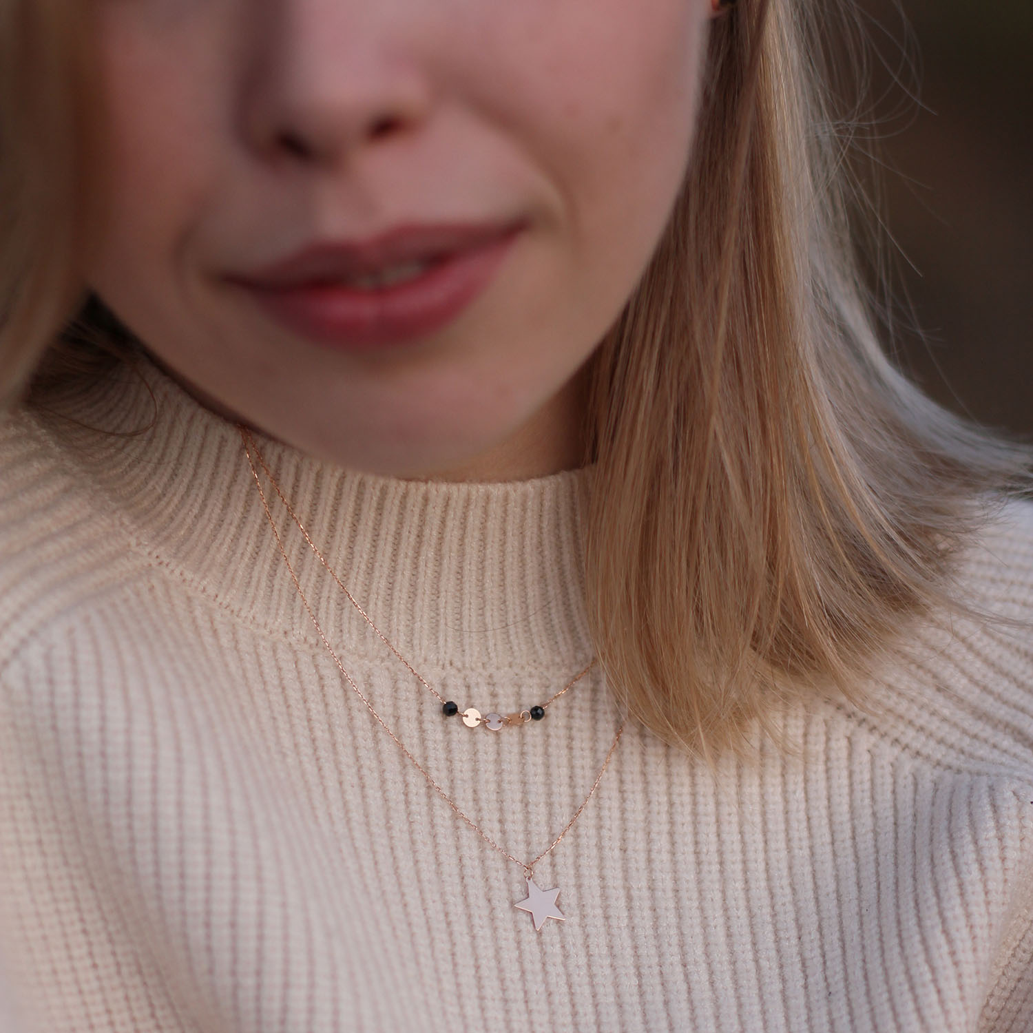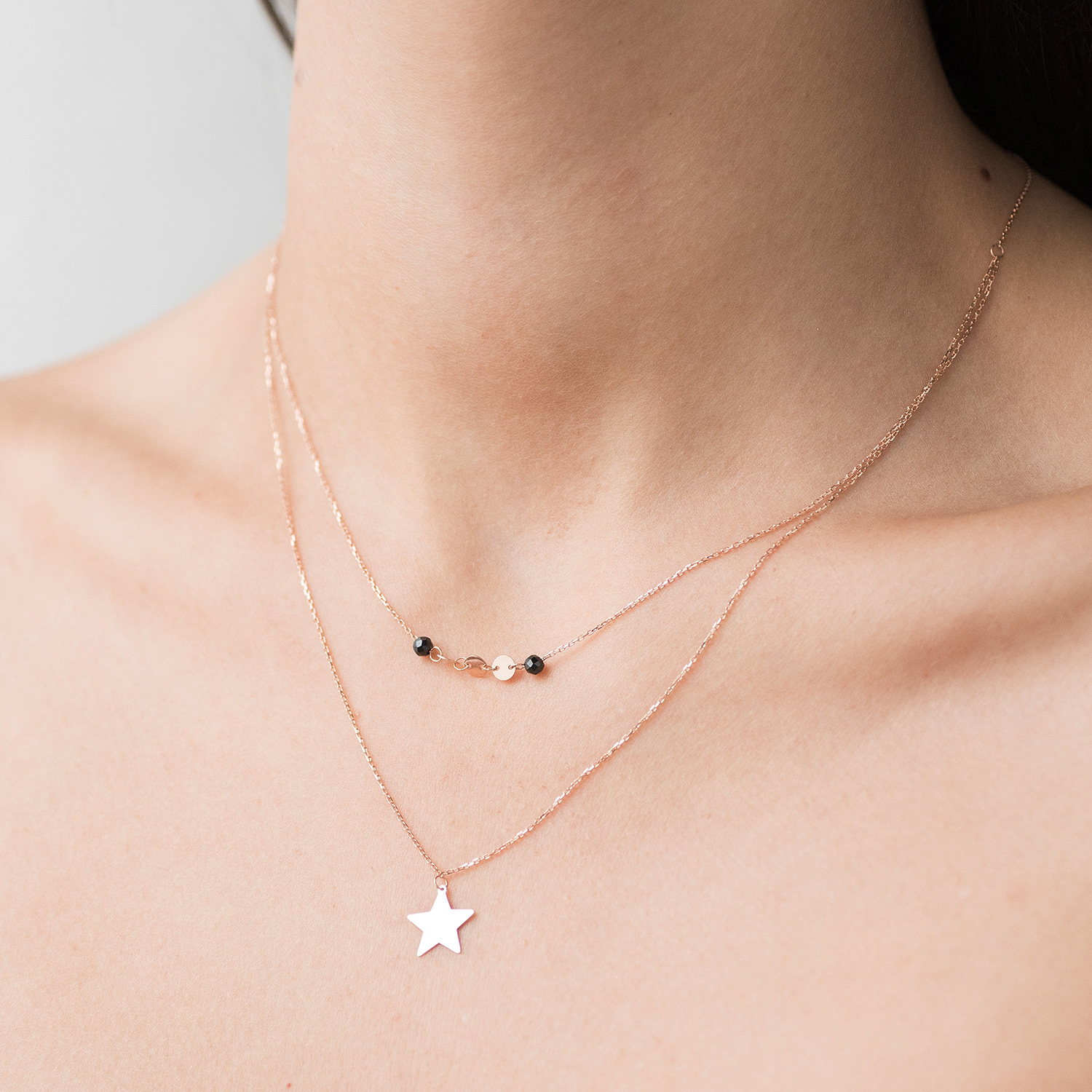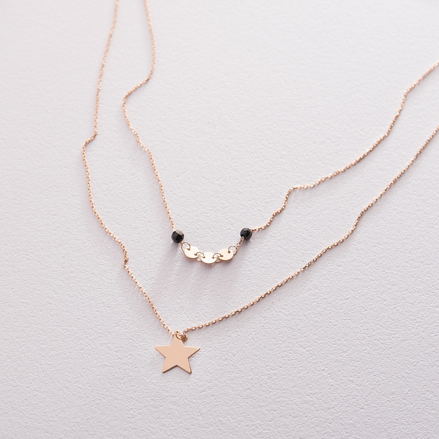 Двойное золотое колье "Звездочка" с черными фианитами кол01525
